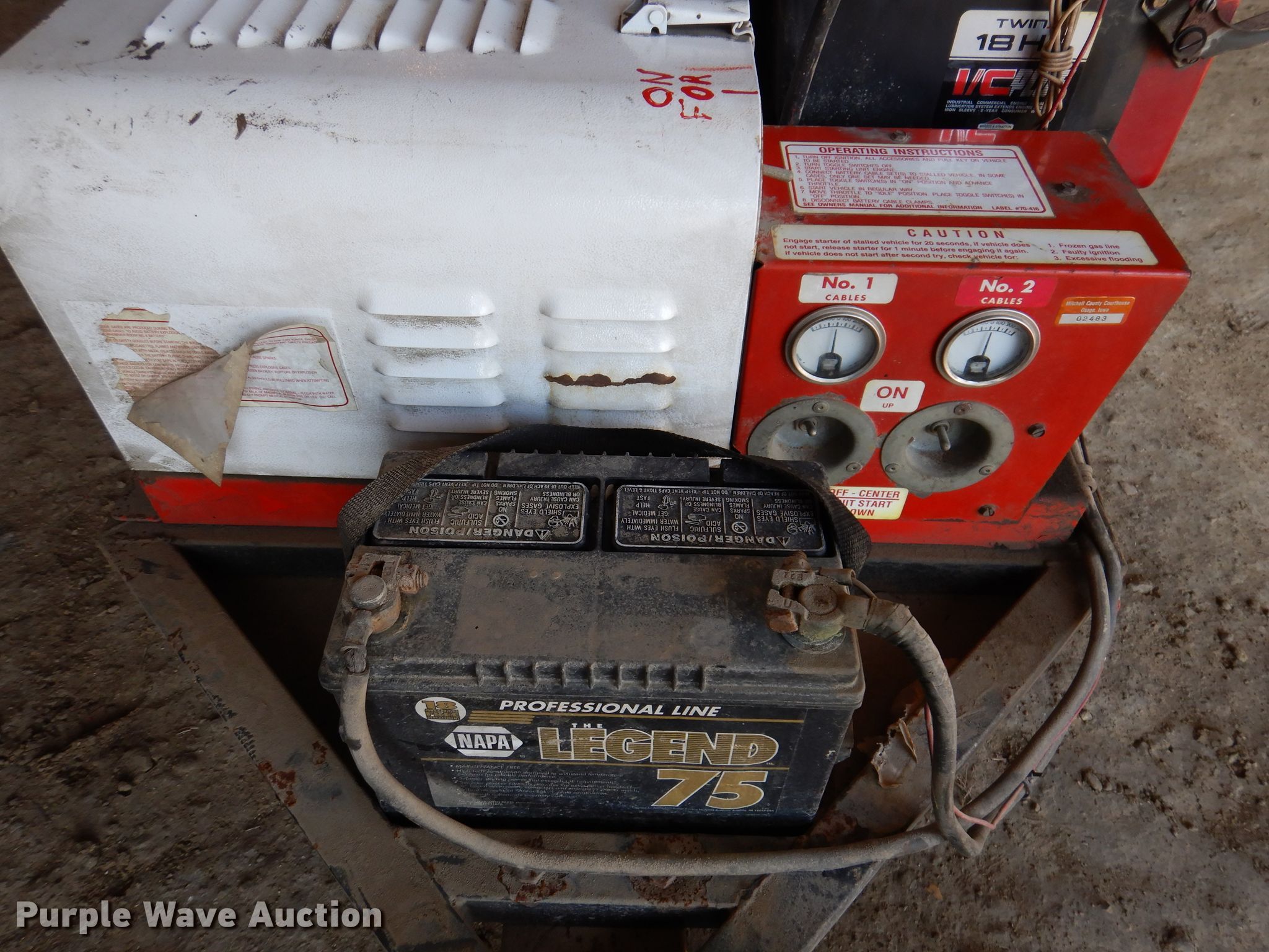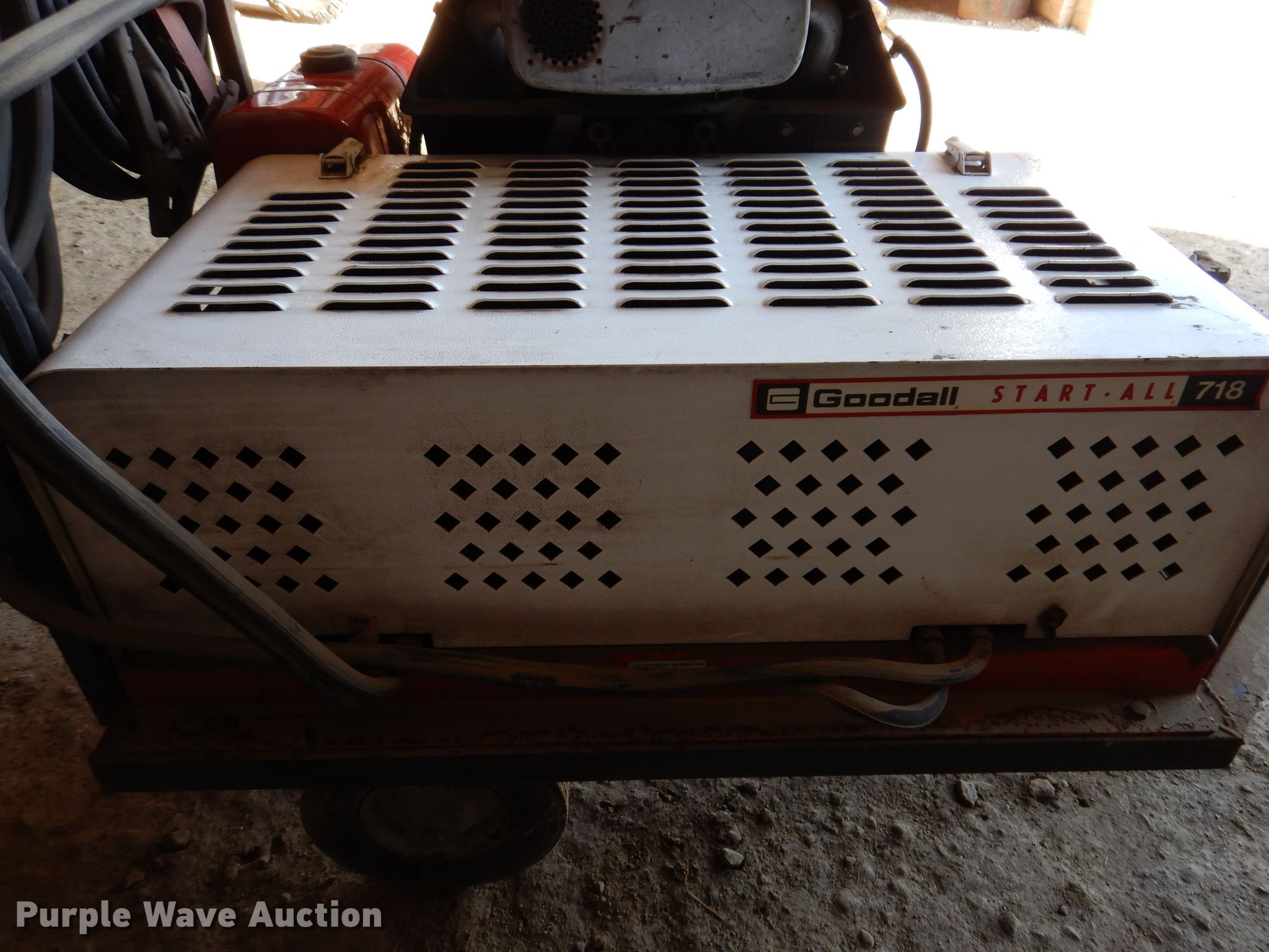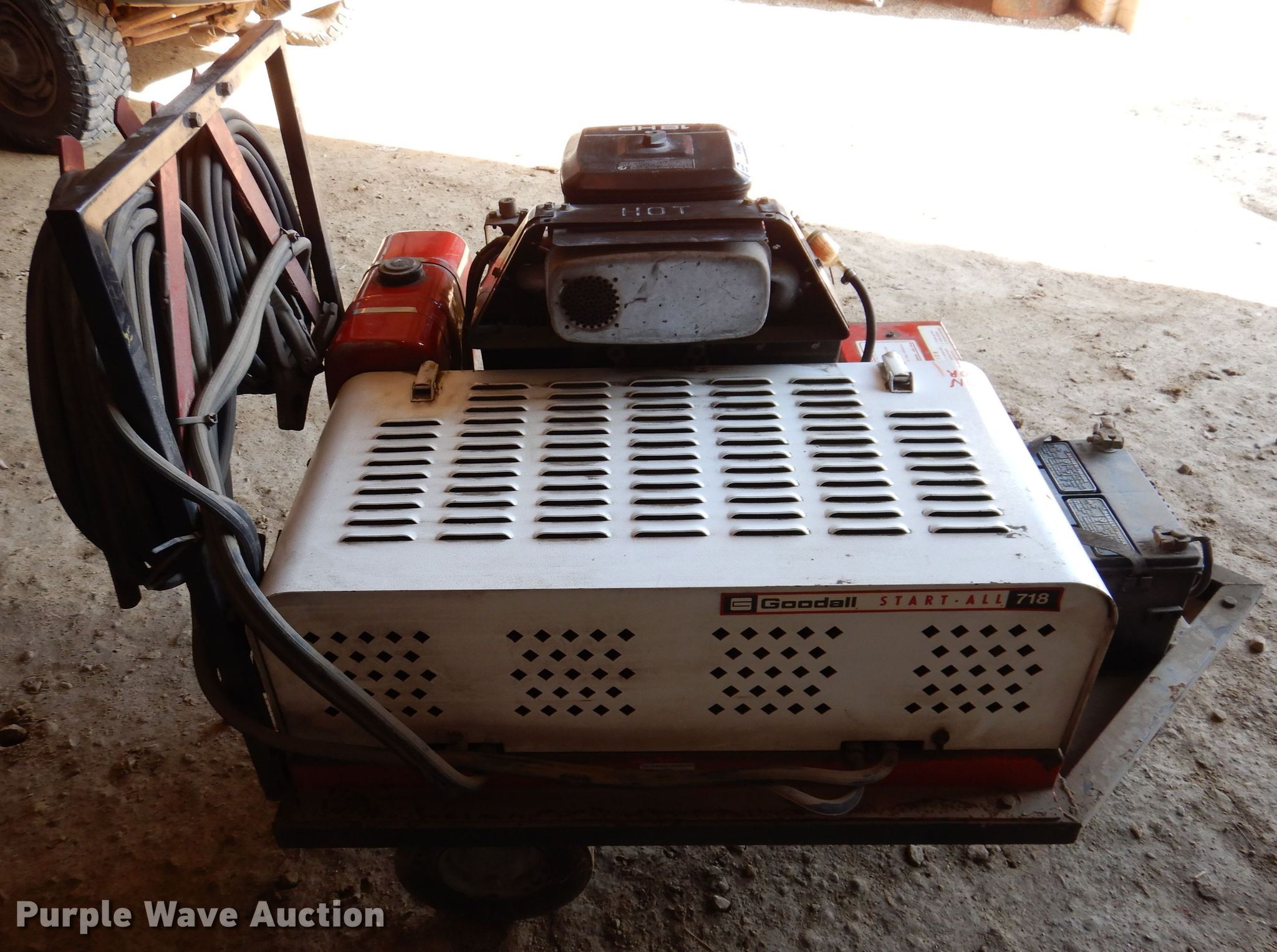 Purple Wave is selling a used Tools in Iowa. This item is a Goodall Start All 718 jump station with the following: Briggs & Stratton engine, HP: 18, Cylinders: 2, Positive and negative leads, Serial: 74949, Unknown operating condition