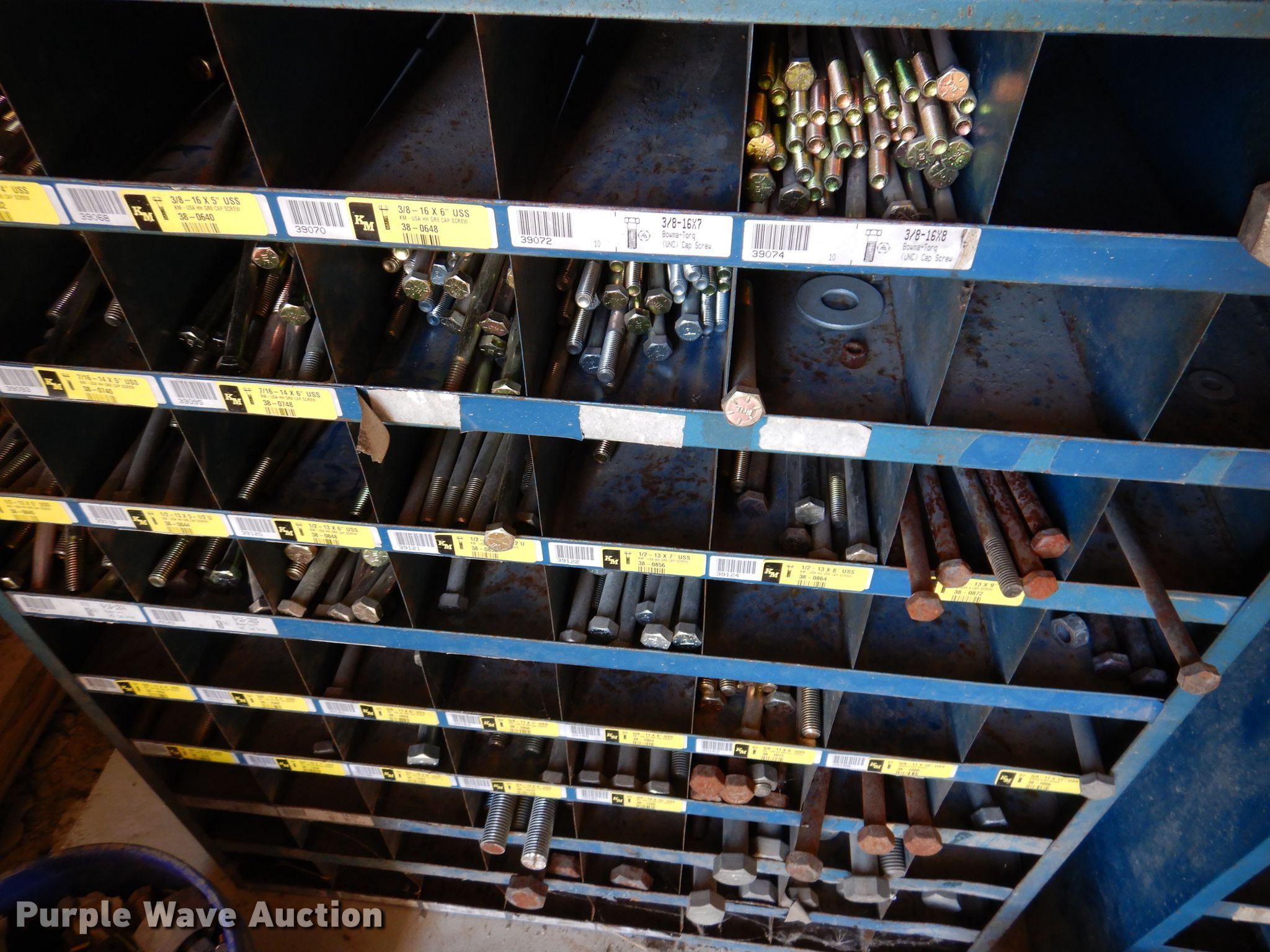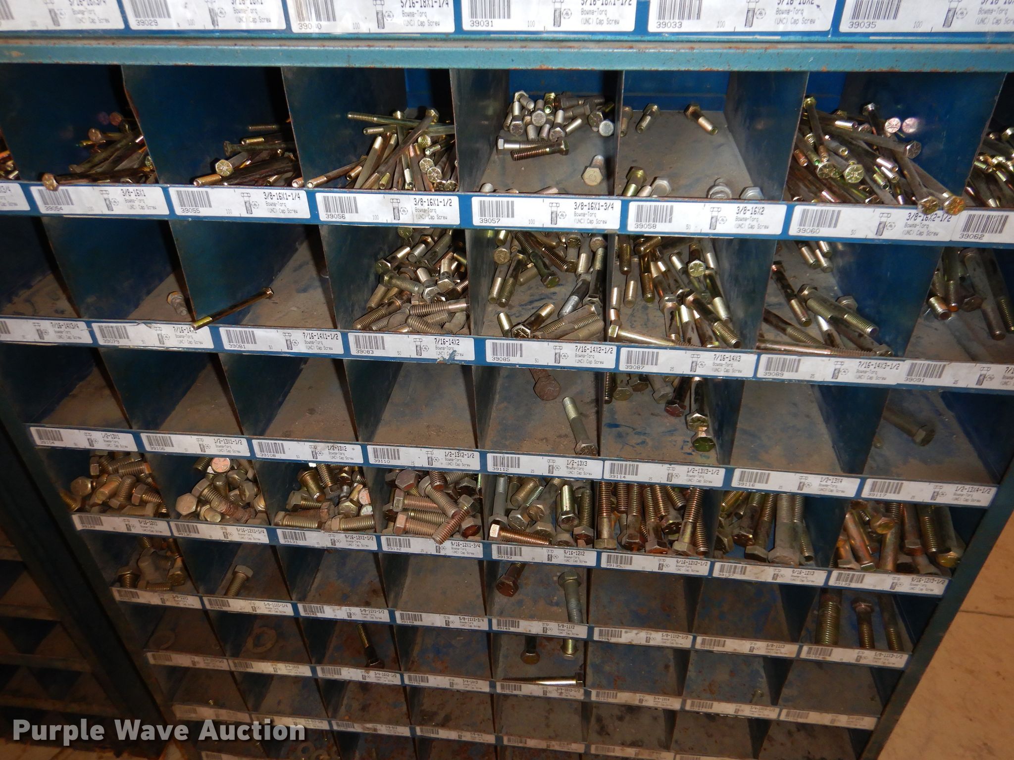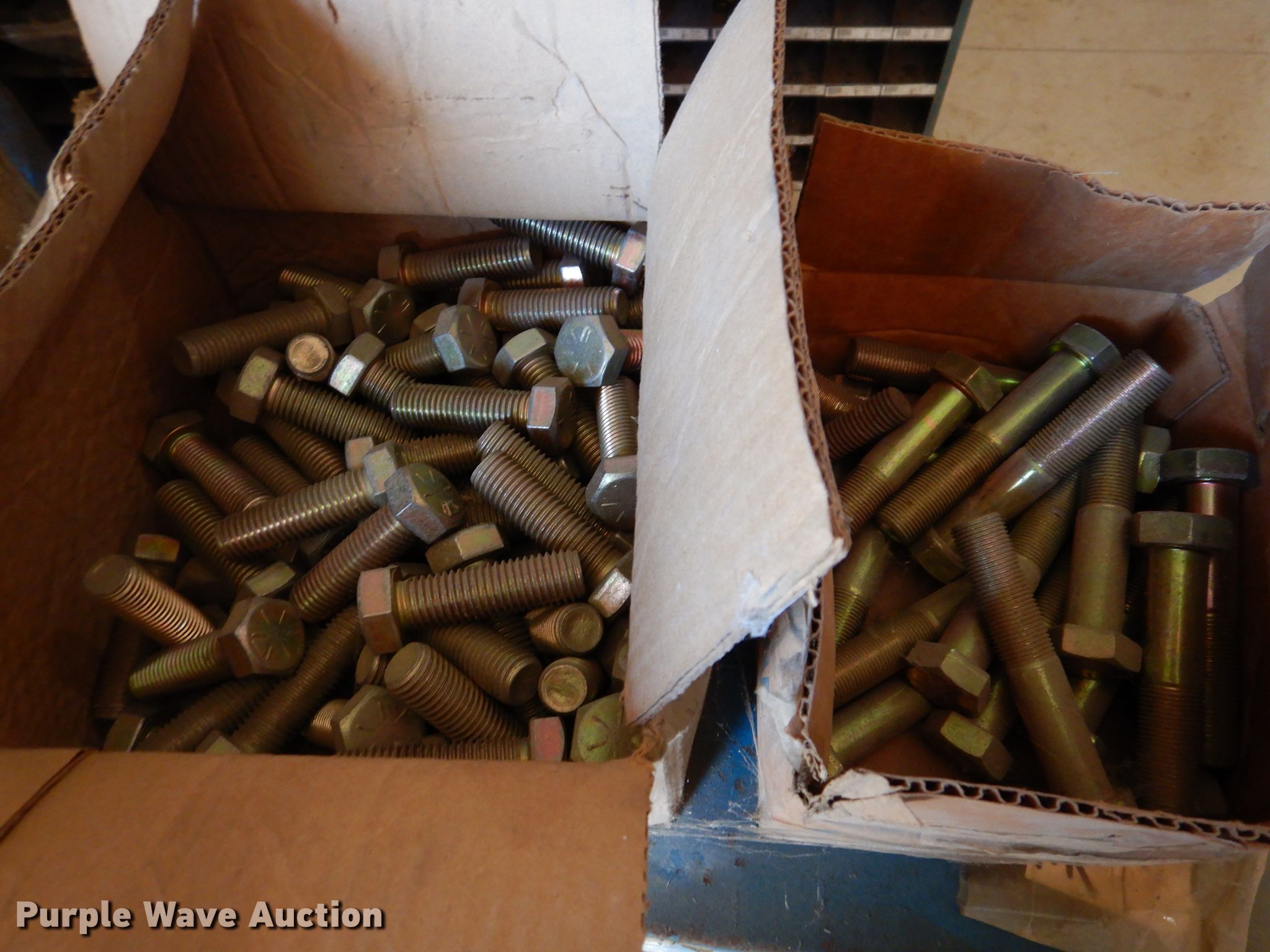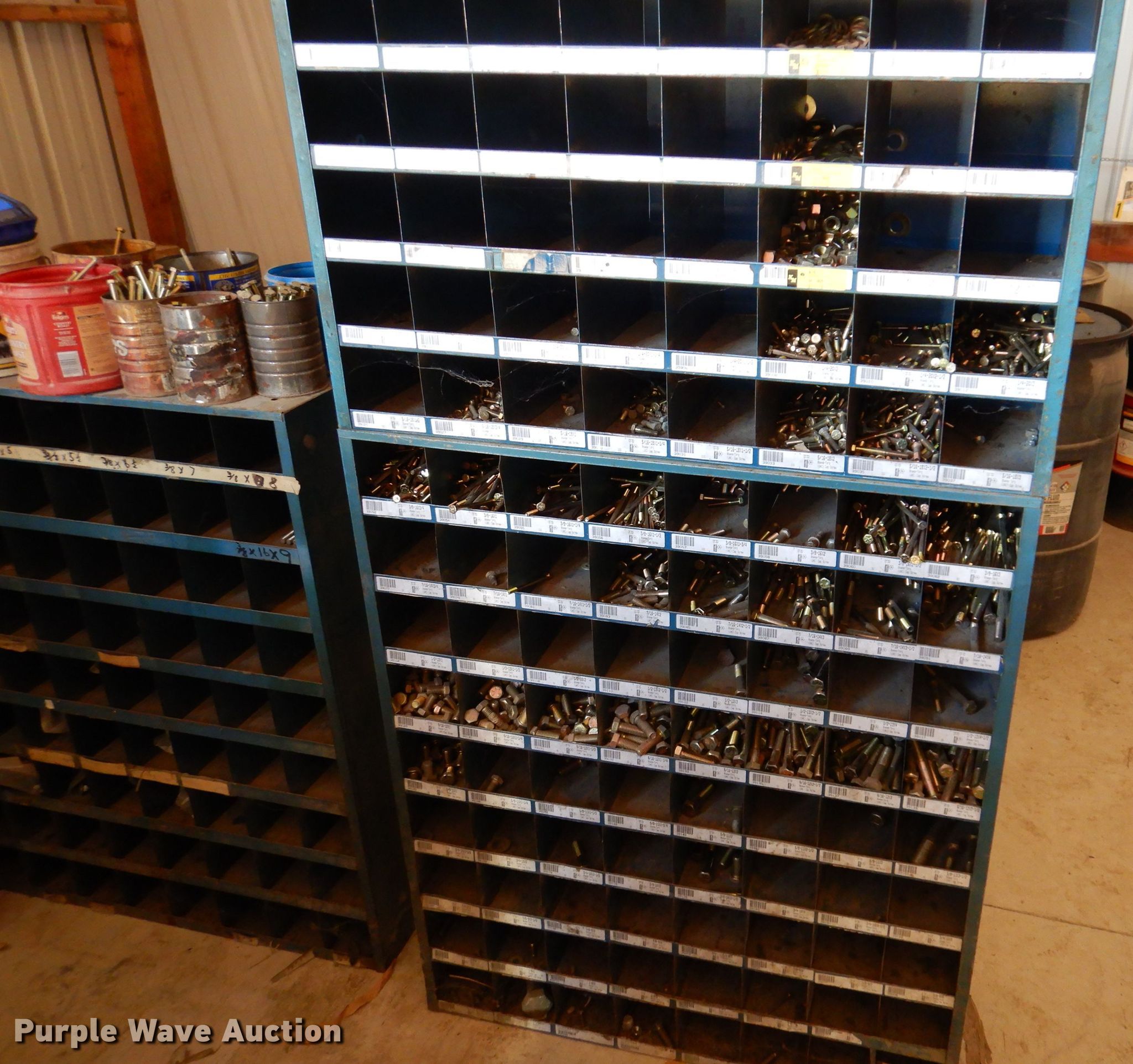 Purple Wave is selling a used Tools in Iowa. This item is a Bolt bins with the following: Various bolts, nuts, and washers