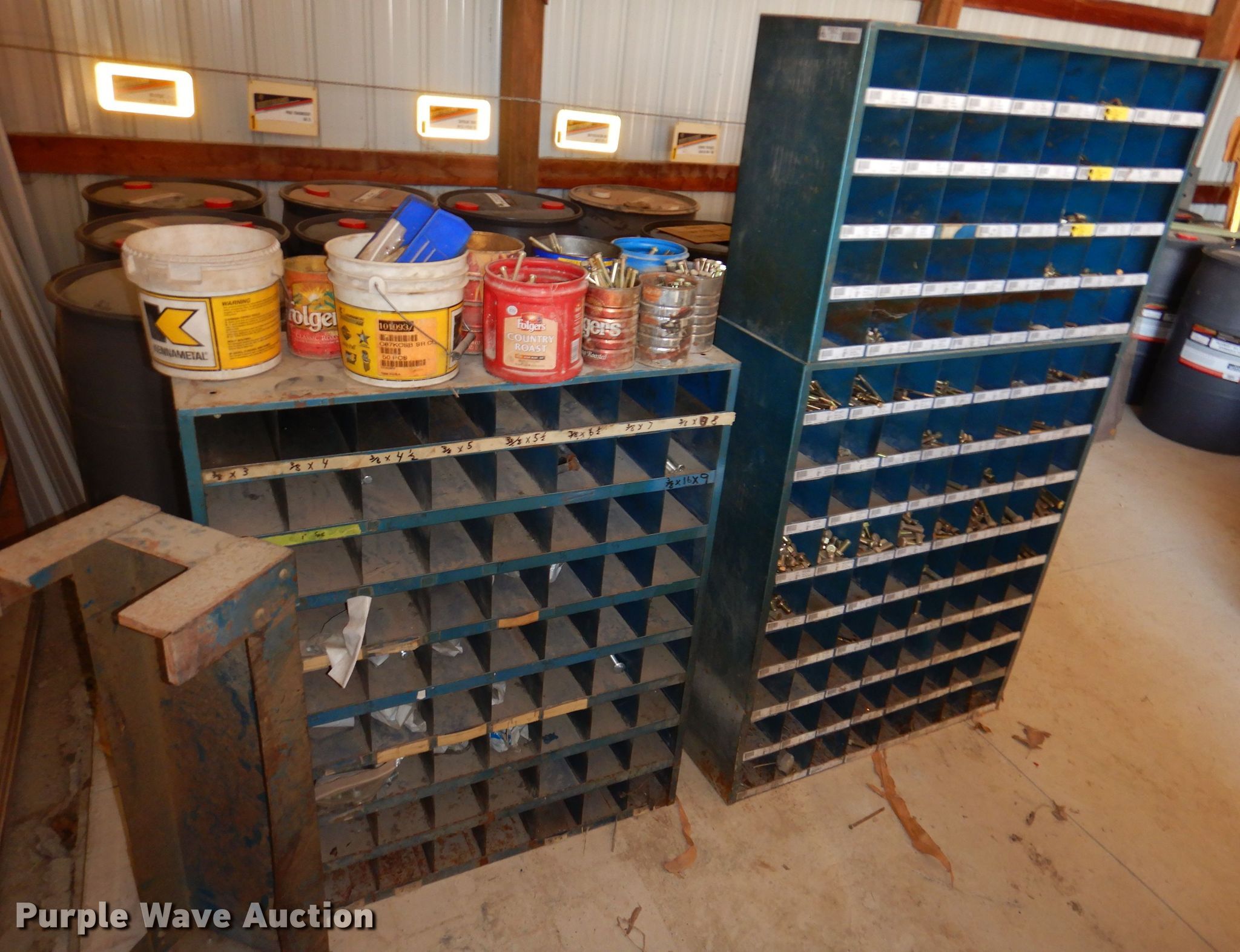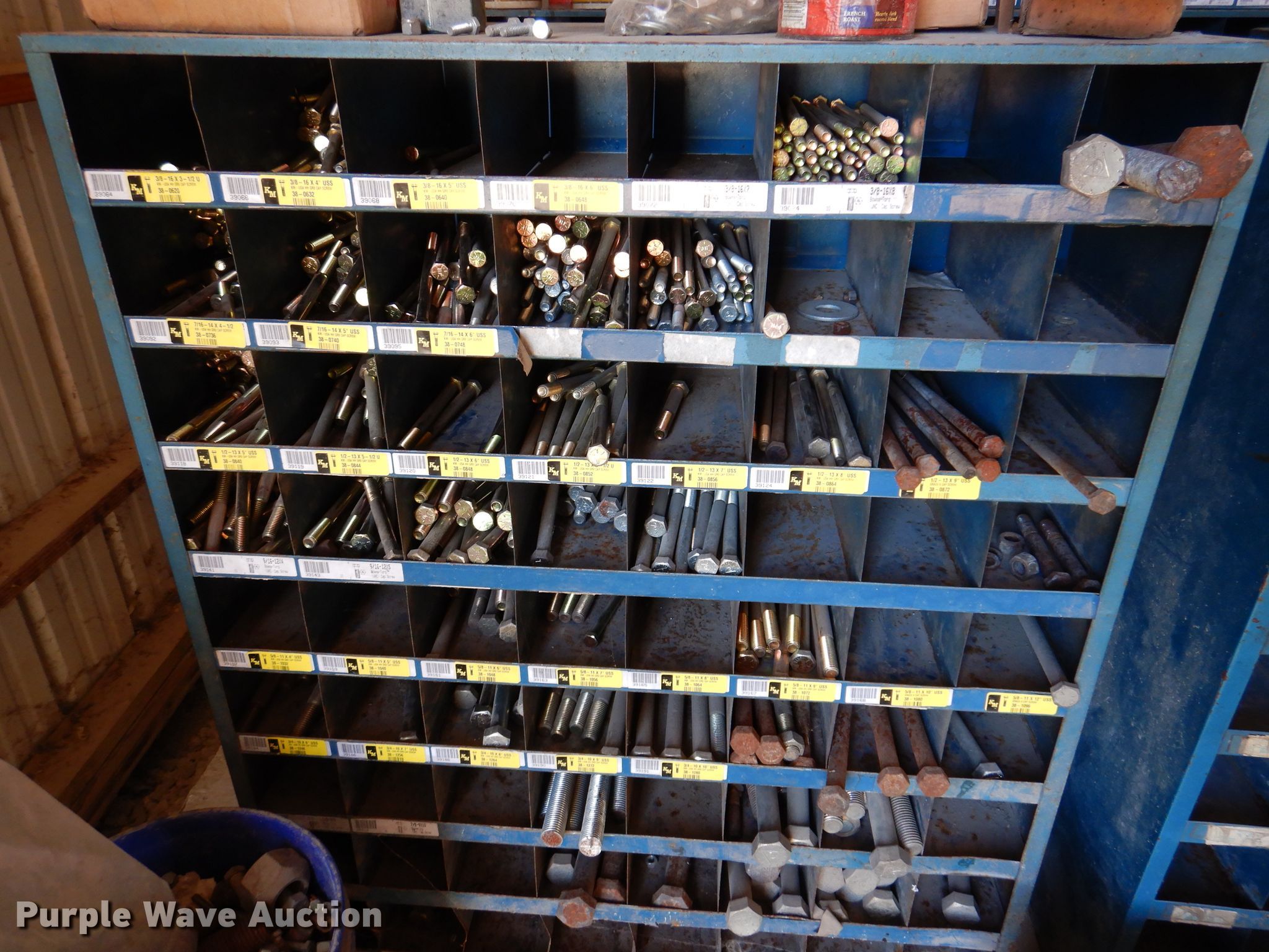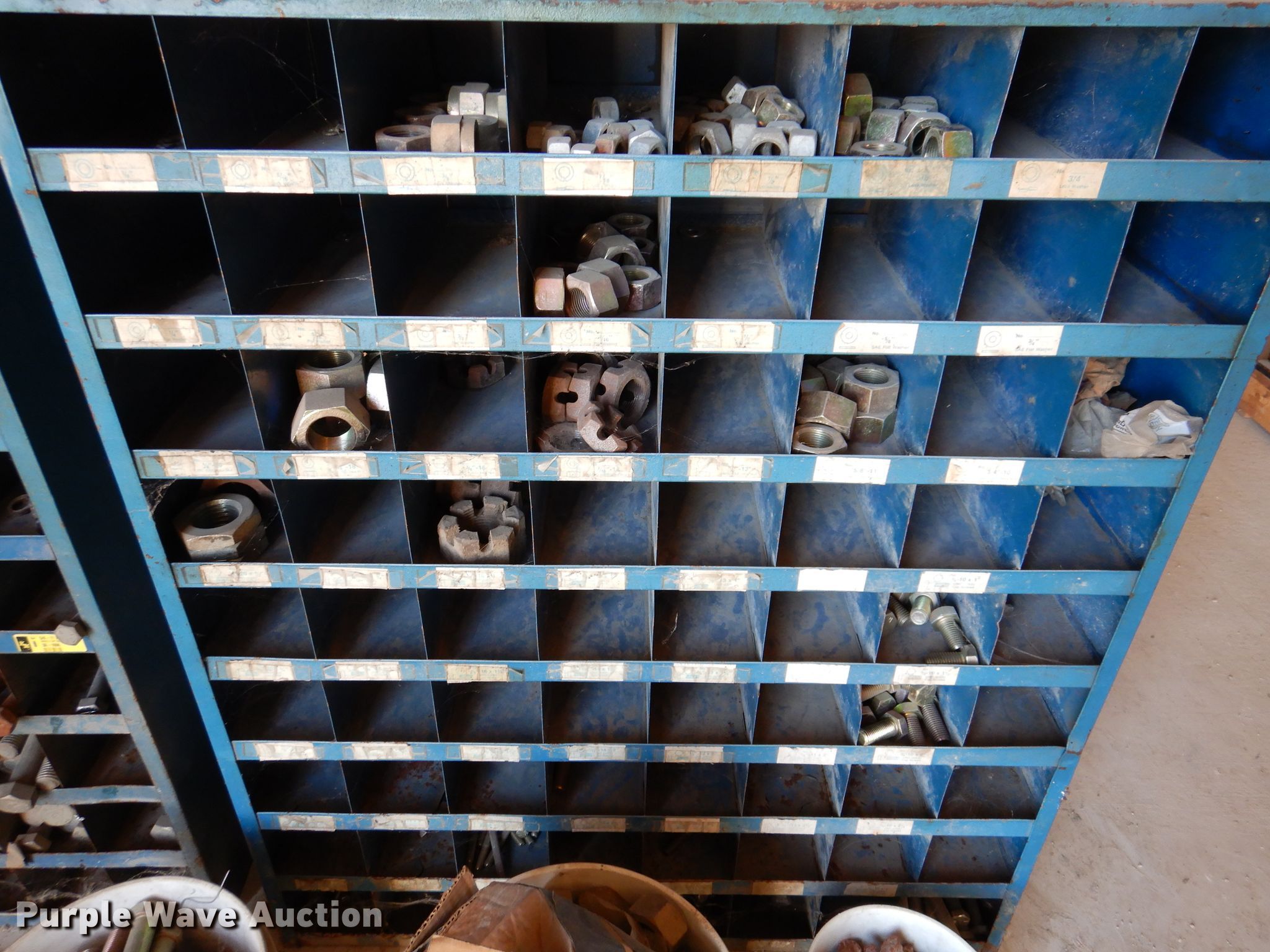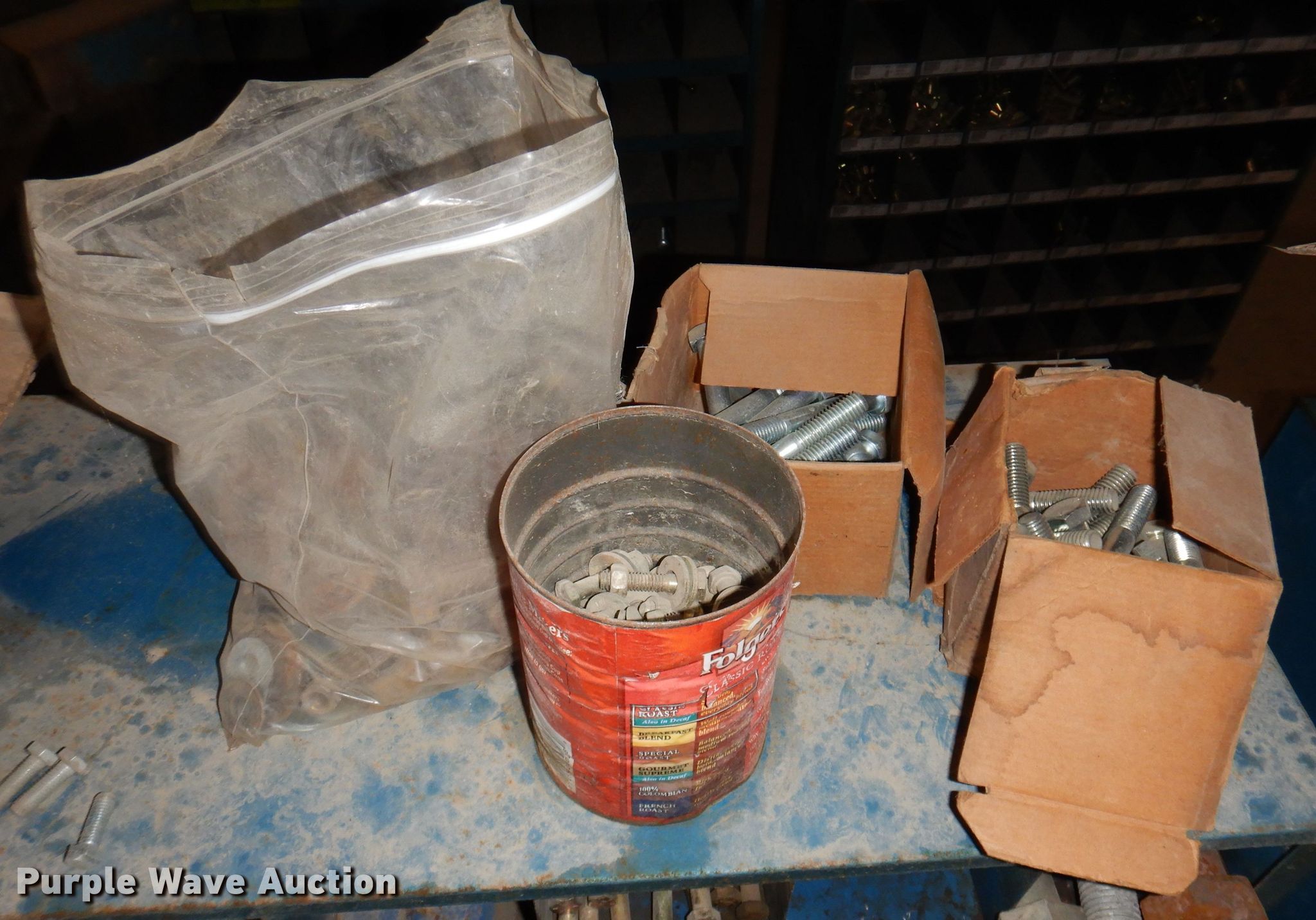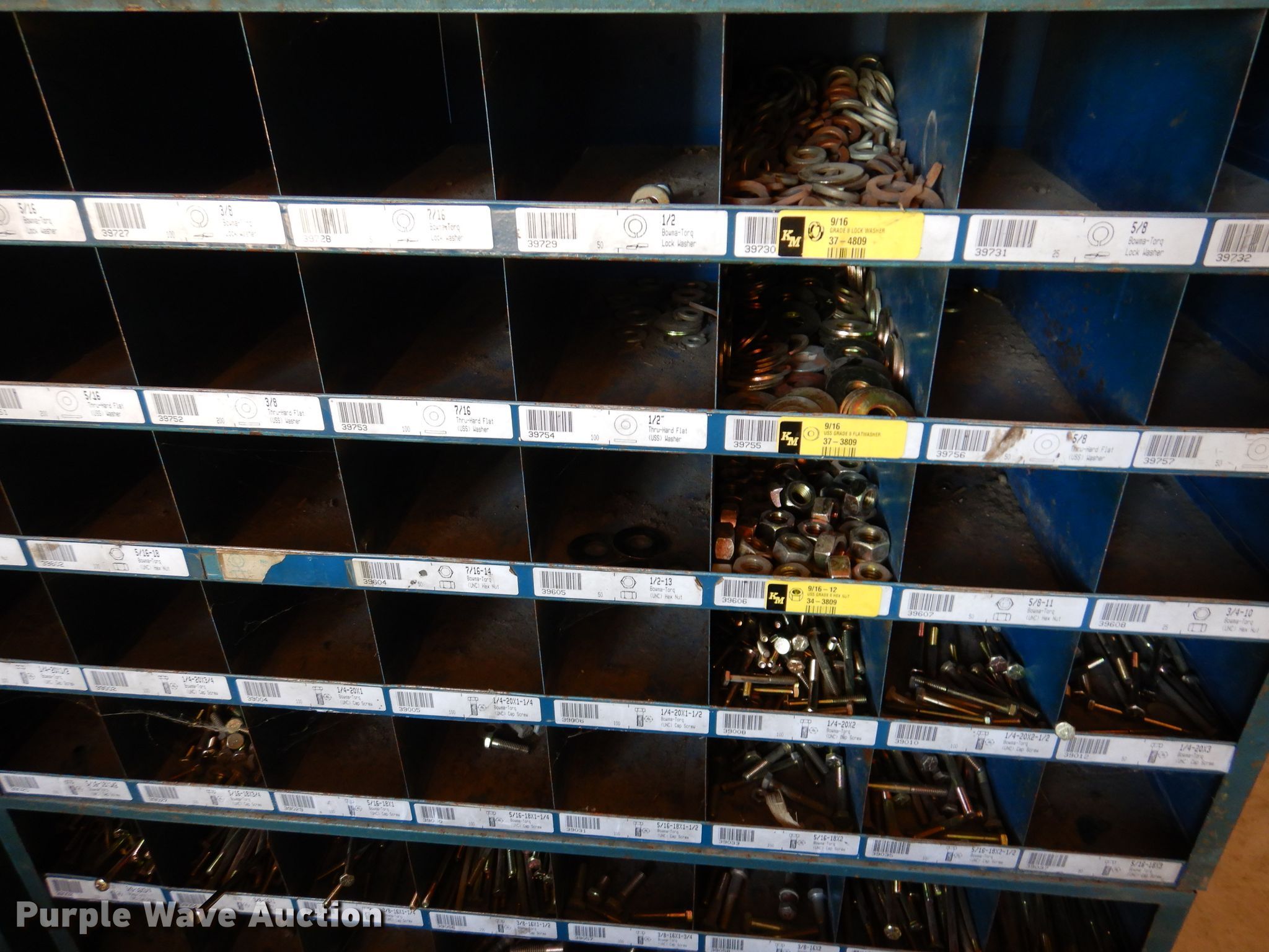 Purple Wave is selling a used Tools in Iowa. This item is a Bolt bins with the following: Various bolts, nuts, and washers