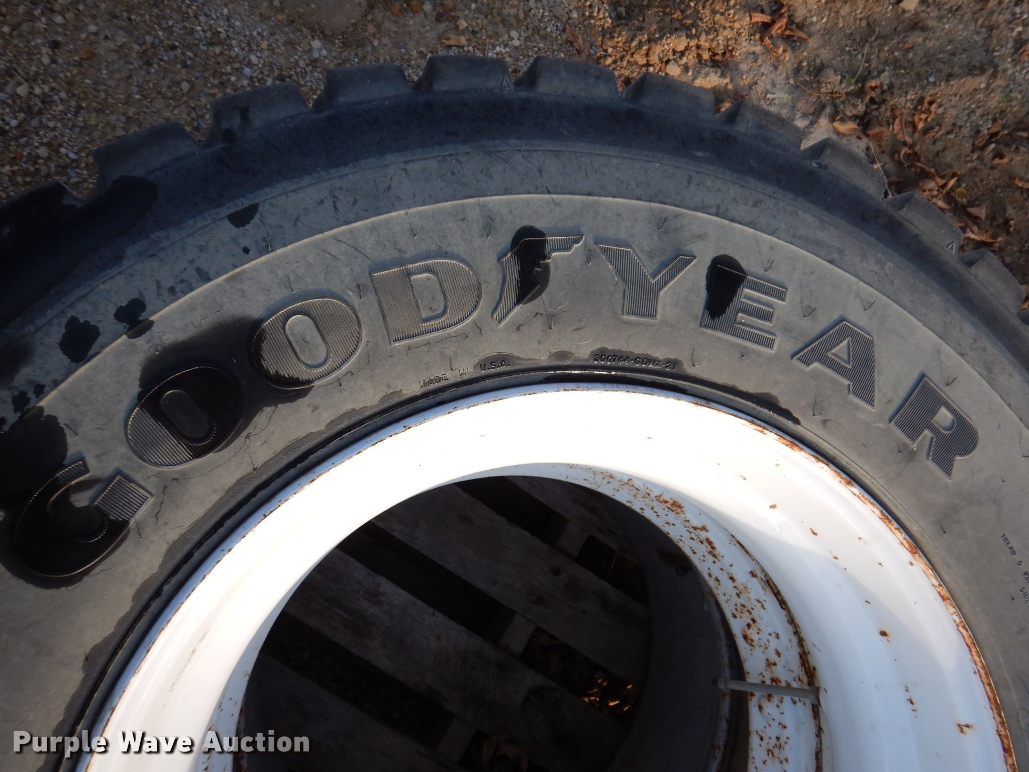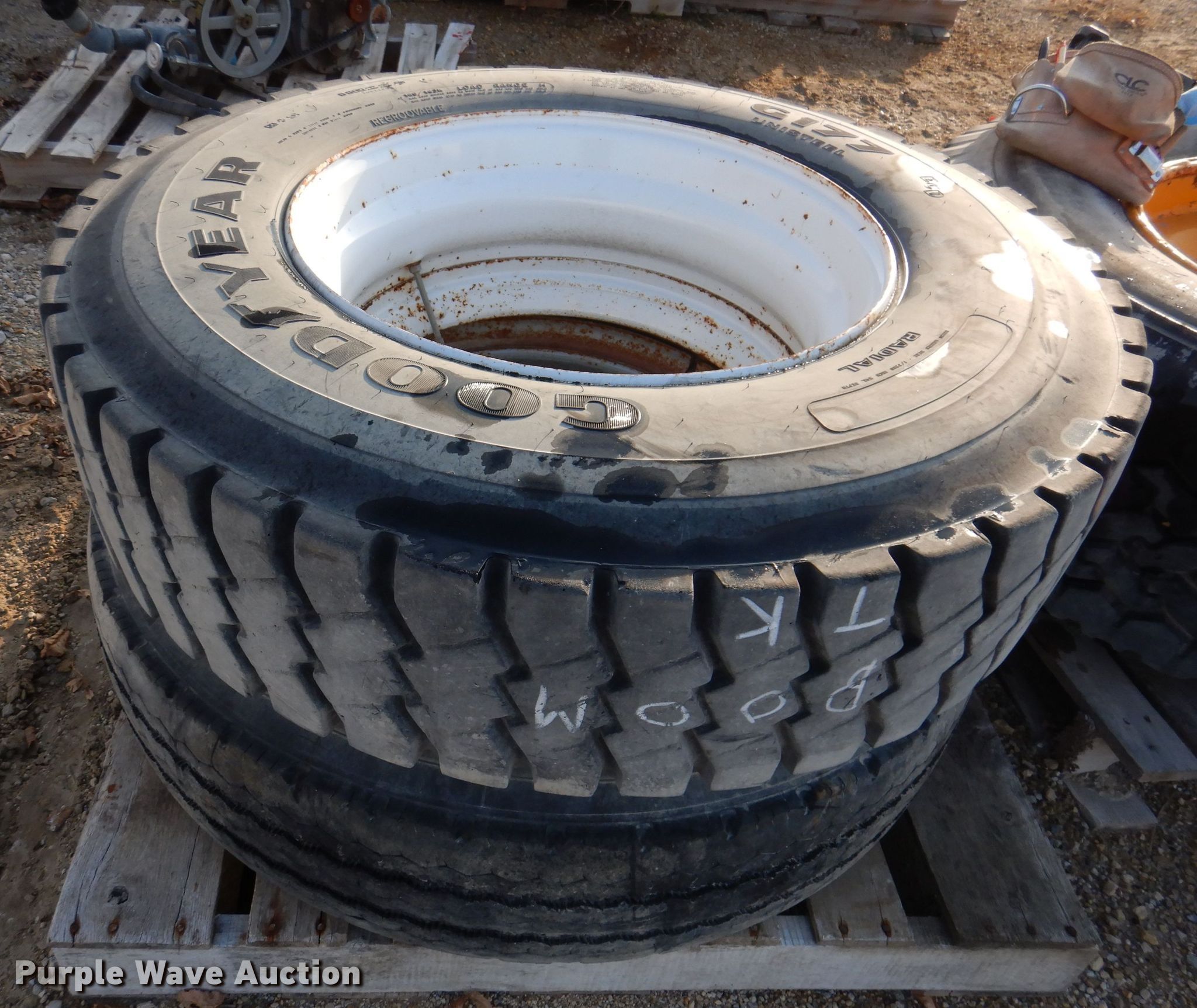 Purple Wave is selling a used Industrial Tires or Tracks in Iowa. This item is a (2) Goodyear 11R22.5 tires with the following: Split rim