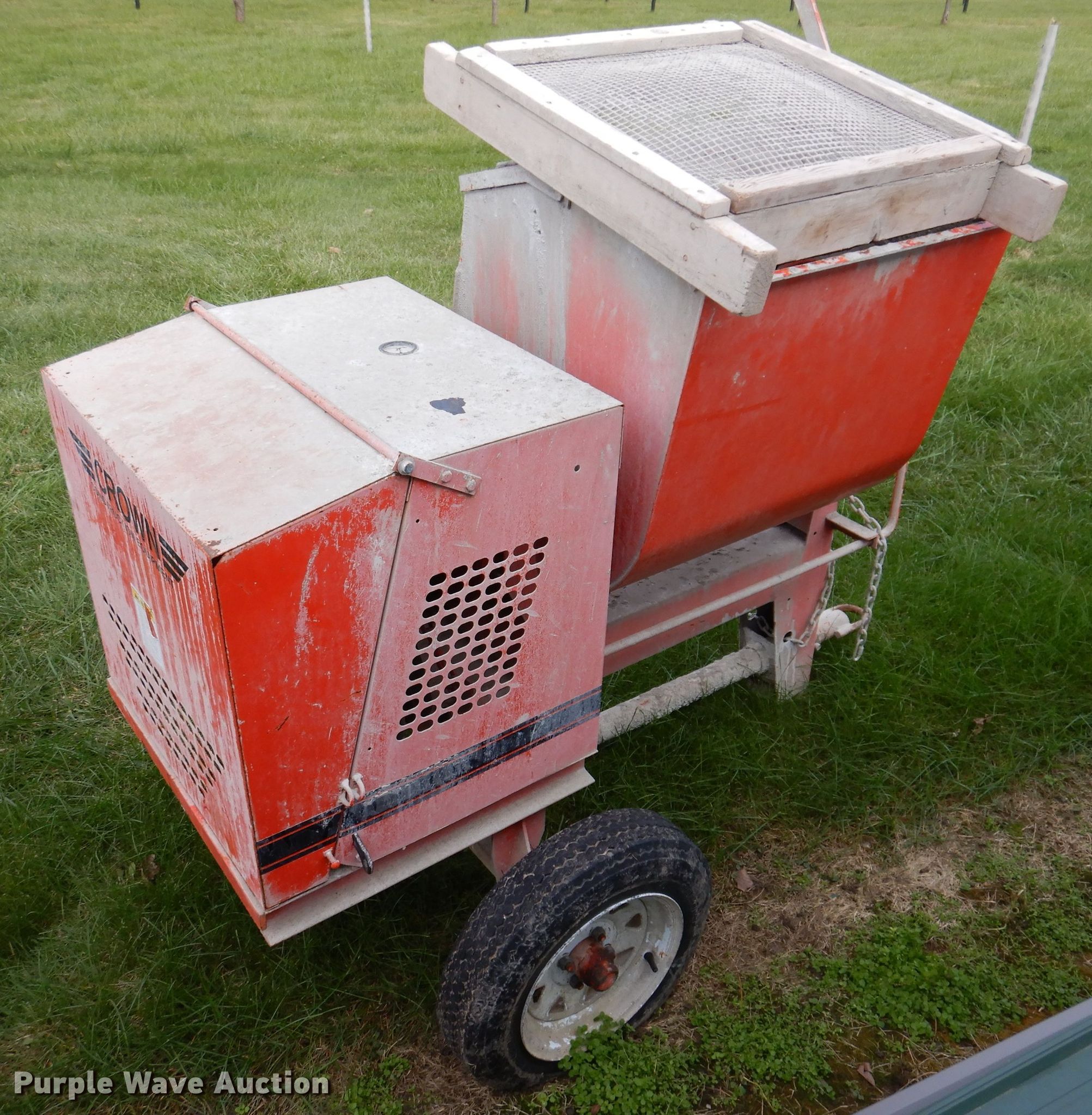 Purple Wave is selling a used Concrete Dispenser in Iowa. This item is a Crown mortar mixer with the following: Baldor L1319N electric motor, 1/2 HP, 115/230V, 5.3-12 tires