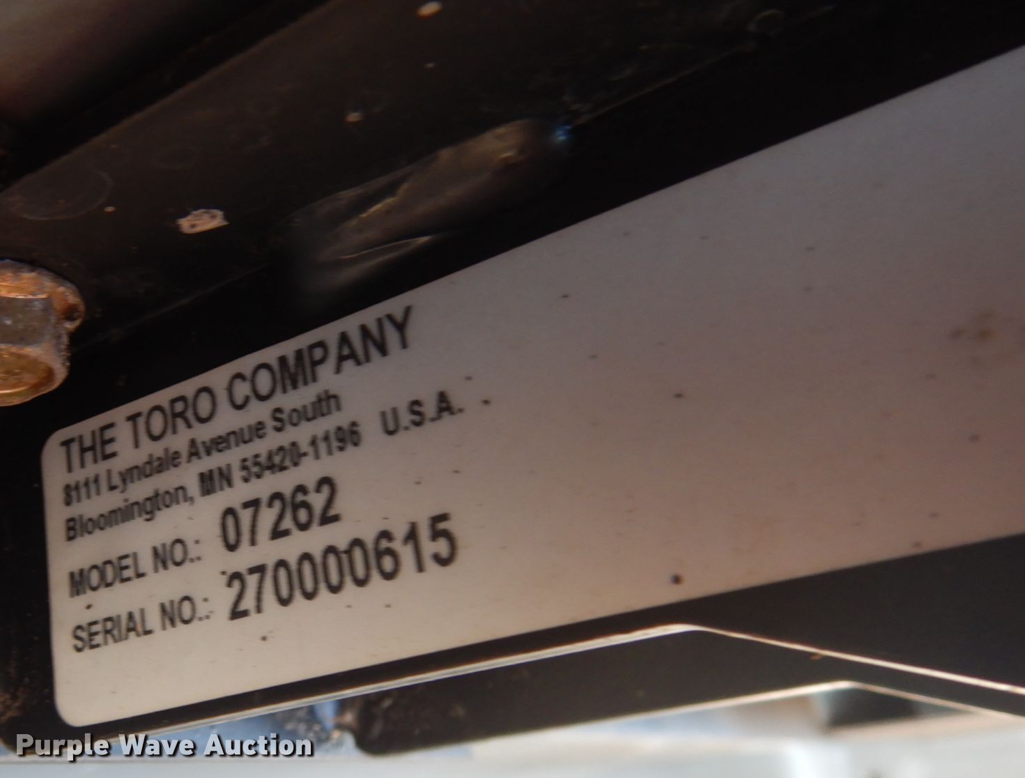 Purple Wave is selling a used Golf Cart in Minnesota. This item is a Toro 07262 utility vehicle with the following: Hours: 1,004 on meter, Serial: 270000615