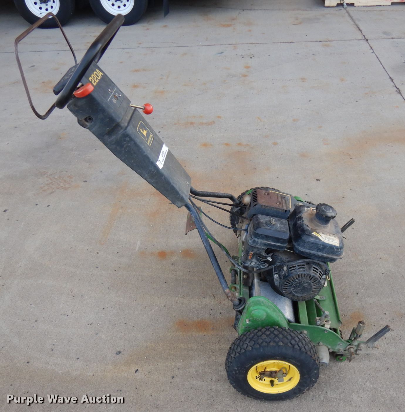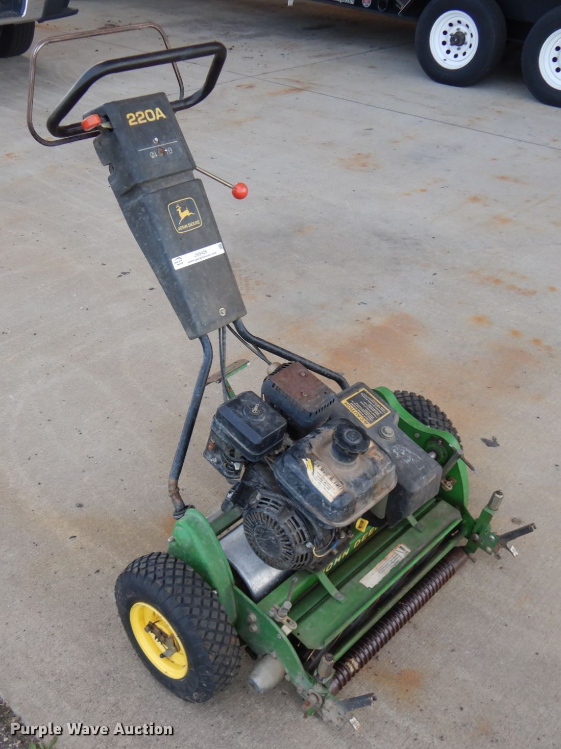 Purple Wave is selling a used Lawn and Garden in Minnesota. This item is a John Deere 220A reel mower with the following: 24"W, Single cylinder gas engine