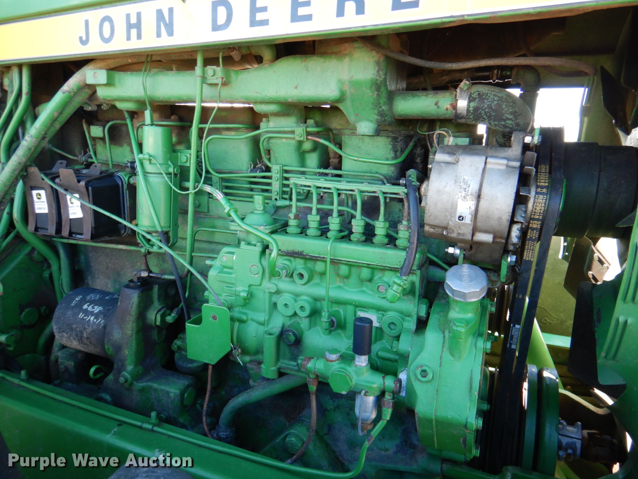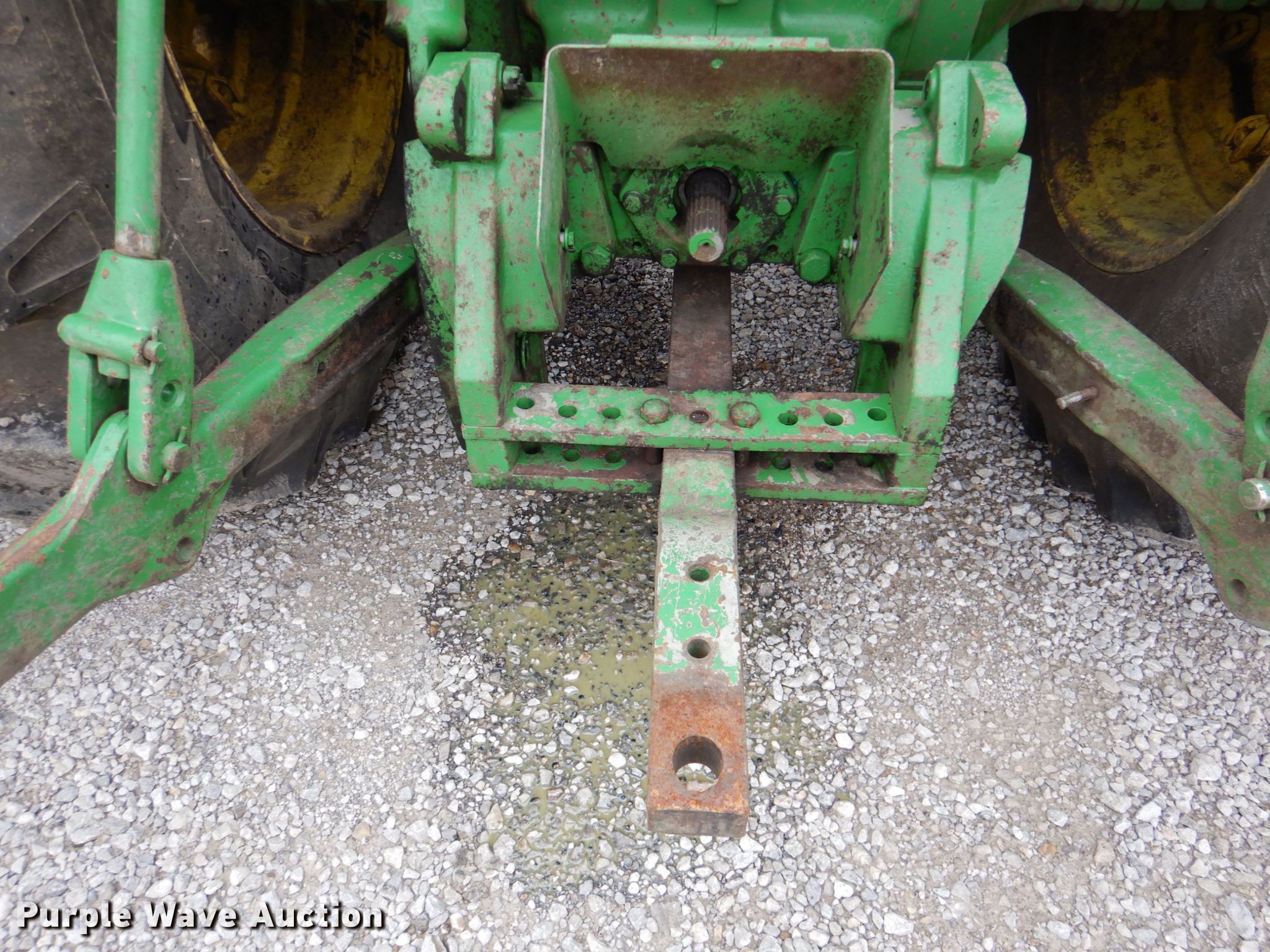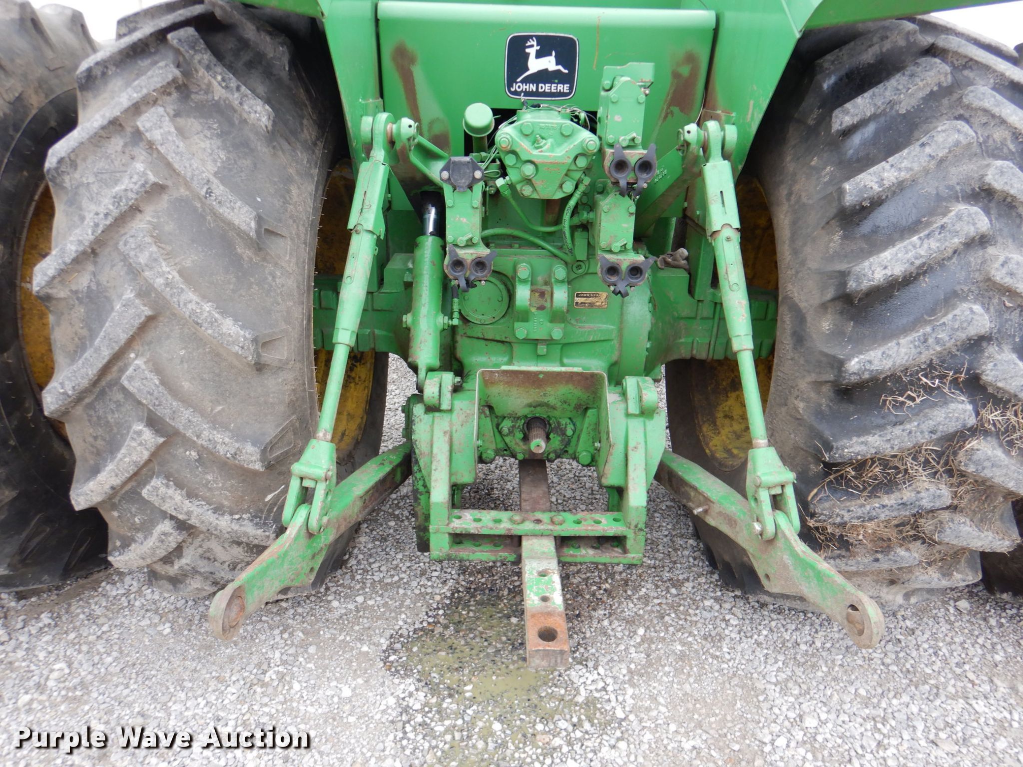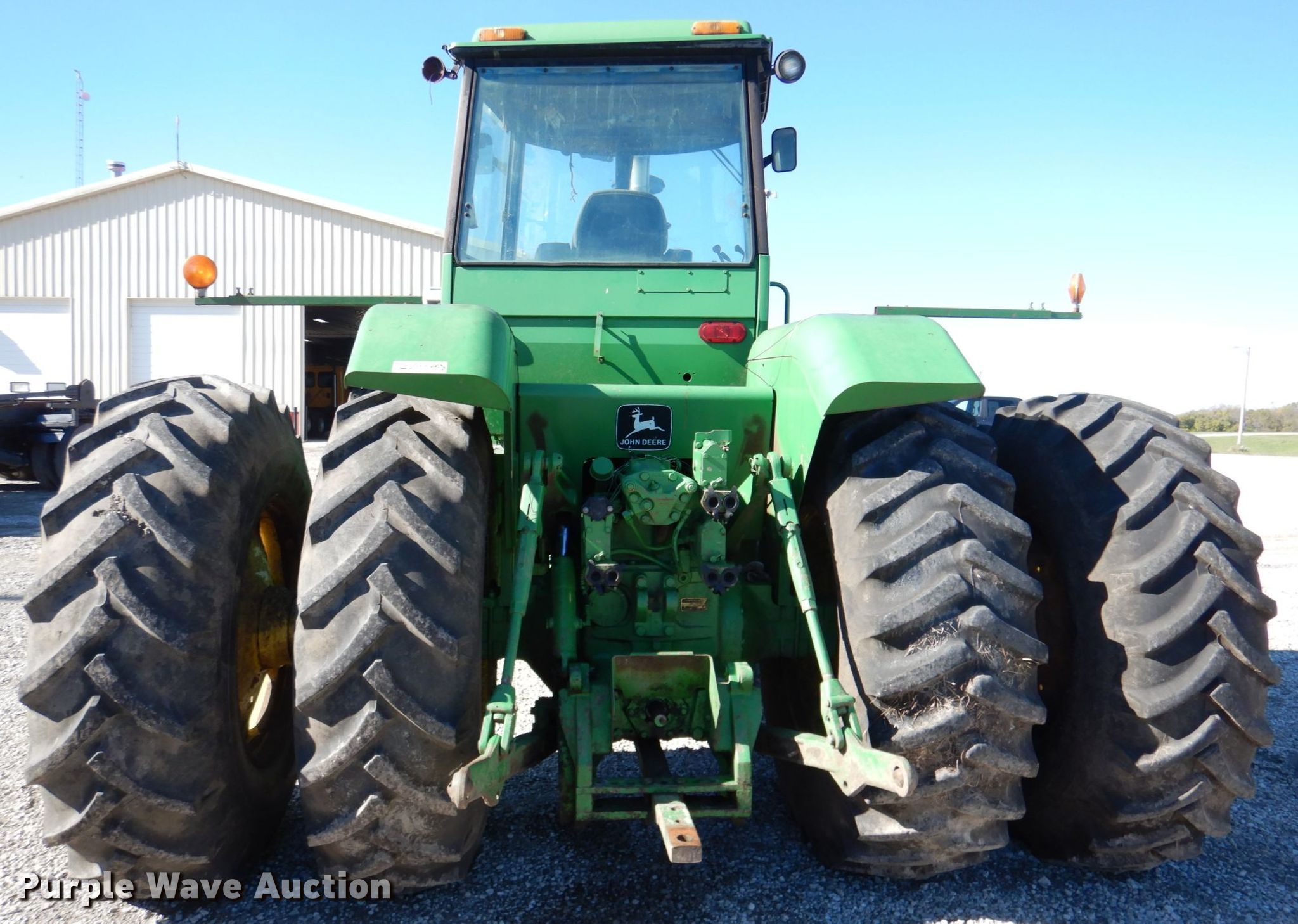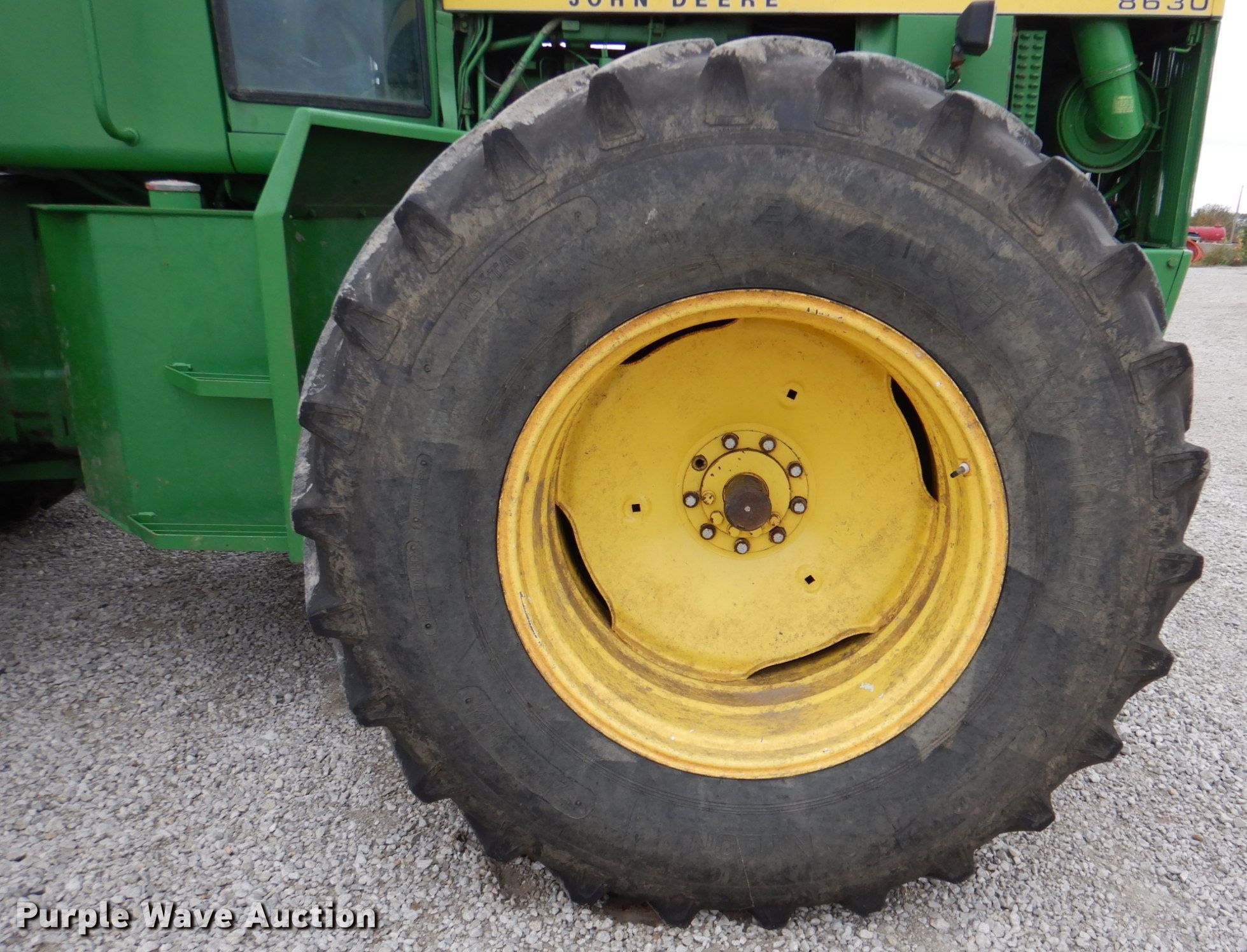 John Deere 8630 4WD tractor. Hours: 6,780 on meter, Serial: 003052R. Engine John Deere, Cylinders: 6, Fuel type: Diesel. Transmission Quad-range, 16F - 6R. Operators station AC, Heat. Operational PTO: 1 3/4" 1000, Three point, Hydraulic remote sets Rear: 3. Tires Size: 20.8-34, Duals. Notes AC compressor belt removed, Window latches missing, Three point cylinder leak, Left front outside tire split. A-1 Pump & Jet Services Inc.. Emporia, KS 66801