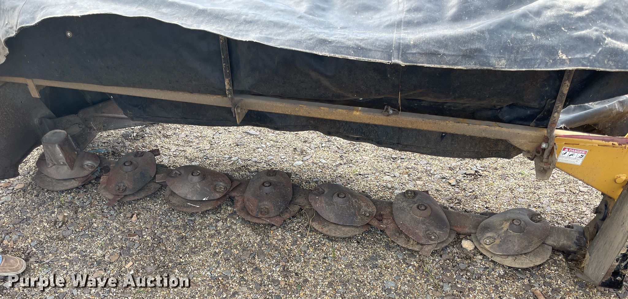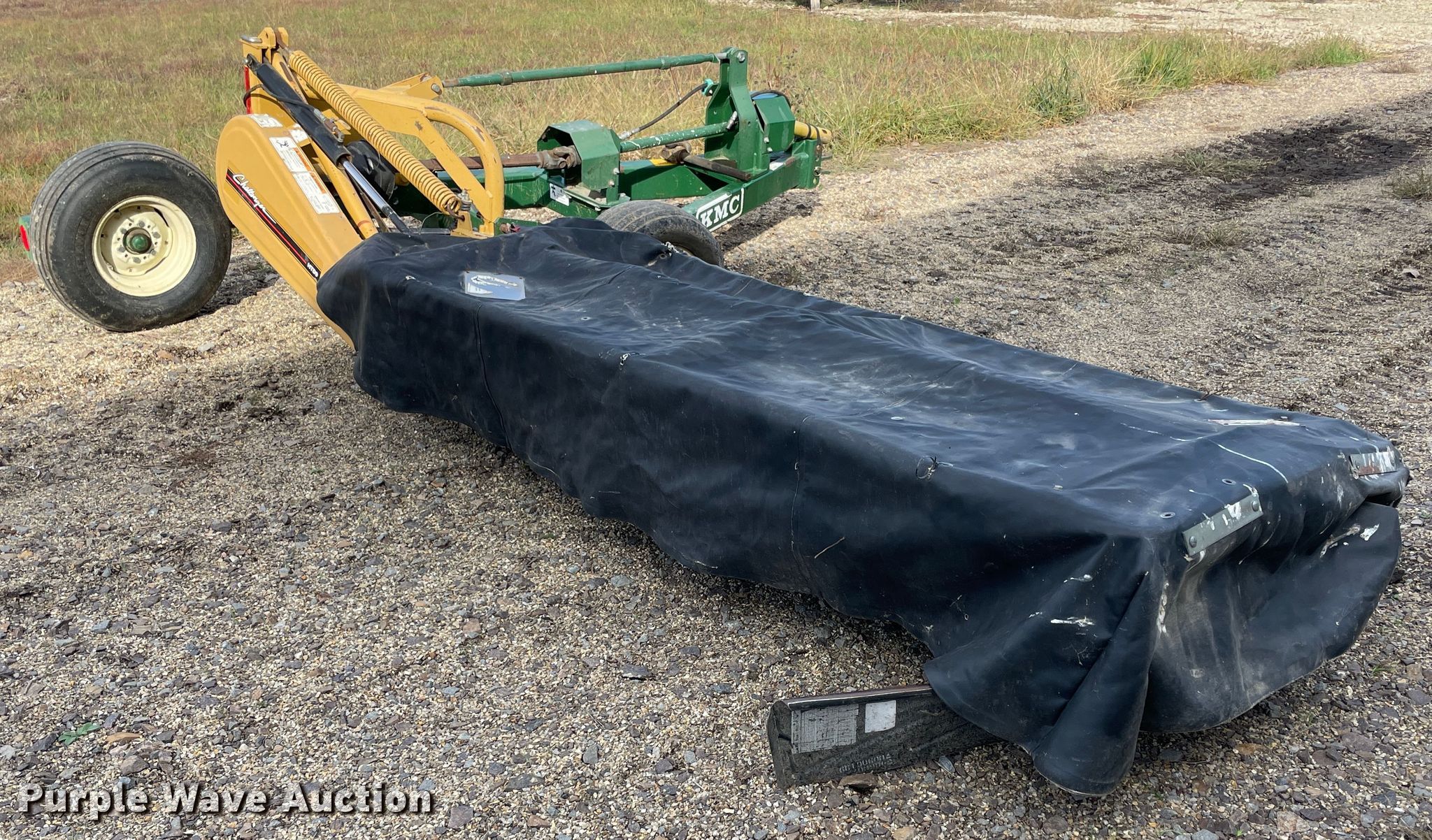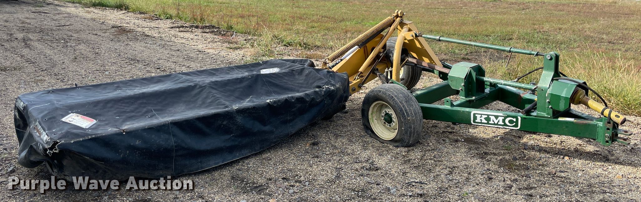 Purple Wave is selling a used Disc or Sickle Mower in Kansas. This item is a AGCO HTD9 disc mower with the following: Width: 9', 540 PTO, 11L-15SL Tires, KMC 4755 Mower caddy