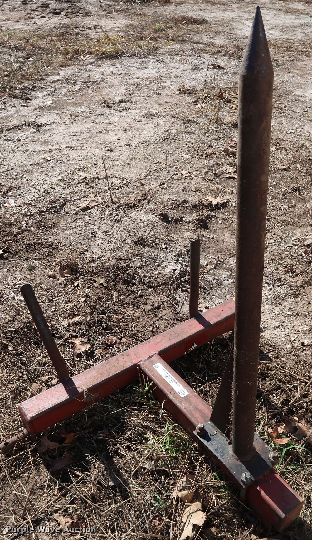 Purple Wave is selling a used Hay Handling in Oklahoma. This item is a Bale spear with the following: 41" L fork, 12" L lower forks, Hitch: Three point