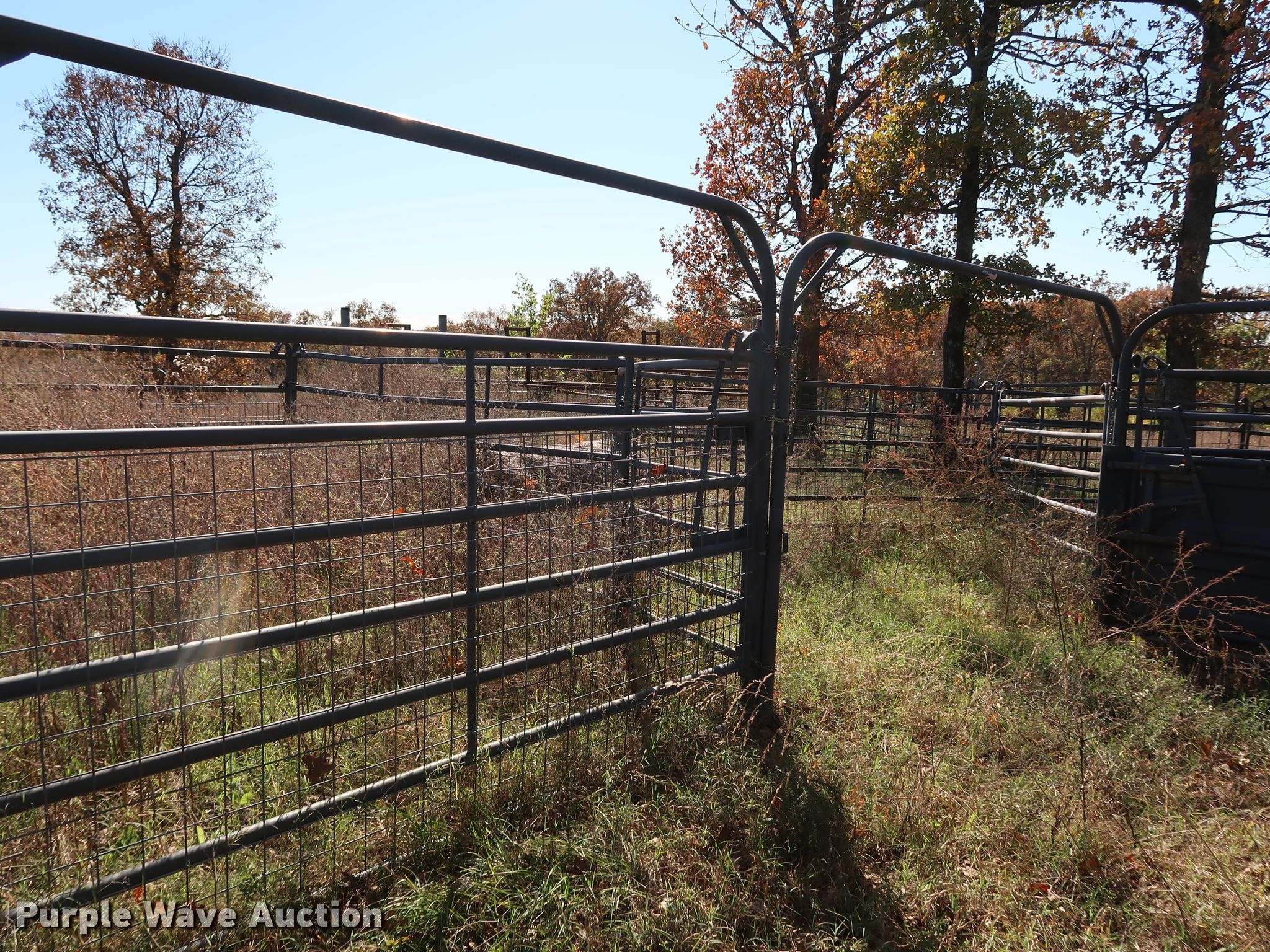 Purple Wave is selling a used Livestock Equip. in Oklahoma. This item is a Livestock equipment with the following: 12' L x 62" panels, Priefert livestock chute, Serial: 1898, 8' L x 45" W, Priefert calf table, 5' L x 28" W