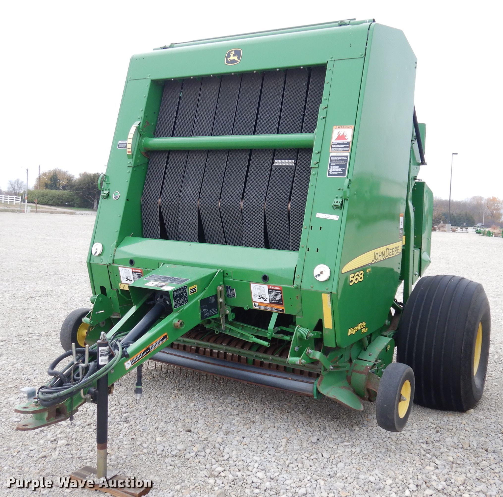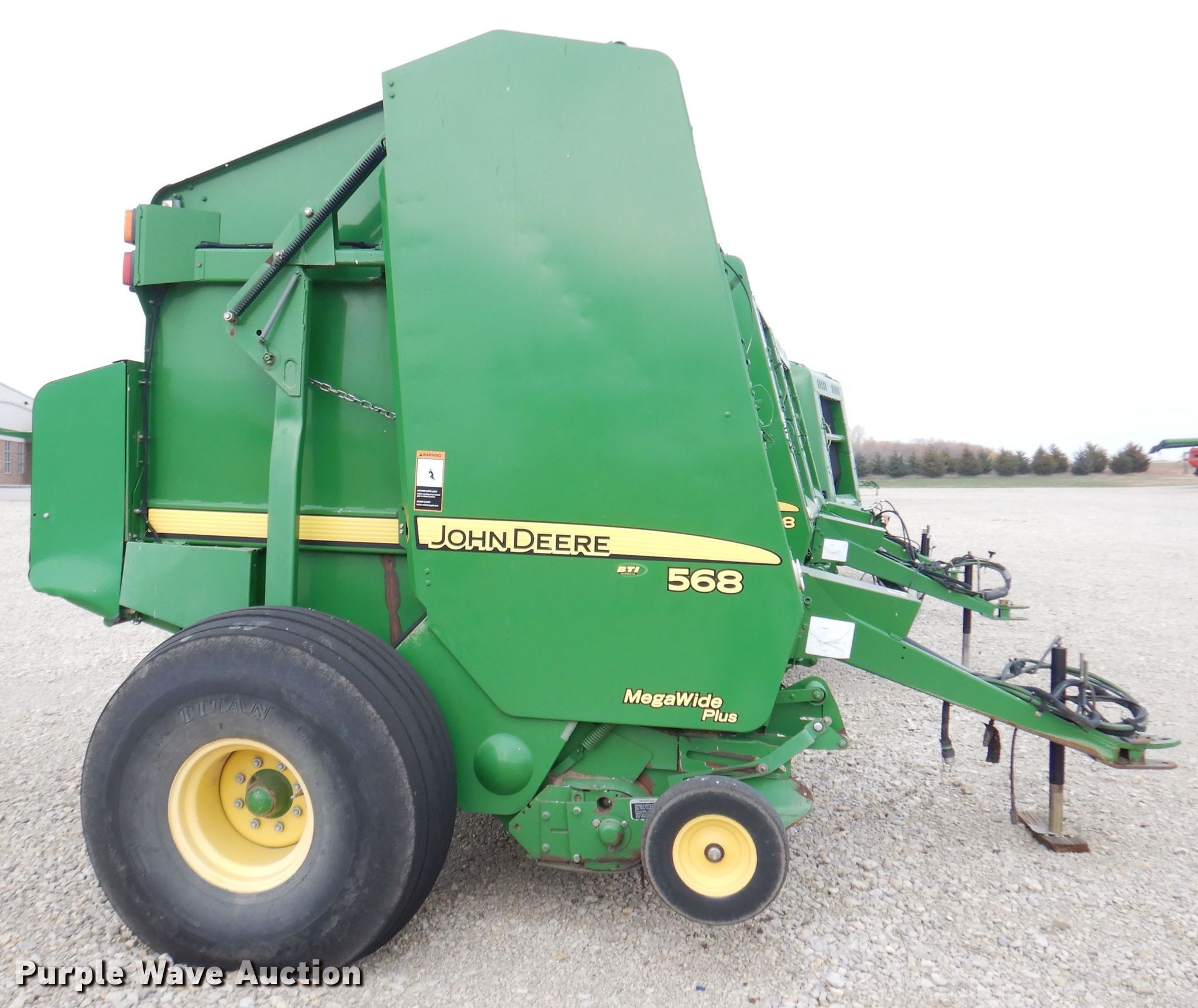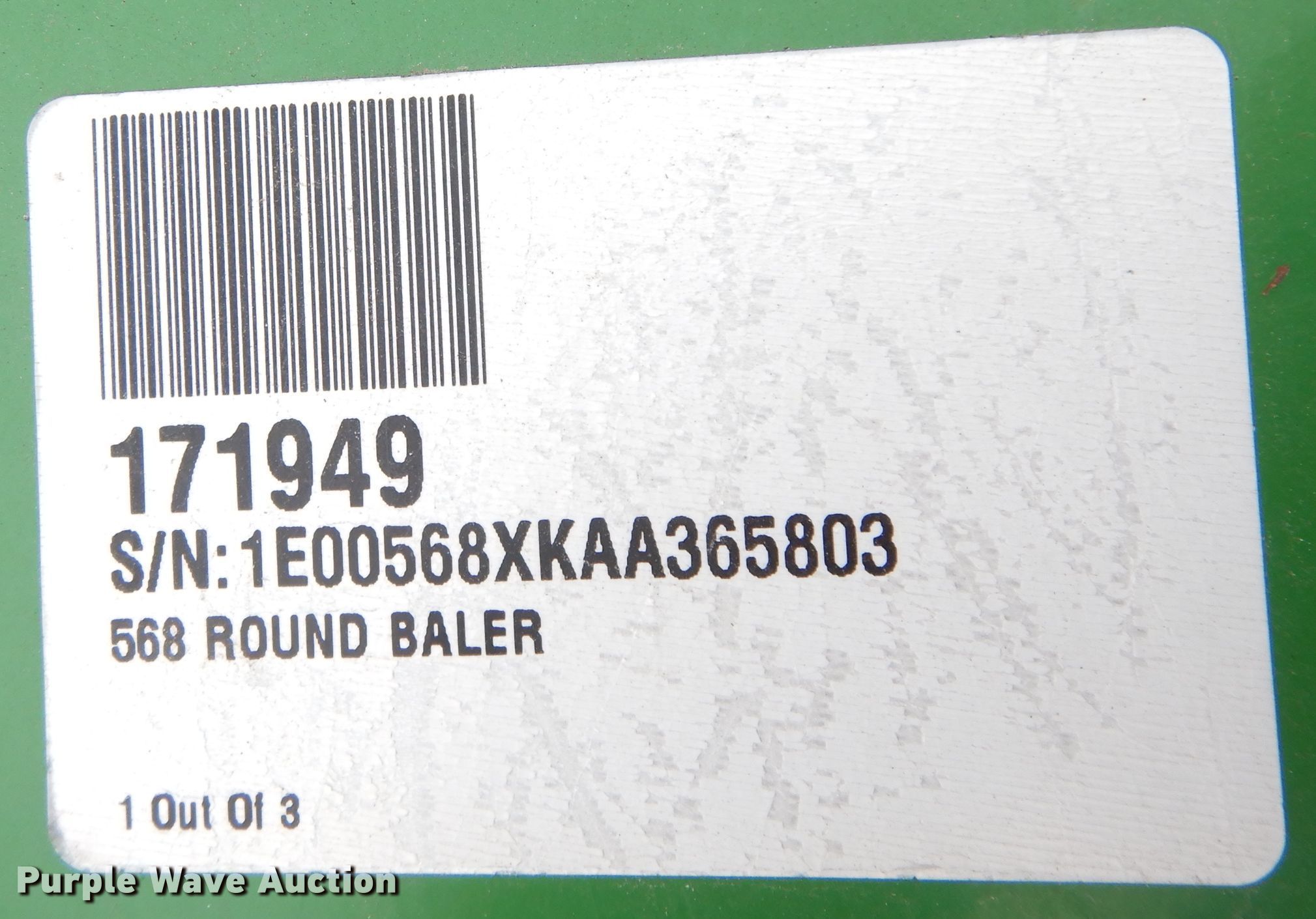 Purple Wave is selling a used Round Baler in Kansas. This item is a 2010 John Deere 568 round baler with the following: Serial: 1E00568XKAA365803, Unit #: 171949