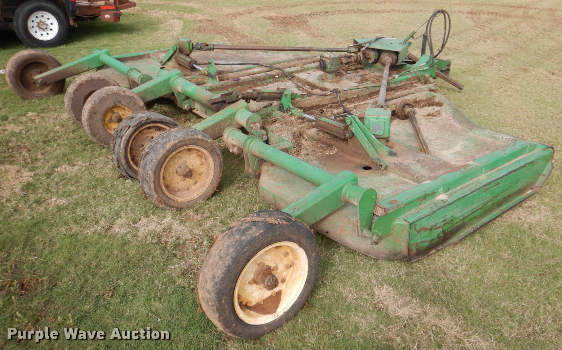Purple Wave is selling a used Mower, Cutter, Shredder in Oklahoma. This item is a John Deere 1518 batwing rotary mower with the following: Width: 15', Hydraulic fold, PTO: 1000