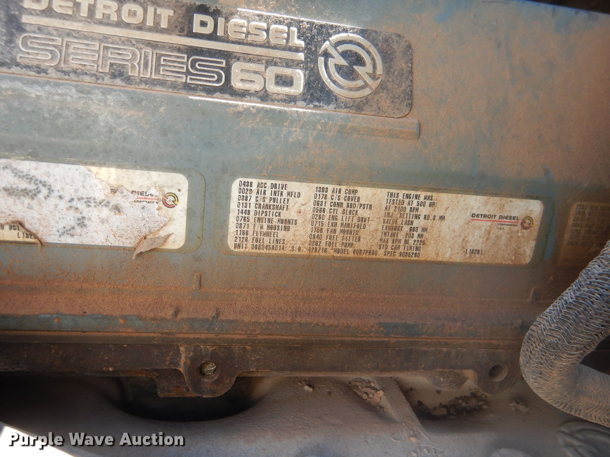 1999 Western Star 4964FX semi truck. Miles: 692,869 on odometer, VIN: 2WKPDDXJ5XK958103. Engine Detroit Series 60, Displacement: 12.7L, Cylinders: 6, Fuel type: Diesel, HP: 500. Transmission Eaton Fuller, Manual. Chassis Axles: Tandem, Suspension: Air, Brakes: Air, Truck chassis: 12' 3", GVWR: 52,000 lbs FAWR: 12,000 lbs, IAWR: 20,000 lbs, RAWR: 20,000 lbs, Wheelbase: 250". Interior AC, Heat, Sleeper Sleeper length: 7', Beds: Single. Operational Deck plate: Aluminum, Fifth wheel type: Air operated, Sliding, Fuel tank: Dual. Tires Size: 285/75R24.5. Notes Windshield chipped or cracked. Texas title. Title distribution may be delayed up to 14 days from verification of funds. 6633 Hwy 277 S. Abilene, TX 79606