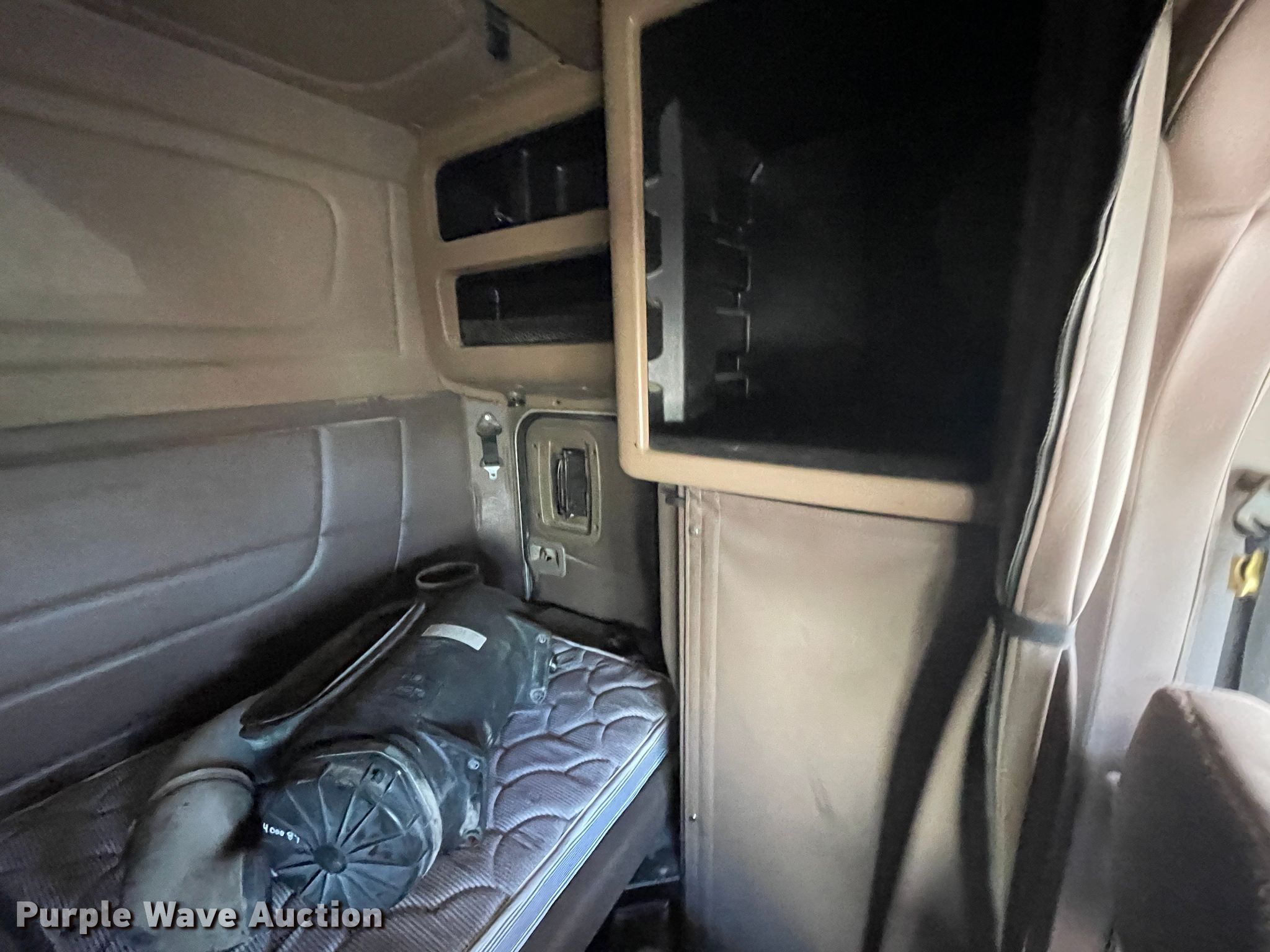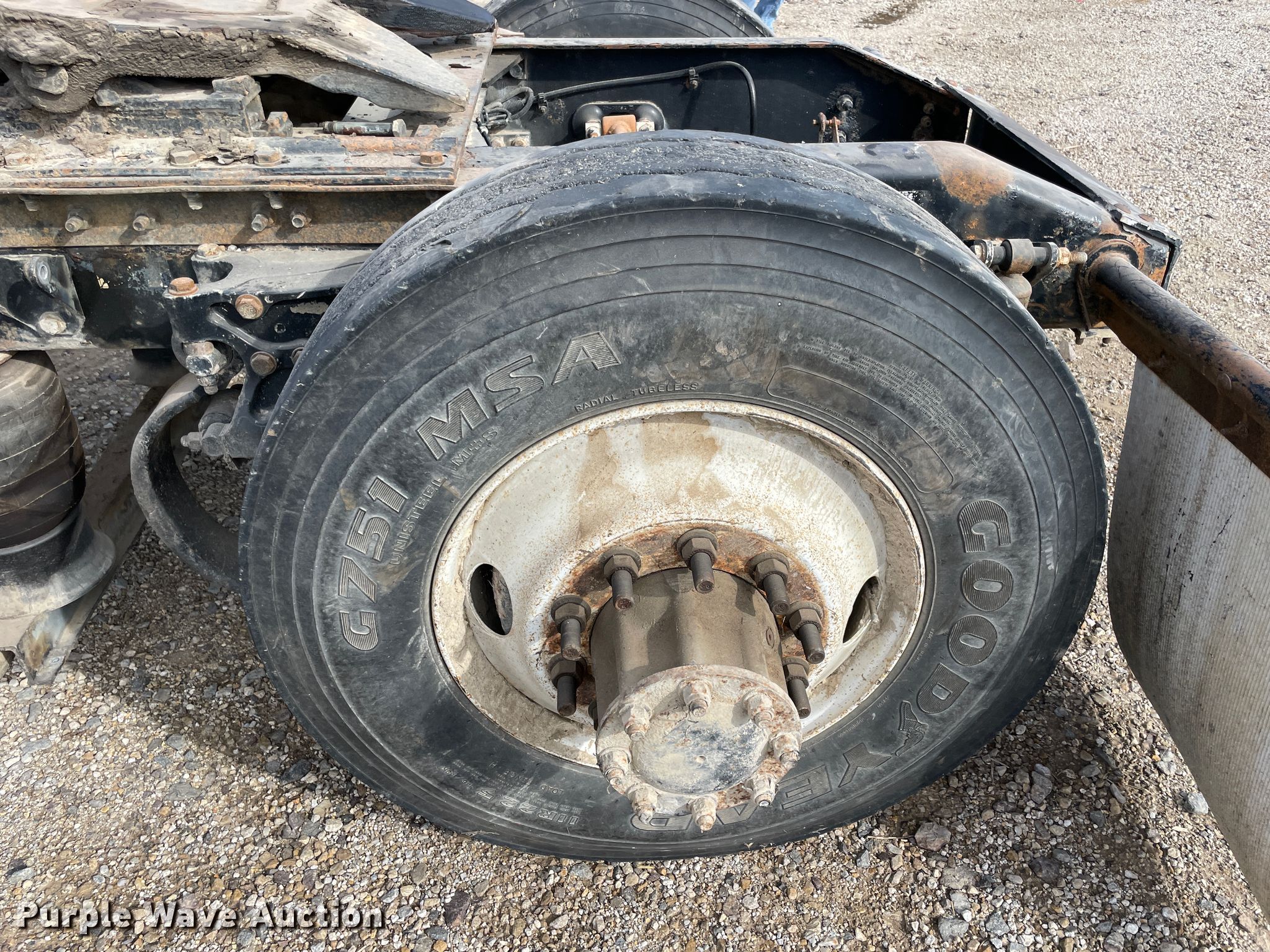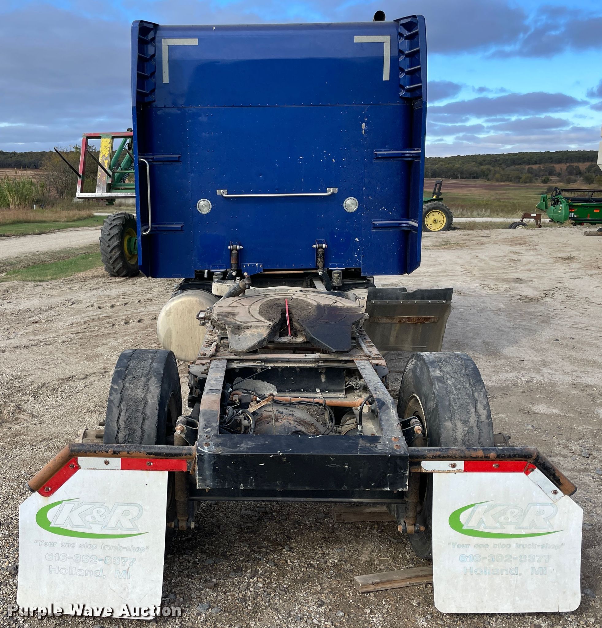 2013 Peterbilt 386 semi truck. Unknown miles on odometer, VIN: 1XPHD49X7DD185868. Engine No engine. Transmission No transmission. Chassis Axles: Single, Differential lock: Inter-axle, Suspension: Air, Brakes: Air, GVWR: 50,000 lbs FAWR: 12,000 lbs. Interior Heat, Power windows, Power locks, Cruise control, Air ride cab, Sleeper Sleeper length: 5', Beds: Single. Operational Fifth wheel type: Sliding, Fuel tank: Dual. Tires Front: 295/75R22.5, Rear: 11R22.5. Notes Axle removed, Parts may be missing, Non-operational unit. Kansas title. Title distribution may be delayed up to 14 days from verification of funds. KC Farms. 3473 2100 Rd. Fredonia, KS 66736