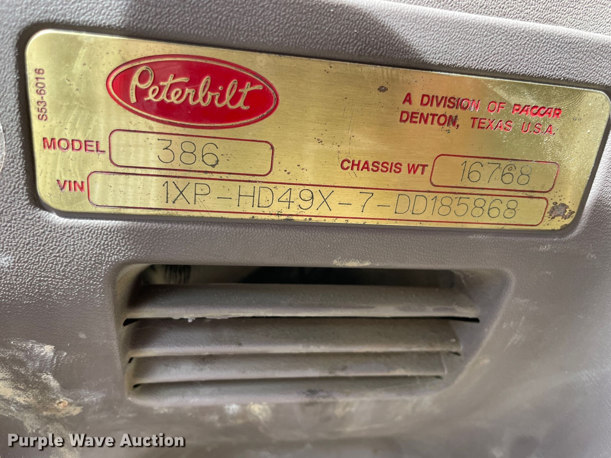 Purple Wave is selling a used Truck Tractor in Kansas. This item is a 2013 Peterbilt 386 semi truck with the following: Unknown miles on odometer, VIN: 1XPHD49X7DD185868