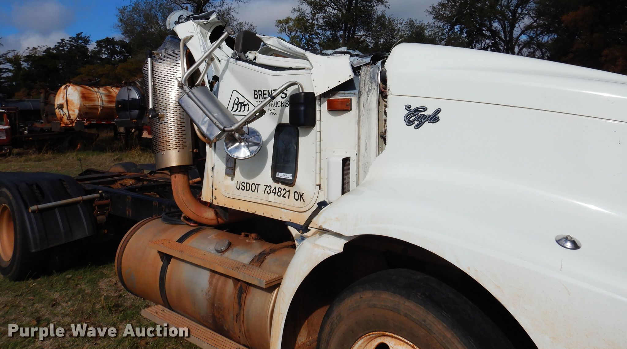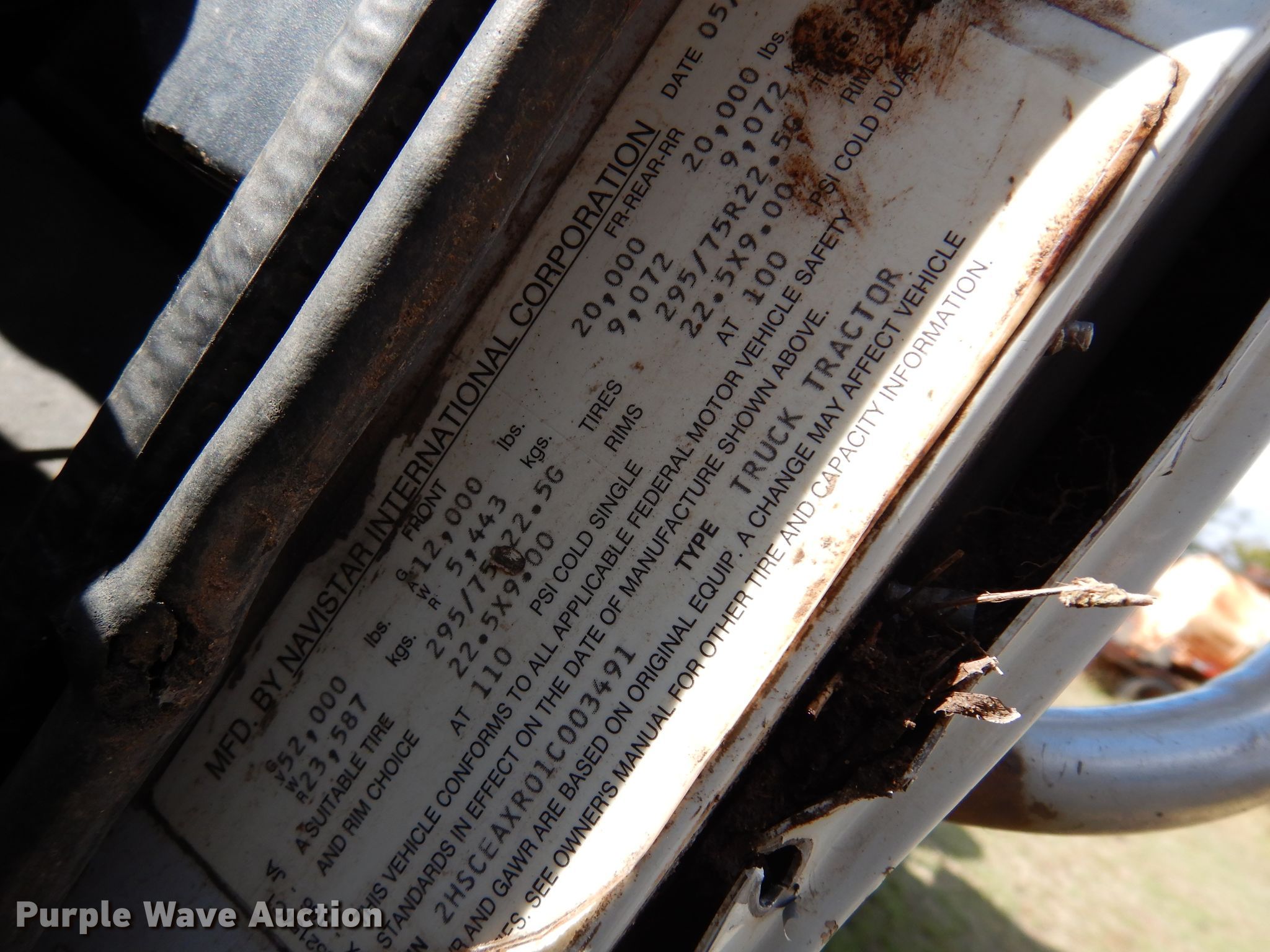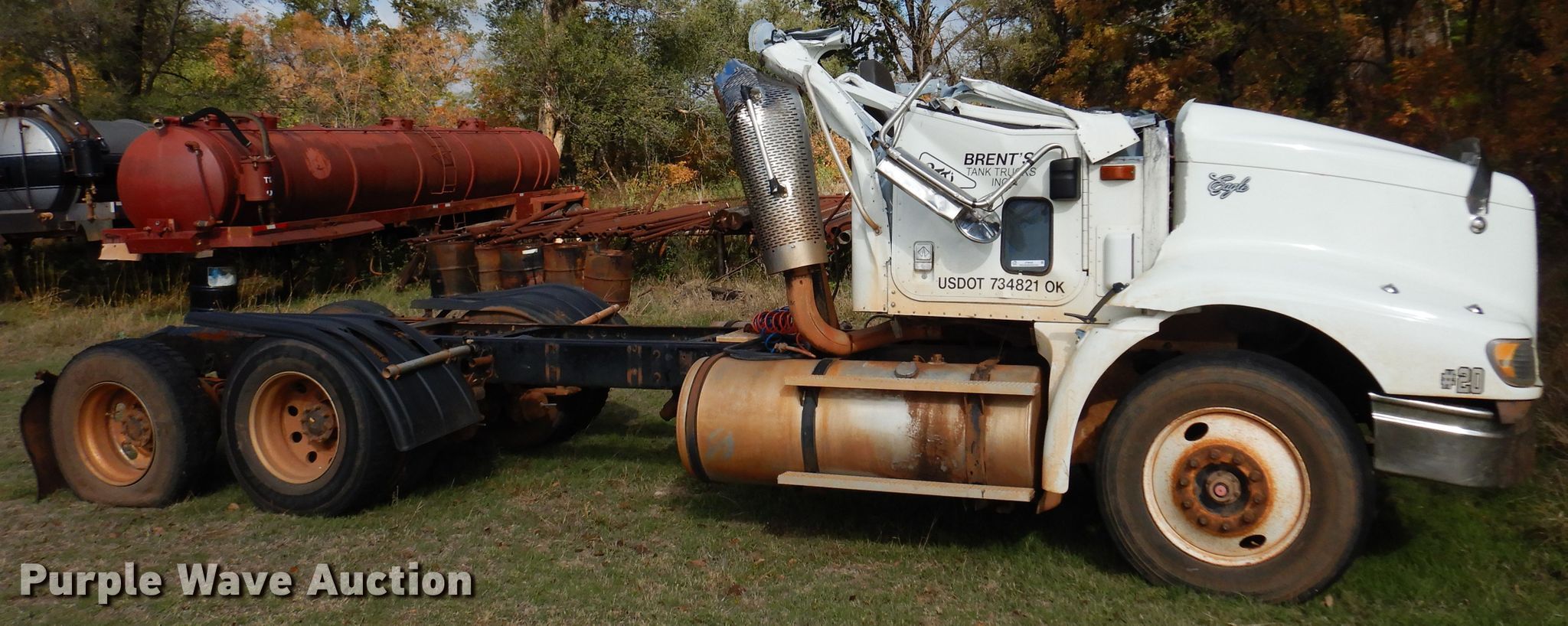 2001 International 9400i truck cab and chassis. Miles: Unknown, VIN: 2HSCEAXR01C003491. Engine Caterpillar C12, Displacement: 12.0L, Cylinders: 6, Fuel type: Diesel. Transmission Manual, Speed: 9. Chassis Axles: Tandem, Suspension: Air, Brakes: Air. Interior AC, Heat. Operational Fuel tank: Dual. Tires Front: 11R24.5, Rear: 11R22.5. Notes Parts missing, Wreck damage, Non-operational unit. Oklahoma title. Mileage has not been verified. Exempt will be written in the odometer disclosure on the title. Brents Tank Trucks Inc.. Ames, OK 73718