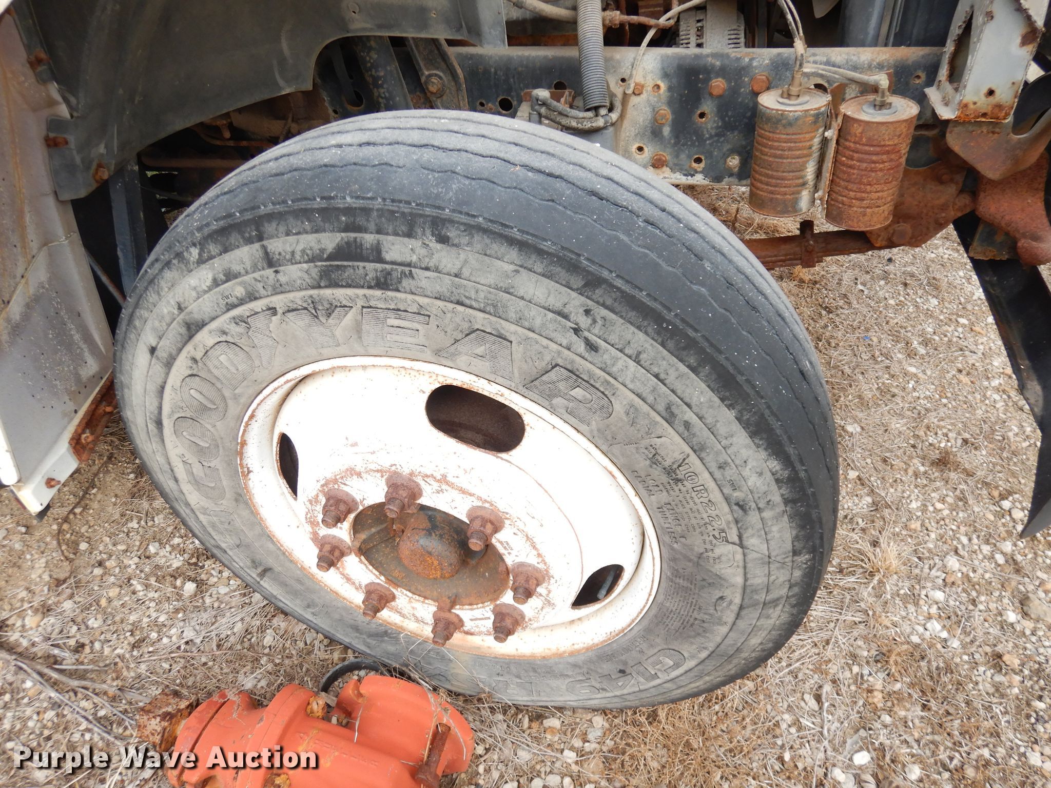 1998 Ford F700 dump flatbed truck. Miles: 214,410 on odometer, VIN: 1FDNF70J1WVA11036. Engine Displacement: 7.0L, Cylinders: 8, Fuel type: Gas. Transmission Manual, Speed: 5, plus 2. Chassis Axles: Single, Suspension: Spring, Brakes: Hydraulic, GVWR: 24,500 lbs, Wheelbase: 190". Interior Heat. Operational Dump flatbed 15' L x 8' W x 34" H. Tires Size: 10R22.5. Notes Decals will be removed prior to auction, Non-operational unit. Kansas title. City of Wamego. 430 Lincoln Ave. Wamego, KS 66547