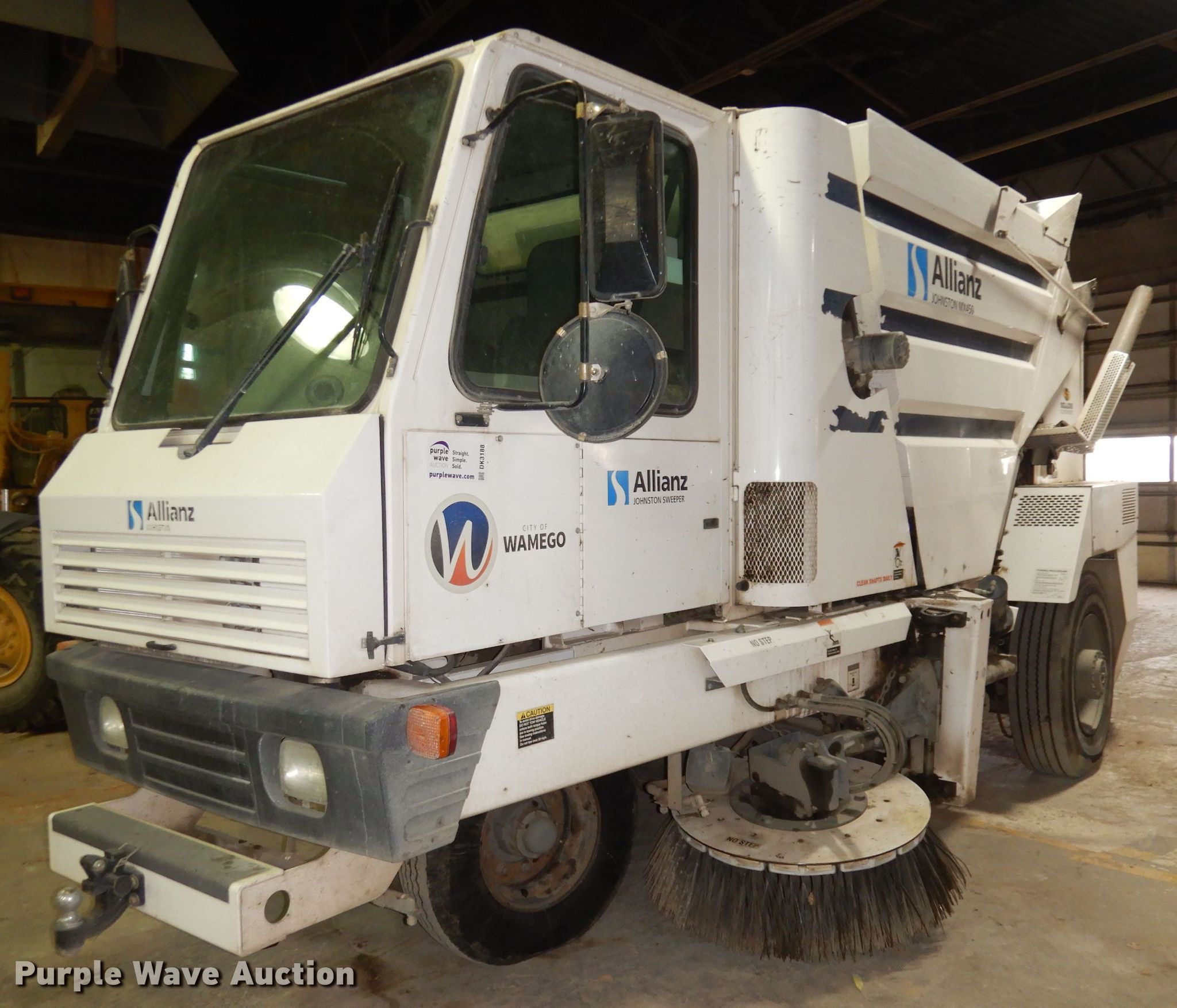 2009 Allianz Johnston MX450 street sweeper truck. Miles: 5,547 on odometer, Hours: 1,960 on meter, VIN: 1J9VM3H659C172108. Engine Fuel type: Diesel. Transmission Automatic. Chassis Suspension: Spring, Brakes: Hydraulic. Operators station Enclosed cab, AC, Heat. Operational Broom Width: 60", Water spray system Capacity: 250 gallons, Sweeper bed Sweeper bed type: Conveyor, Left gutter broom Diameter: 34", Right gutter broom Diameter: 34".. Tires Front: 10R17.5, Rear: 11R22.5, Brand: Michelin. Notes Decals will be removed prior to auction. Kansas title. City of Wamego. 430 Lincoln Ave. Wamego, KS 66547