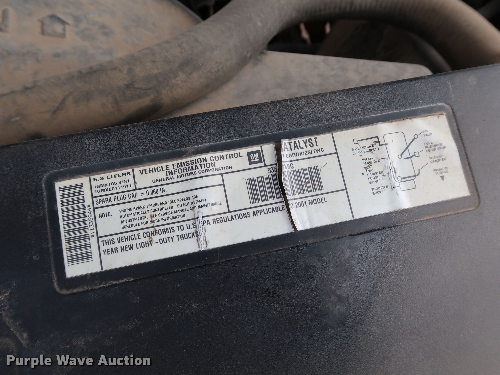 2001 Chevrolet Silverado 1500 Ext. Cab pickup truck. Miles: 172,749 on odometer, VIN: 2GCEK19T311335844. Engine Displacement: 5.3L V8 OHV 16V, Cylinders: 8, Fuel type: Gas, Four wheel drive. Interior AC, Heat, Power windows, Power locks, Cruise control. Tires Size: LT225/75R16. Oklahoma title. City of Davis. Webber St & S Whiteoak St. Davis, OK 73030