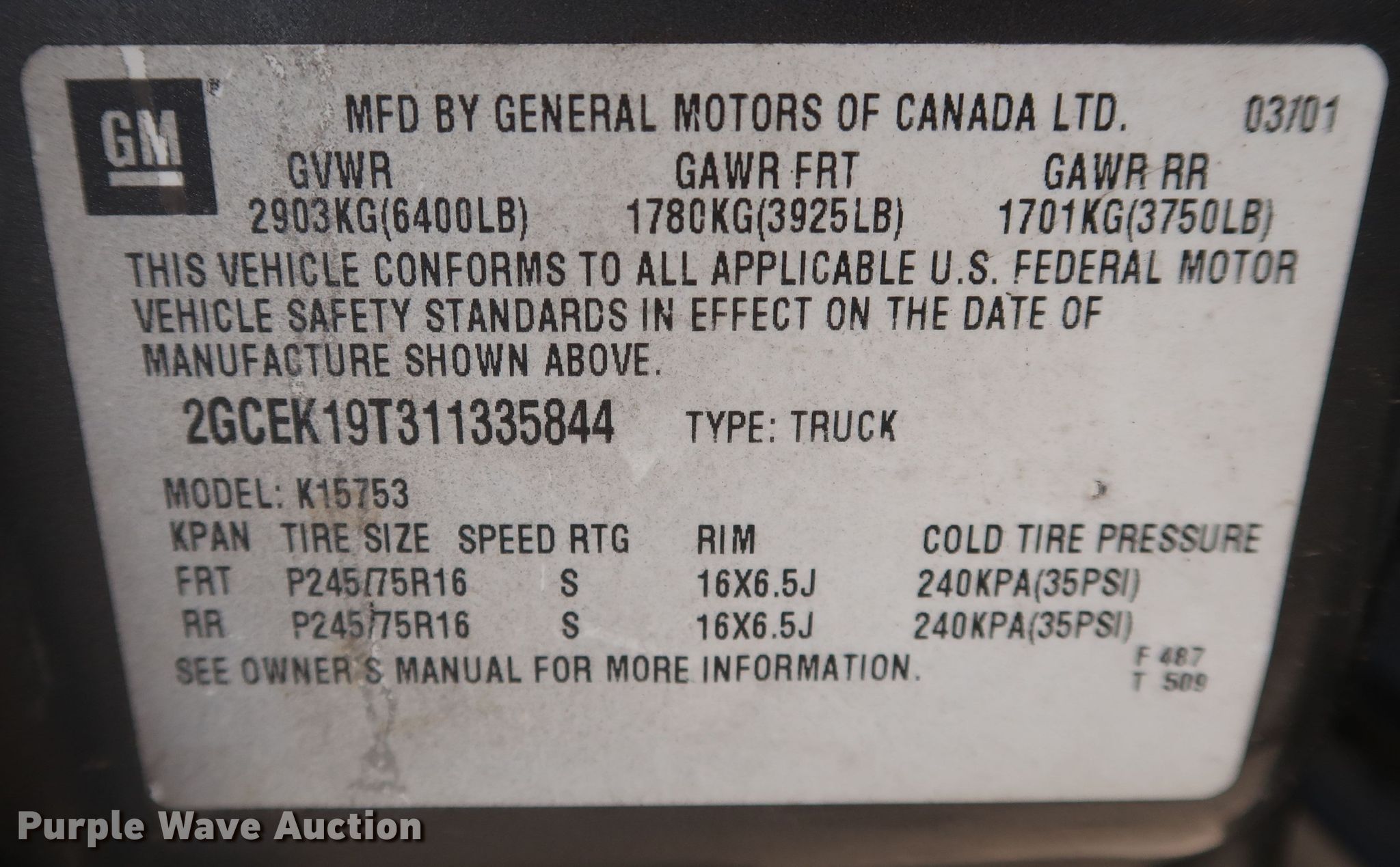 Purple Wave is selling a used 1/2 Ton Pickup or Van in Oklahoma. This item is a 2001 Chevrolet Silverado 1500 Ext. Cab pickup truck with the following: Miles: 172,749 on odometer, VIN: 2GCEK19T311335844