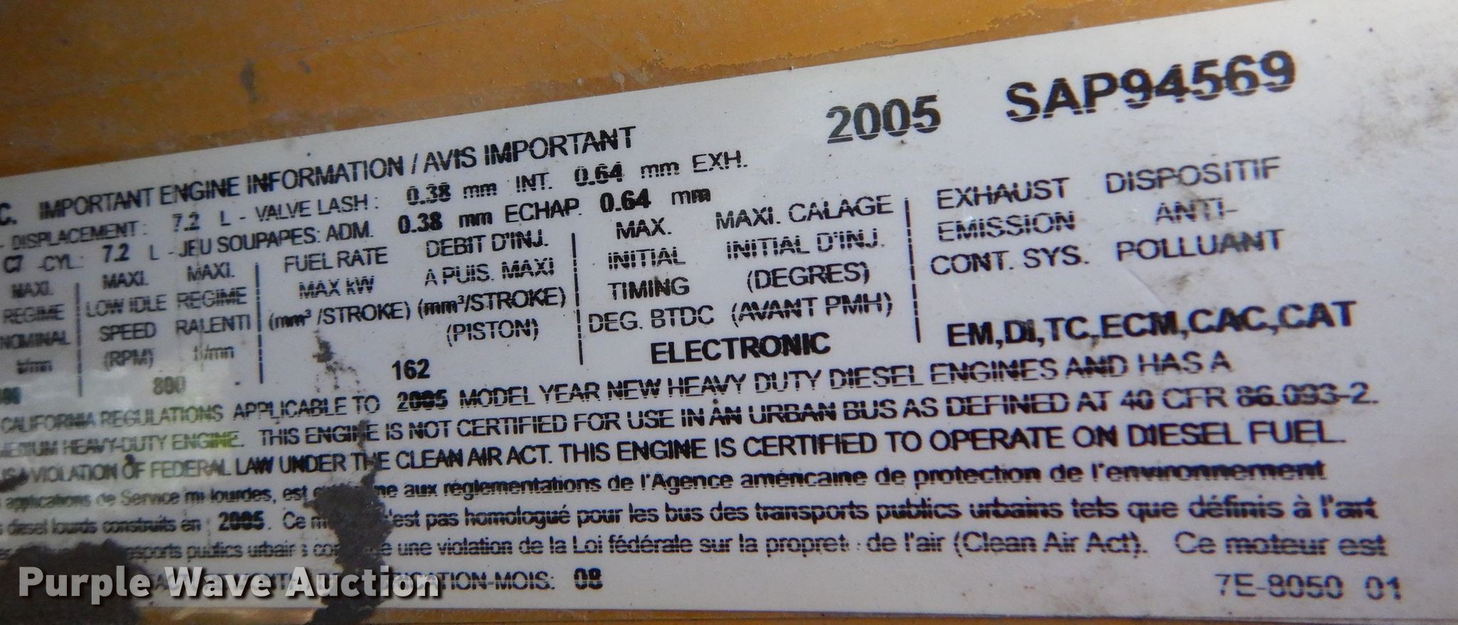 2006 Blue Bird Vision school bus. Miles: 99,608 on odometer, Hours: 2,855 on meter, VIN: 1BAKDCKH86F236476. Engine Caterpillar C7, Serial: SAP94569, Displacement: 7.2L, Cylinders: 6, Fuel type: Diesel. Transmission Automatic. Chassis Axles: Single, Suspension: Spring, Brakes: Hydraulic, GVWR: 29,000 lbs. Interior Heat, Cruise control, Passengers: 60. Tires Size: 11R22.5. Notes Engine issues, Non-operational unit. Kansas title. USD 292 Wheatland. 2920 K-23. Grainfield, KS 67737