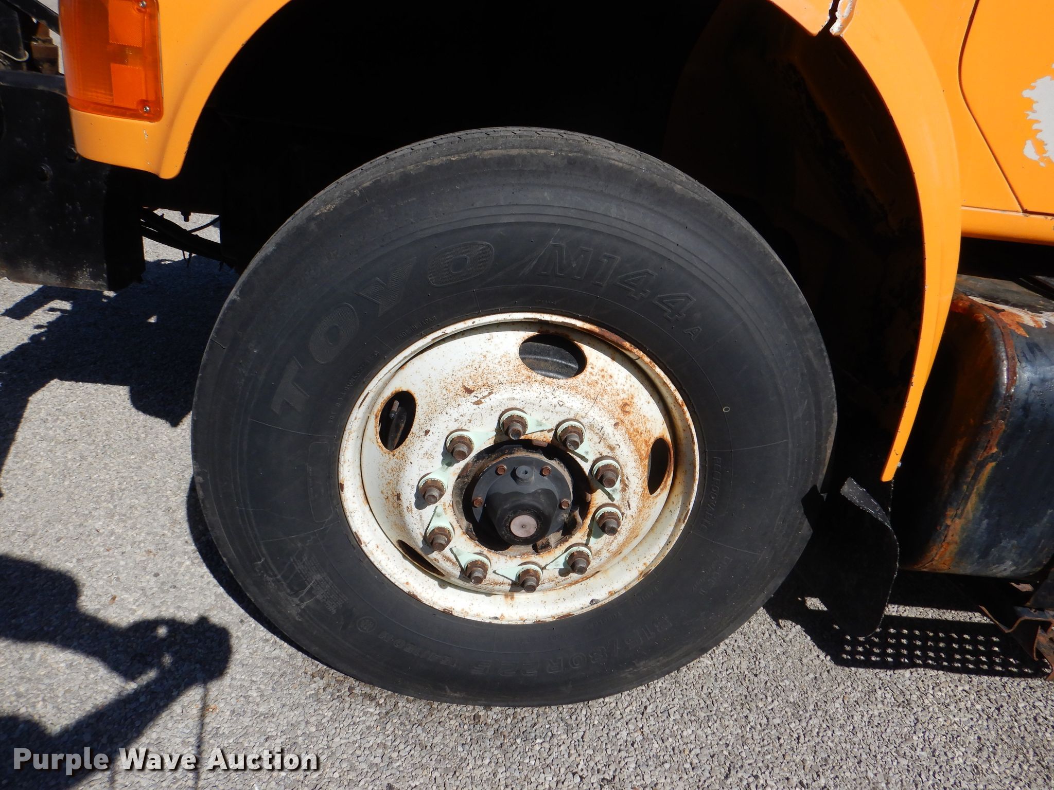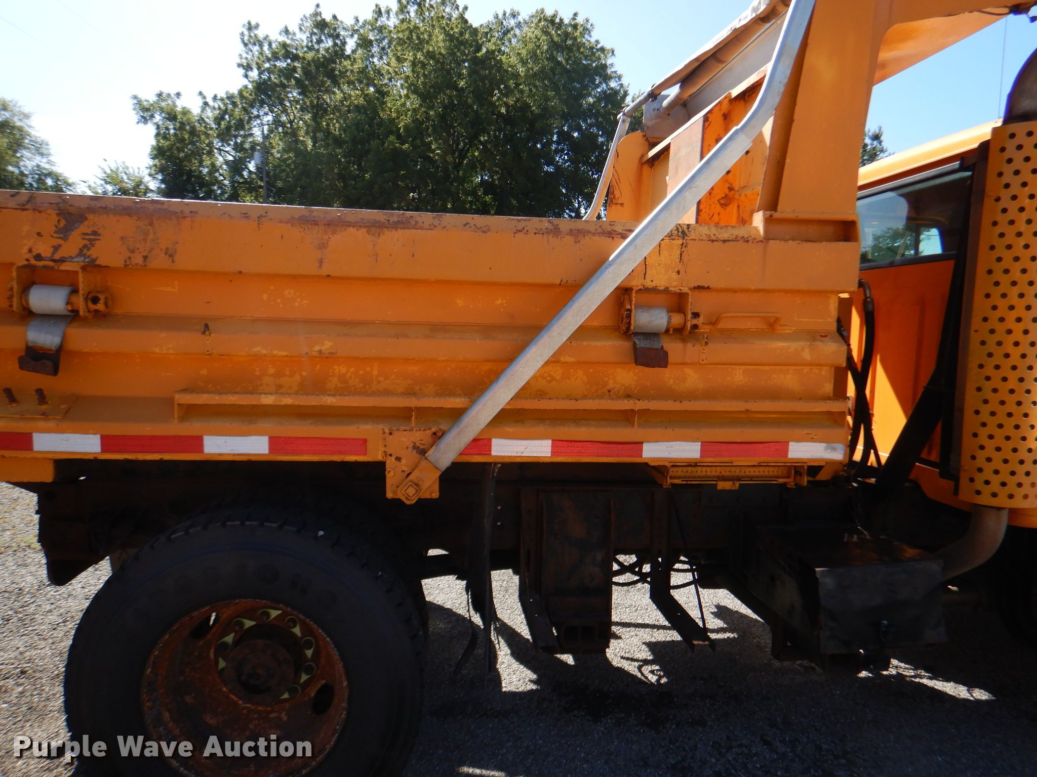 2002 International 4900 dump truck. 192,431 miles on odometer, Engine hours: 12,010, MODOT ID: 6534. Engine Cylinders: 6, Fuel type: Diesel. Transmission Automatic. Chassis Axles: Single, Suspension: Spring, Brakes: Air, PTO. Interior AC, Heat. Operational Dump bed 10' L x 8' W, Side height: 28", Bed type: Steel, Roll tarp, Ram: Single , End gate: Air operated, Plow Width: 8". Tires Front: 315/80R22.5, Rear: 11R22.5. Notes Unknown operating condition. Missouri title. 1HTSDAAR22H523902. Missouri Department of Transportation-Northwest District. 3602 N Belt Hwy. Saint Joseph, MO 64506