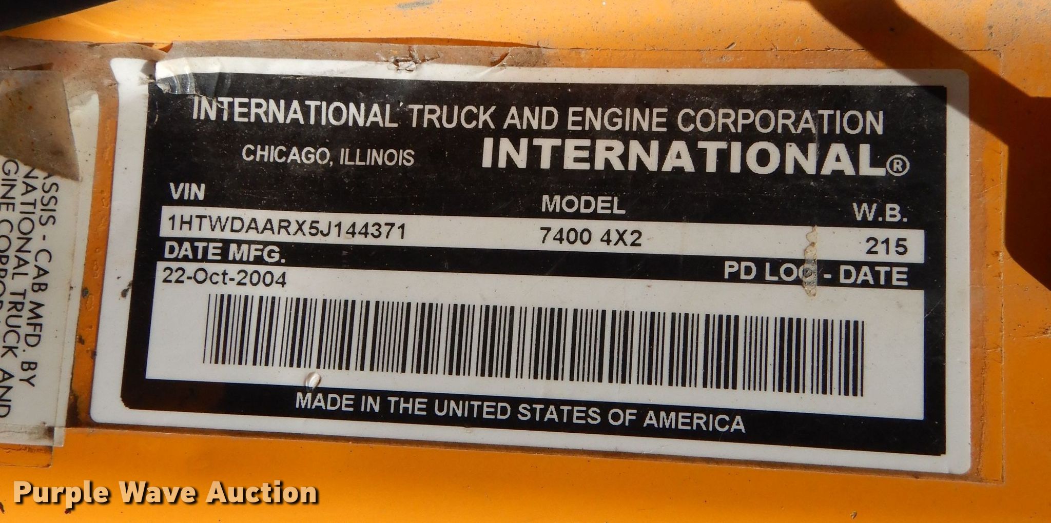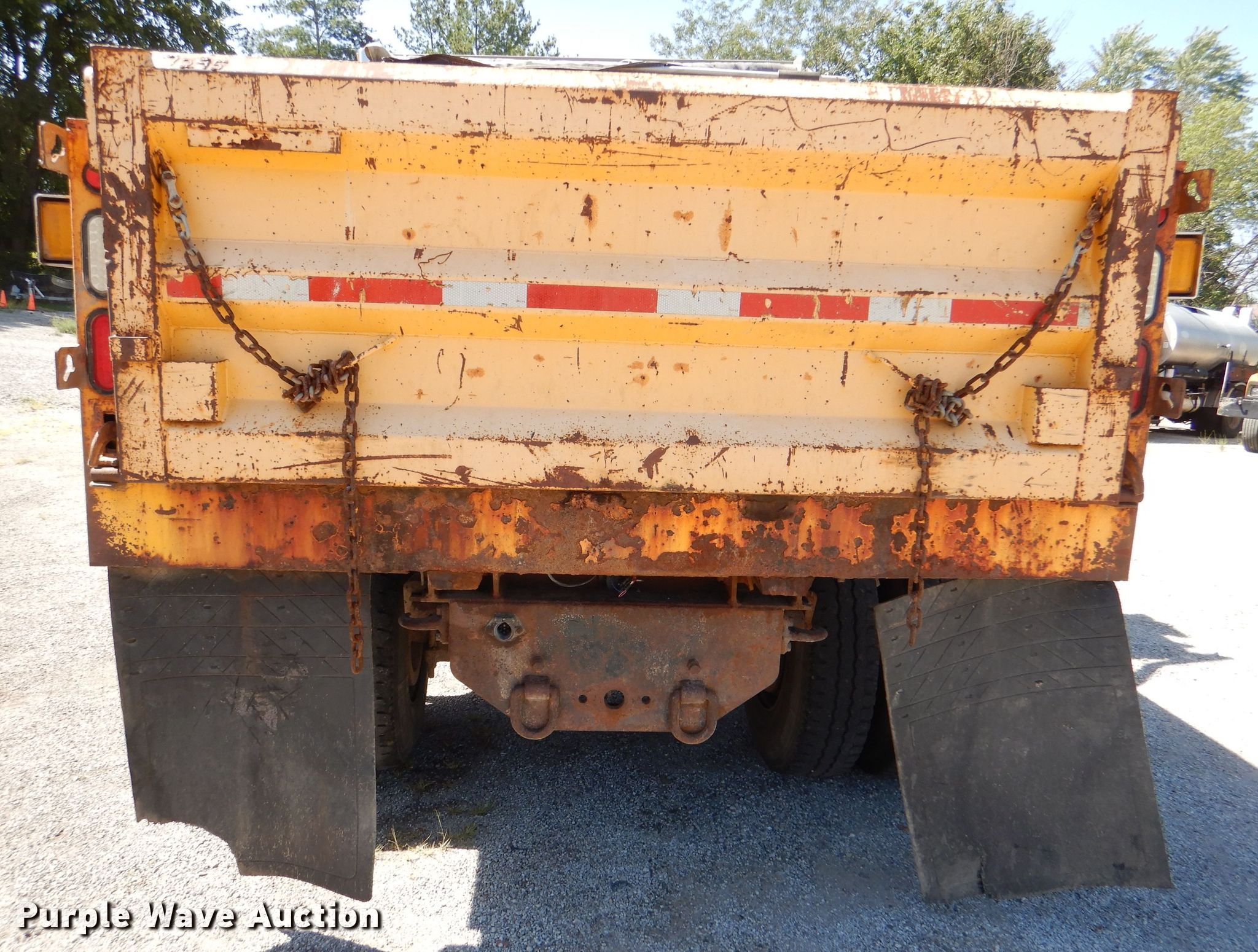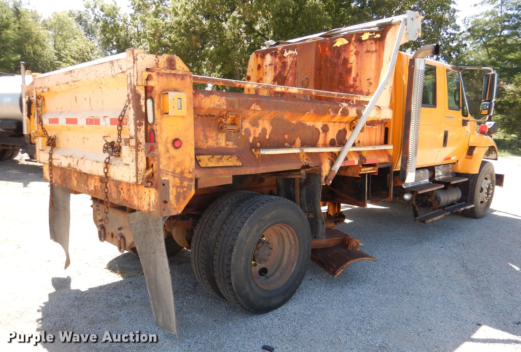 2005 International WorkStar 7400 Crew Cab dump truck. 212,306 miles on odometer, Engine hours: 12,798, MODOT ID: 7295. Engine International, Cylinders: 6, Fuel type: Diesel. Transmission Automatic. Chassis Axles: Single, Suspension: Spring, Brakes: Air, Front mount PTO. Interior AC, Heat, Power windows, Cruise control. Operational Dump bed 10' L x 8' W, Side height: 24", Bed type: Steel, Roll tarp, Ram: Single , End gate: Manual, Belly plow Width: 10'. Tires Front: 315/80R22.5, Rear: 11R22.5. Notes Dash warning indicator: ABS, Non-operational AC. Missouri title. 1HTWDAARX5J144371. Missouri Department of Transportation-Northwest District. 3602 N Belt Hwy. Saint Joseph, MO 64506