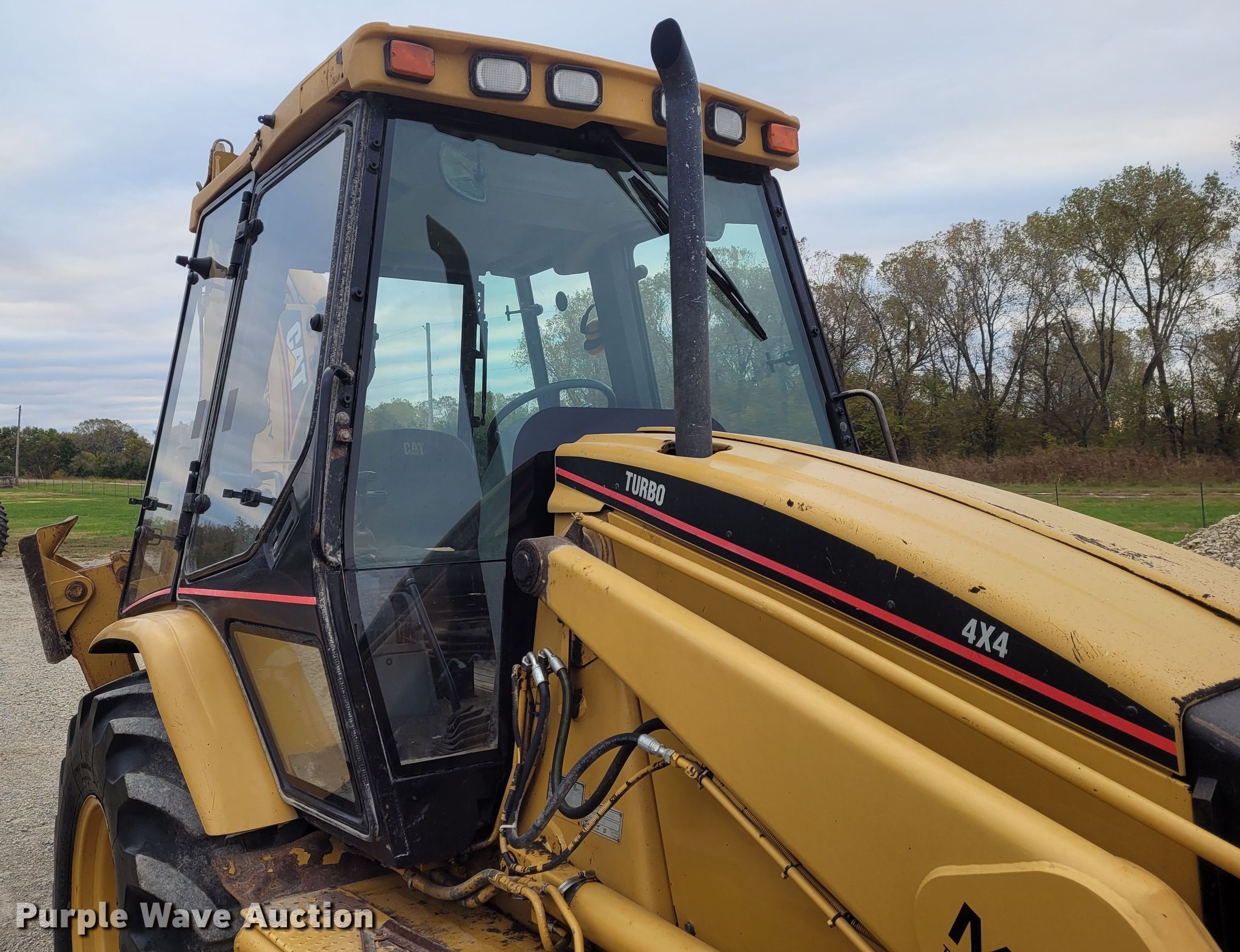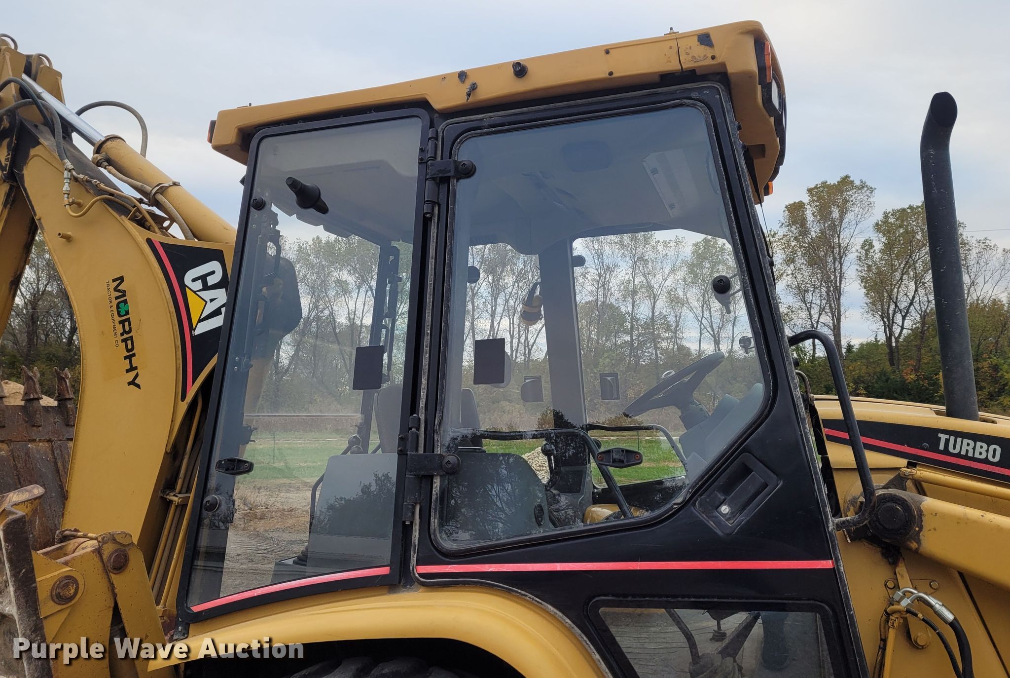 1998 Caterpillar 416C backhoe. Hours: 2,524 on meter, Serial: 5YN05546. Engine Fuel type: Diesel. Transmission Shuttle shift, 4F - 4R. Chassis Four wheel drive. Operators station Enclosed cab, AC, Heat, Backhoe controls: Wobble stick / two stick. Operational Loader Bucket Four-in-one, Width: 88", Backhoe Extendable stick, Width: 30", Teeth: 5. Tires Front: 12.5-18, Rear: 19.5-24. Augusta Township. Augusta, KS 67010