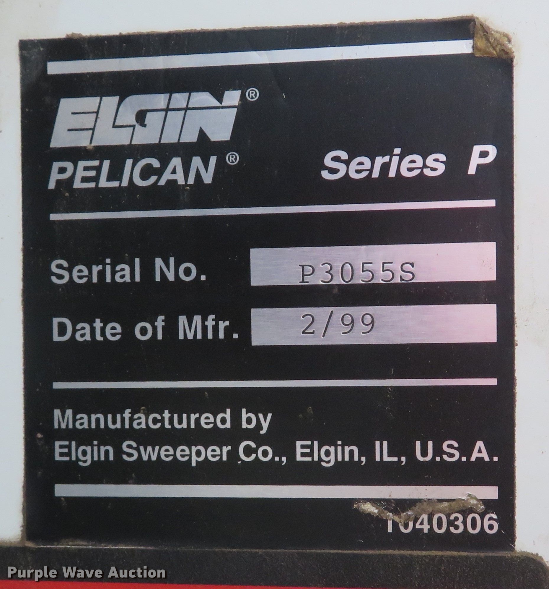 Purple Wave is selling a used Sweeper in Illinois. This item is a 1999 Elgin Pelican Series P street sweeper with the following: Miles: 23,675 on odometer, Hours: 5,536 on meter, Serial: P3055S