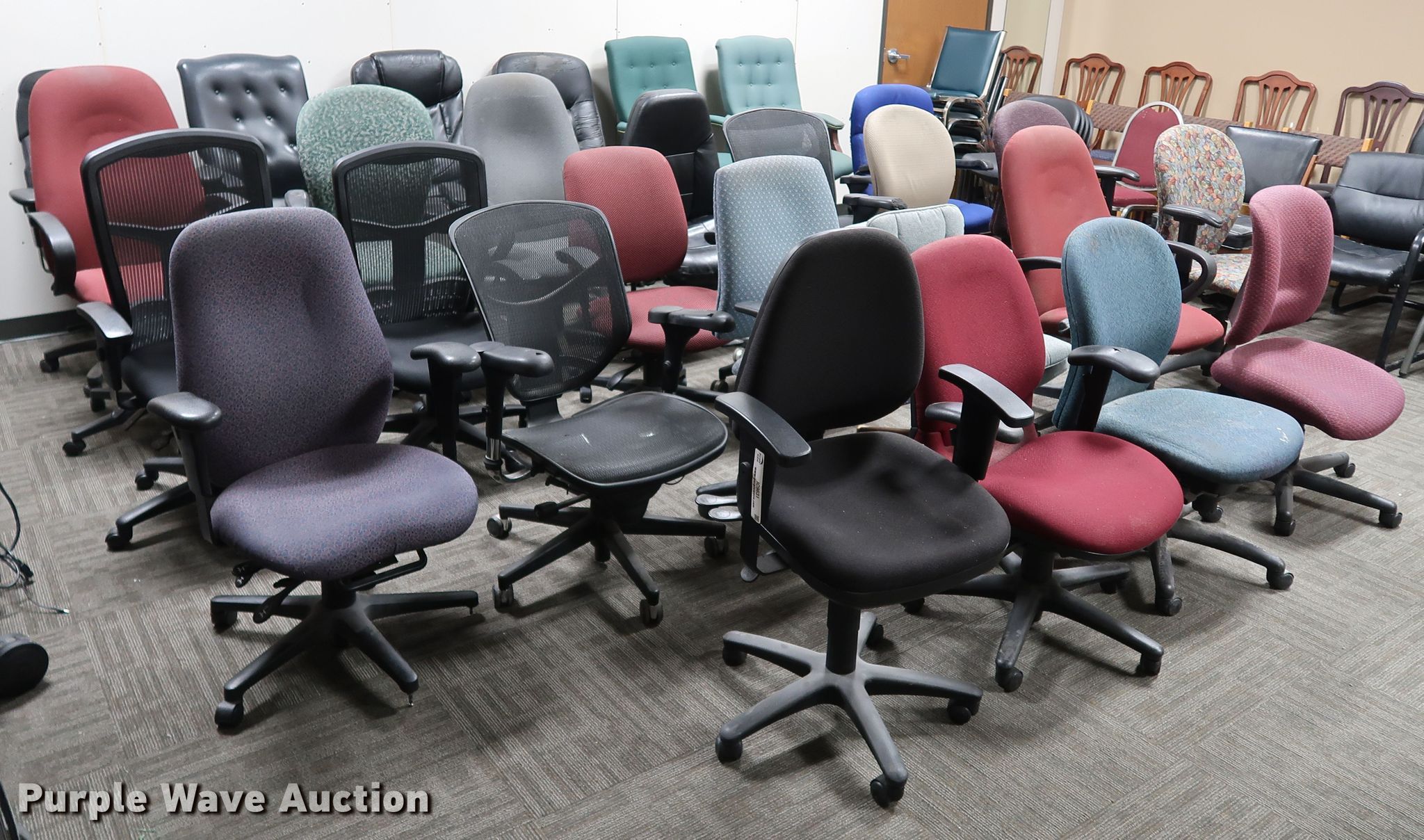 Purple Wave is selling a used Furniture in Oklahoma. This item is a (28) chairs with the following: (28) chairs. Oklahoma County. 320 Robert S Kerr. Oklahoma City, OK 73102