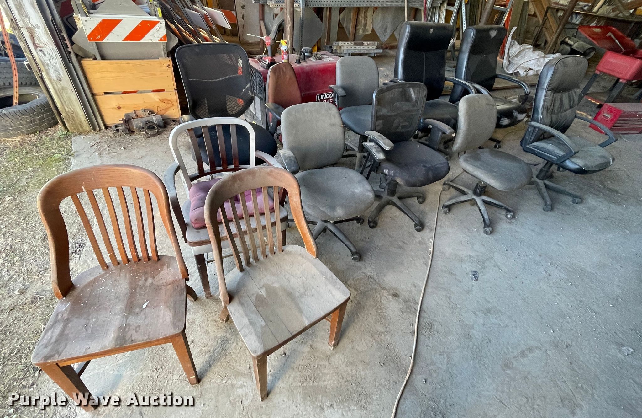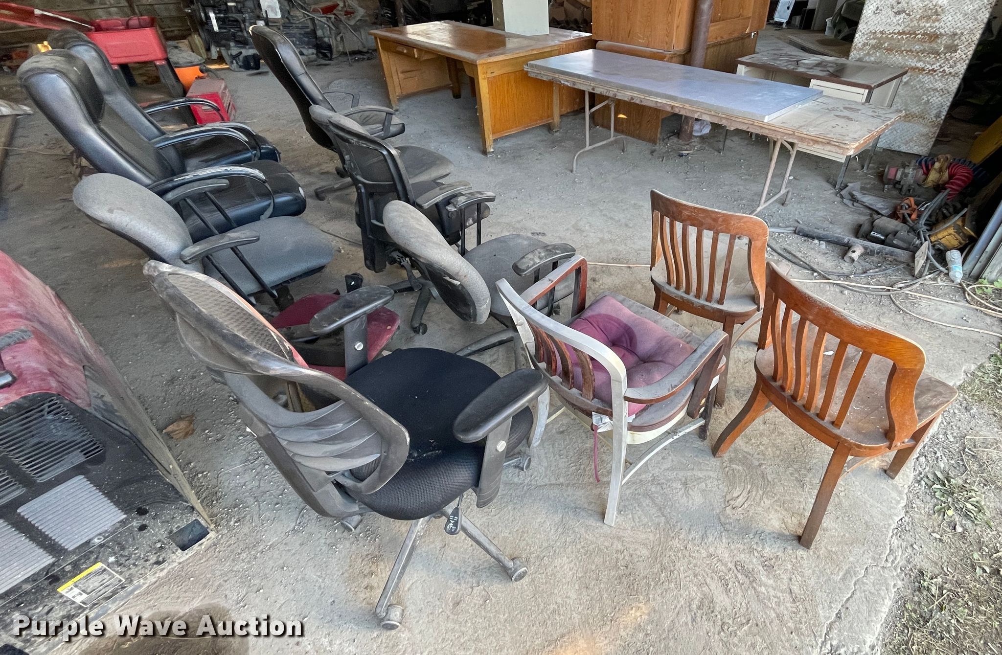 Furniture. (12) chairs, 8'L x 30"W table, (5) desks. Nowata County. 1300 S Maple St. Nowata, OK 74048
