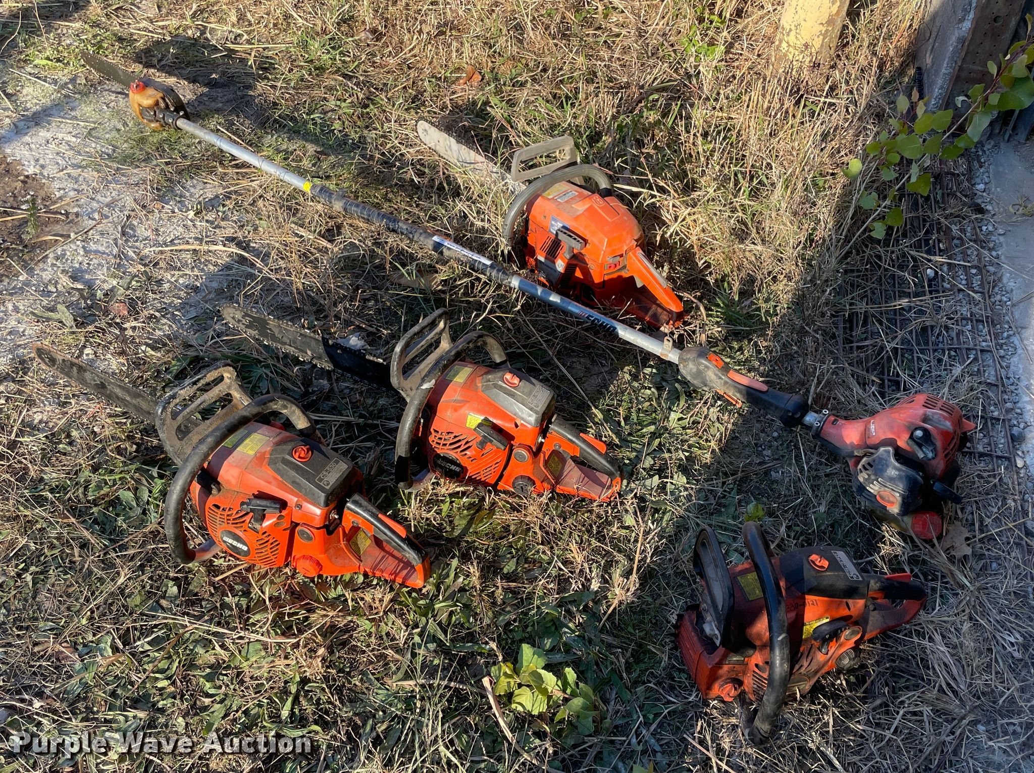 Purple Wave is selling a used Lawn and Garden in Oklahoma. This item is a (4) chainsaws with the following: Echo CS-530, 18" bar, Echo CS-400, 18" bar, Echo CS-370, 20" bar, Echo PPF-225 pole saw, 12" bar, 7'9"L reach, 3' extension