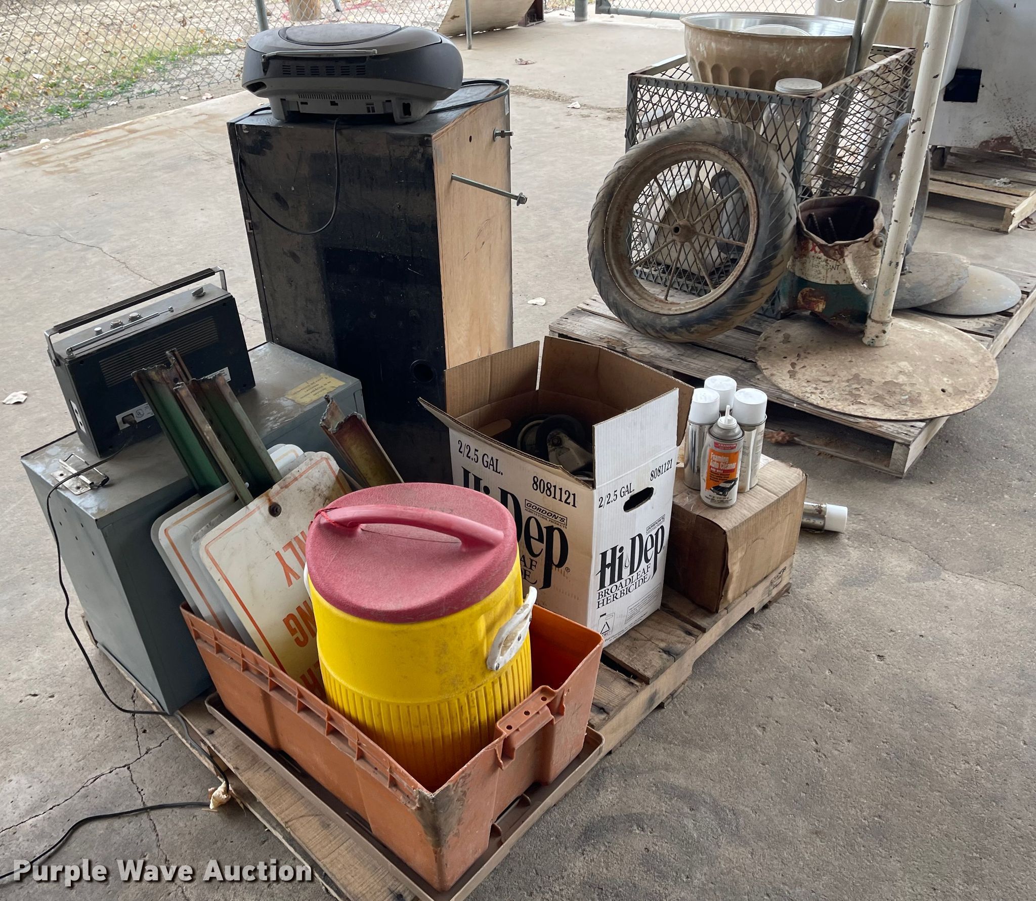 Purple Wave is selling a used Tools in Kansas. This item is a Tools with the following: Cabinets, Radios, Street signs, Water jug, Paint, Casters