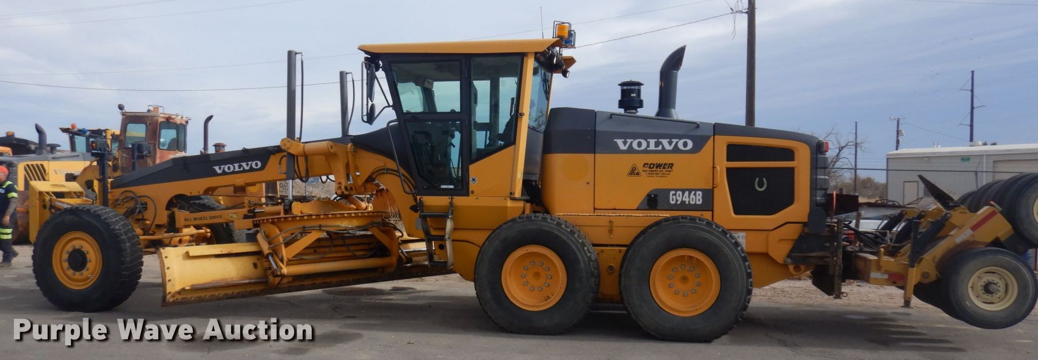 Purple Wave is selling a used Motor Grader in Colorado. This item is a 2014 Volvo G946B motor grader with the following: Hours: 7,980 on meter, Grader Hours: 7,970 on meter, Serial: VCEG946BK0S578125