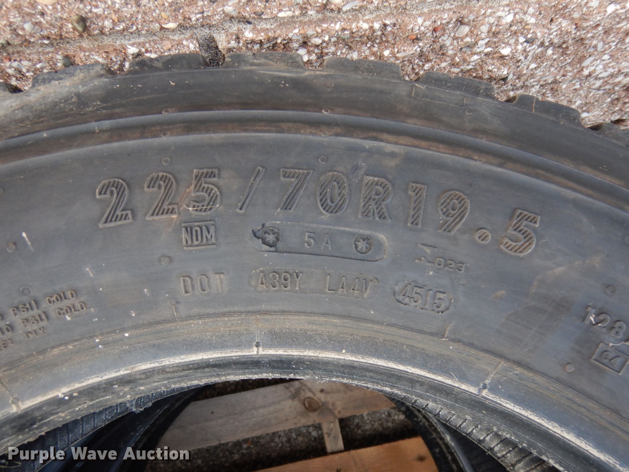 Purple Wave is selling a used Fleet Tires in Iowa. This item is a (9) tires with the following: (6) Continental HDR 225/70R19.5, General American 235/85R16, (2) Uniroyal 9.5-15