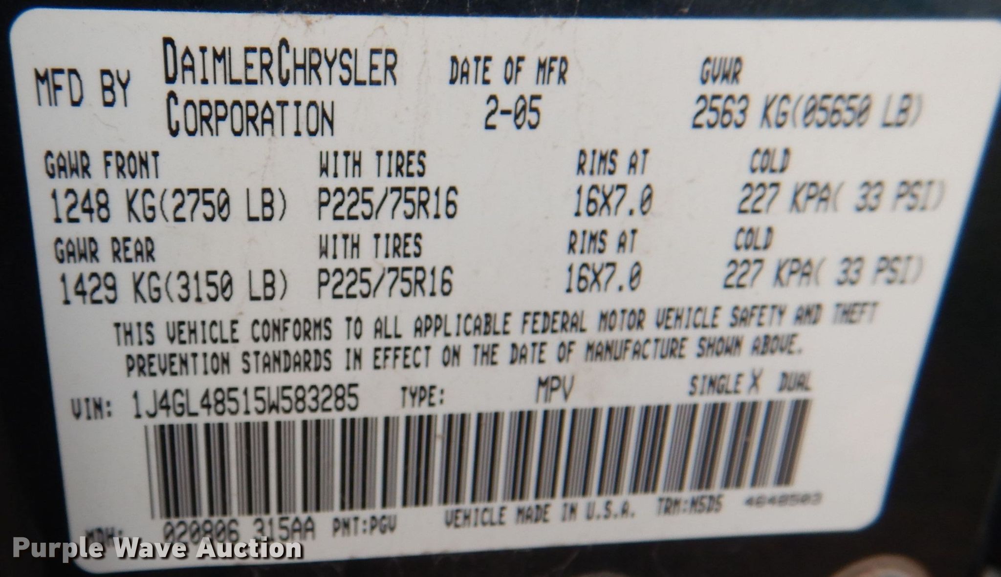 - VIN: 1J4GL48515W583285