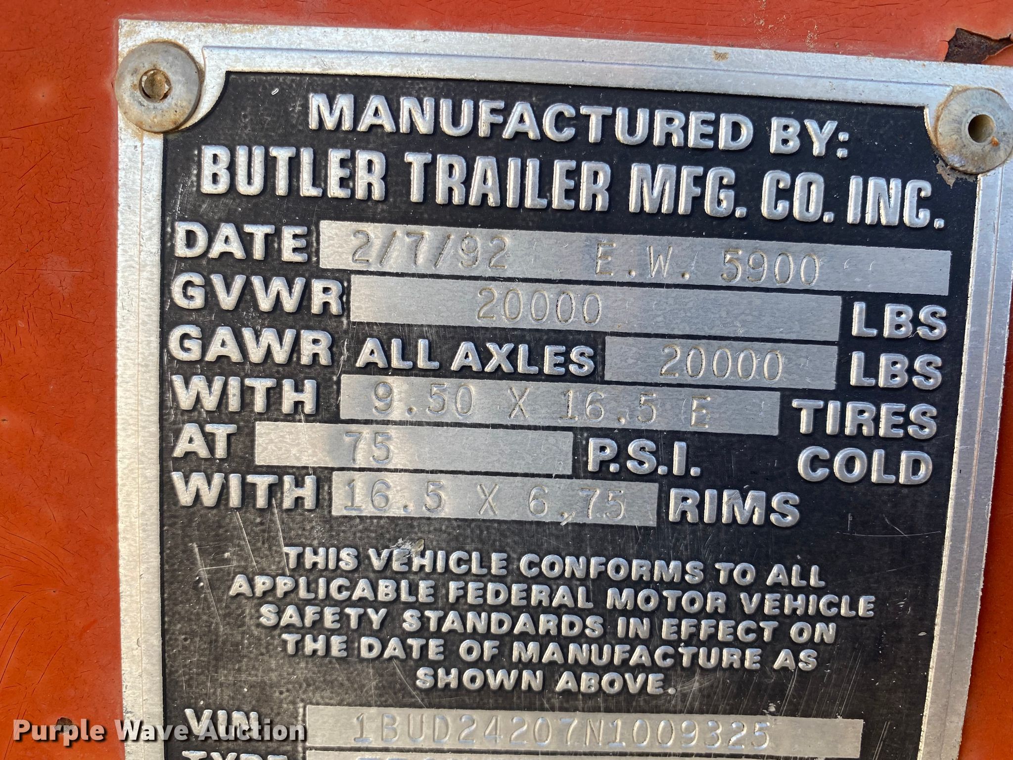 Purple Wave is selling a used Equip. Trailer in Kansas. This item is a 1992 Butler B-2024-A equipment trailer with the following: VIN: 1BUD24207N1009325