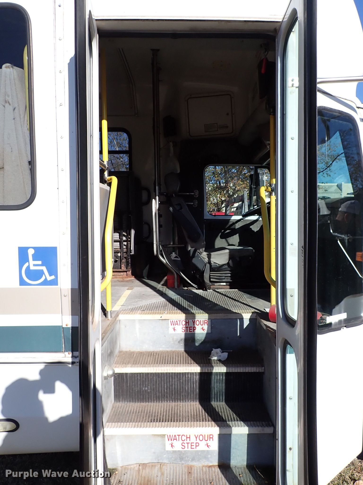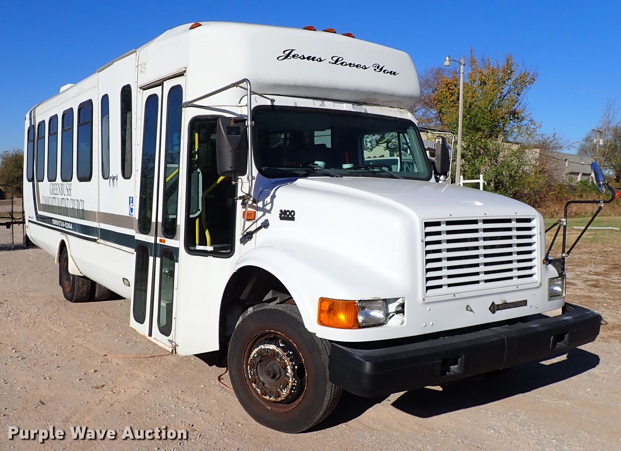 This 2002 International 3400 shuttle bus will sell to the highest bidder regardless of price.