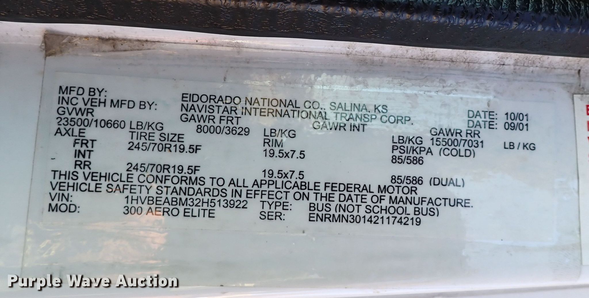 Purple Wave is selling a used Bus in Oklahoma. This item is a 2002 International 3400 shuttle bus with the following: Miles: 277,918 on odometer, Hours: 18,725 on meter, VIN: 1HVBEABM32H513922