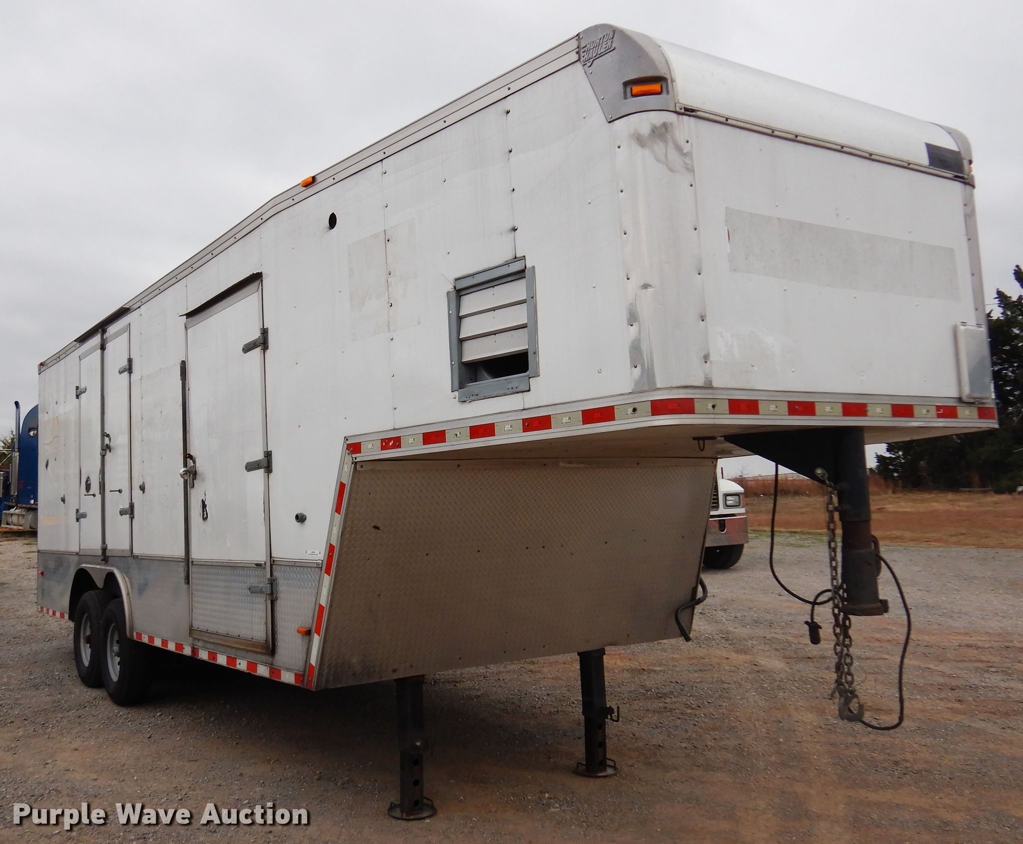 2011 Horton Van's Inc enclosed cargo trailer. VIN: 5E2G12020B1042388. Dimensions Overall: 28' L x 98" W, Body: 28' L x 98" W. Operational Deck type: Aluminum. Chassis Hitch: Gooseneck, Landing gear: Dual, Suspension: Walking beam, Brakes: Electric, Axles: Tandem. Tires Steel wheels, Size: 235/85R16. Oklahoma title. Womack Diesel LLC. Guthrie, OK 73044