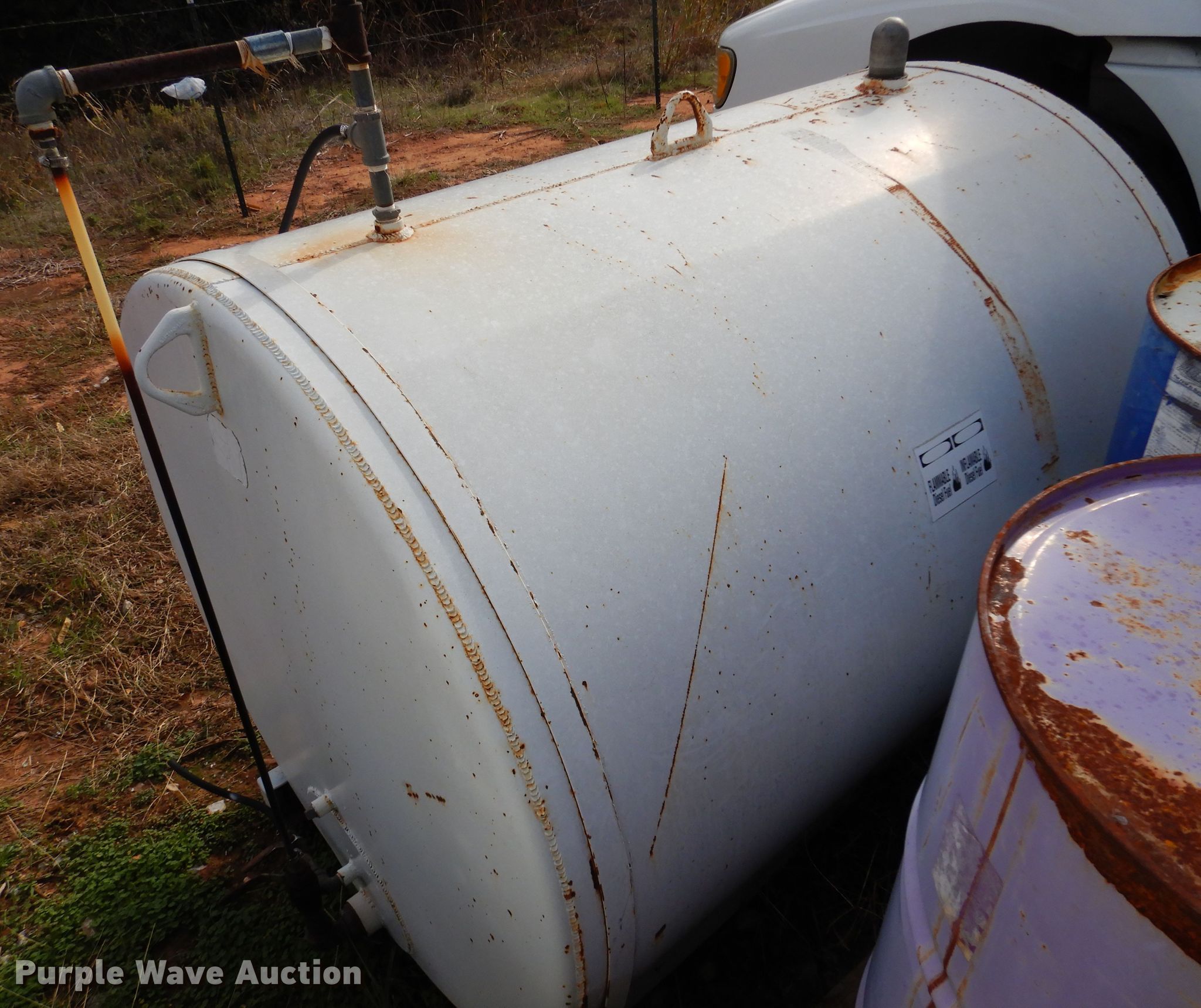 Purple Wave is selling a used Fuel and Lube in Oklahoma. This item is a Fuel tank with the following: 58"L x 45" diameter, Approx. 400 gallon capacity, Previously used for diesel