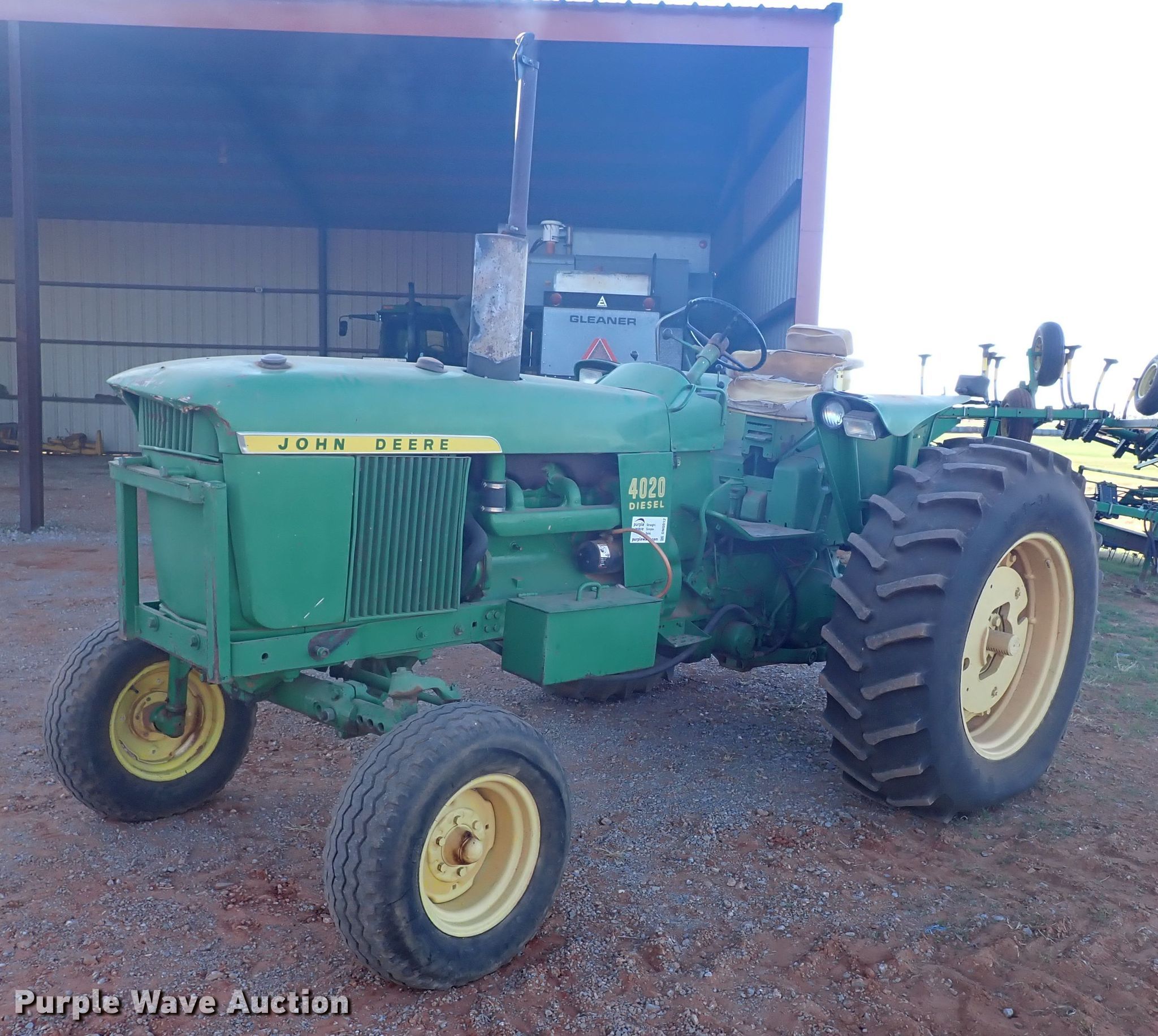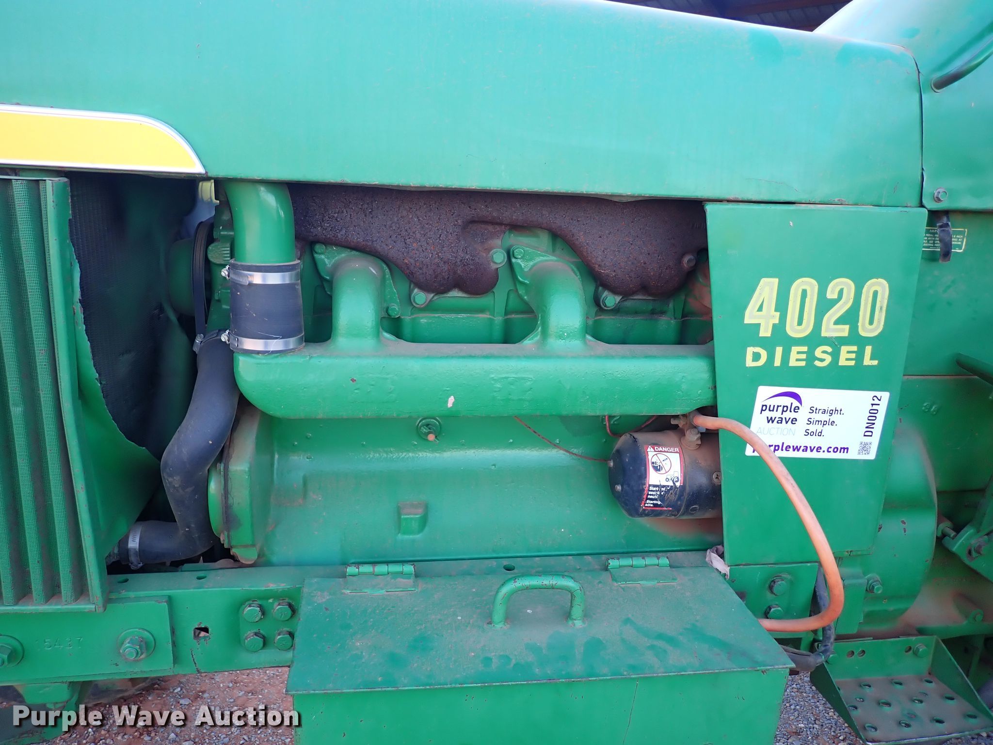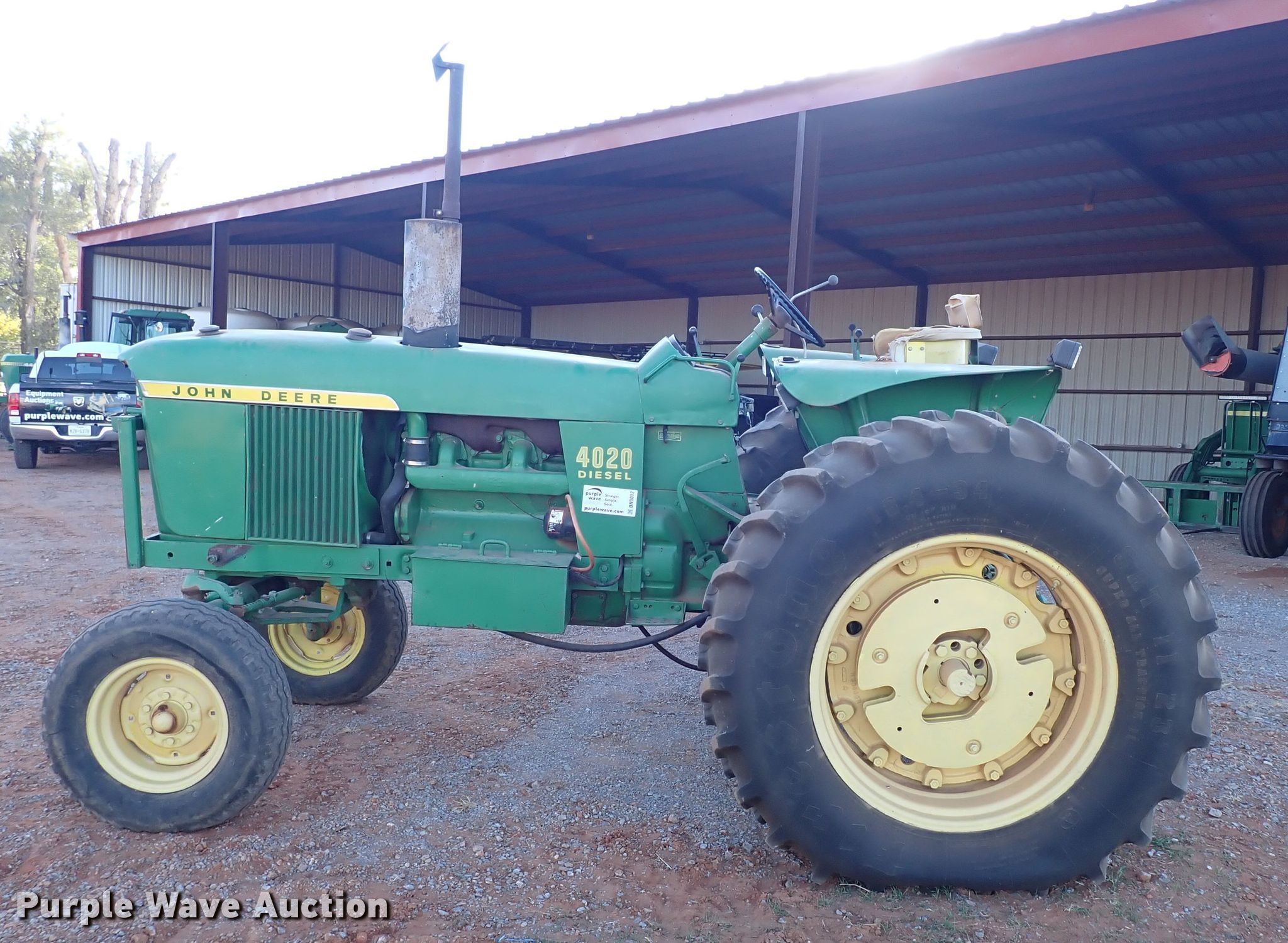 Purple Wave is selling a used Tractor in Oklahoma. This item is a 1969 John Deere 4020 tractor with the following: Hours: 496 on meter, Serial: T213R 215632R