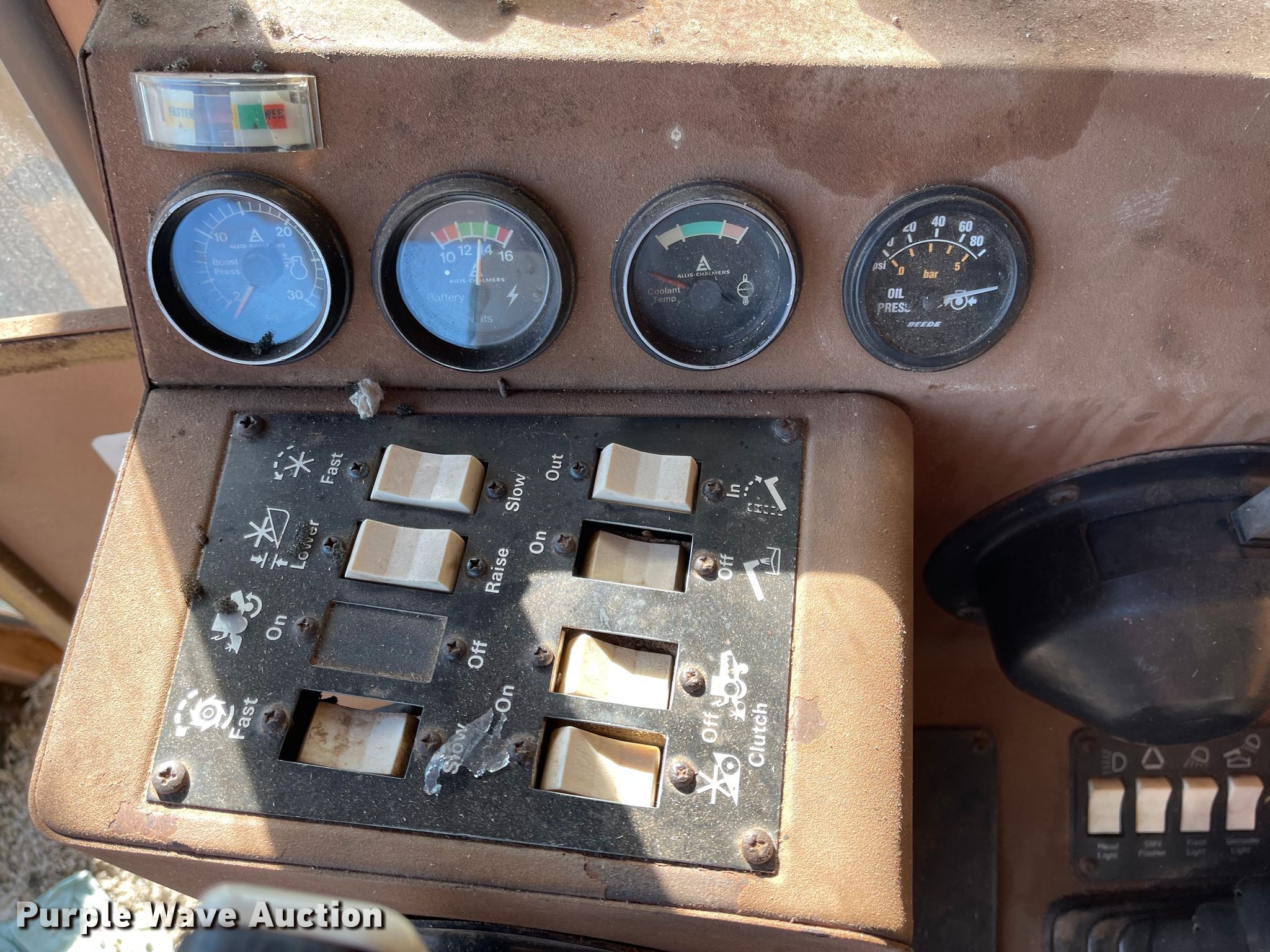 1982 Gleaner N6 combine. Engine hours: 1,549 on meter, Separator hours: 1,662 on meter, Serial: N6G05294H. Engine Allis Chalmers, Cylinders: 6, Fuel type: Diesel. Transmission Hydrostatic. Interior AC, Heat. Operational Feederhouse: Variable speed, Chaff spreader, Straw chopper, Unloading auger length: 13'. Tires Front: 24.5-32, Rear: 11.25-24. Notes Dead battery, Alternator needs replaced, Unknown operating condition. 11487 N 2110 Rd. Foss, OK 73647
