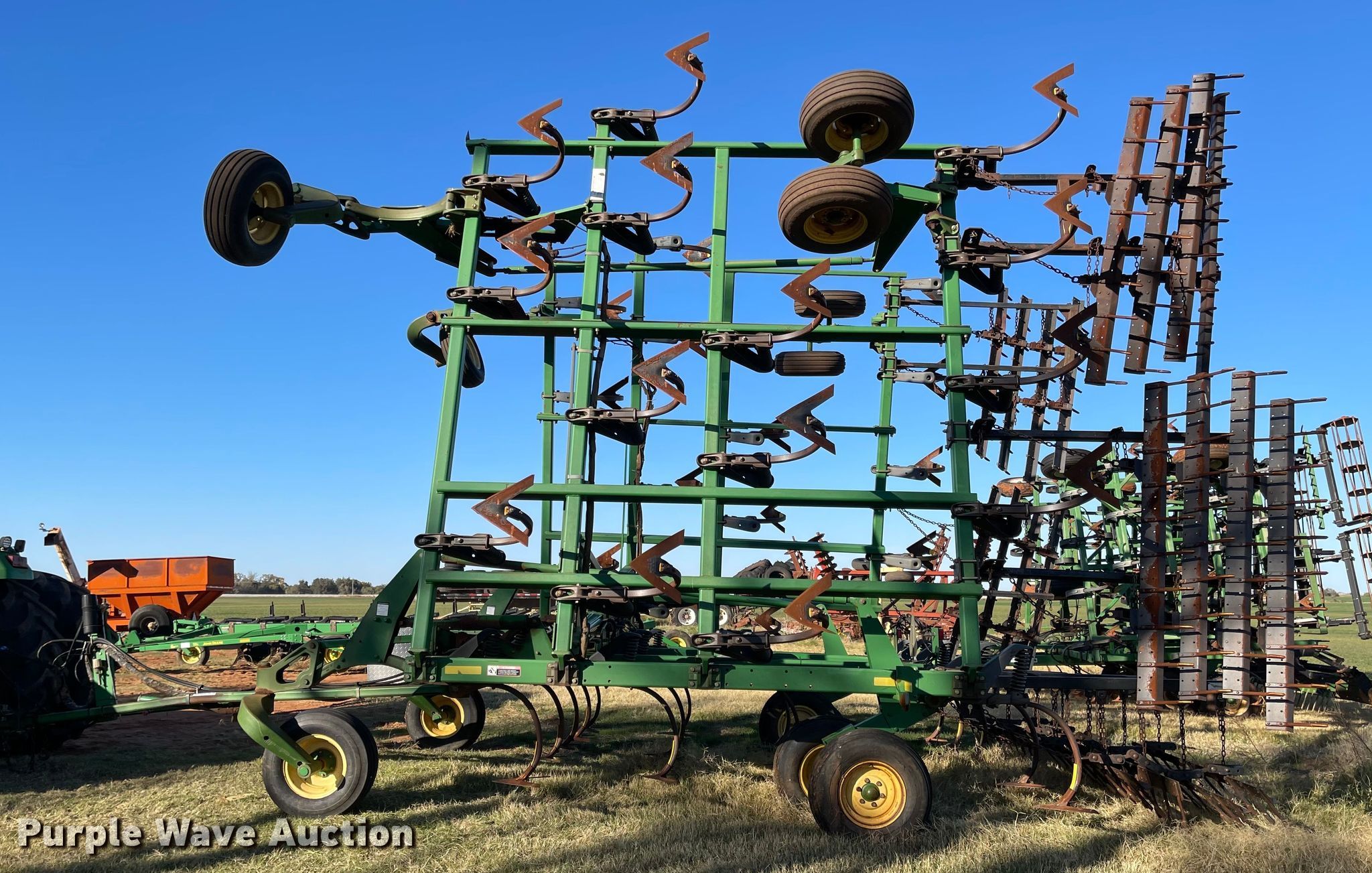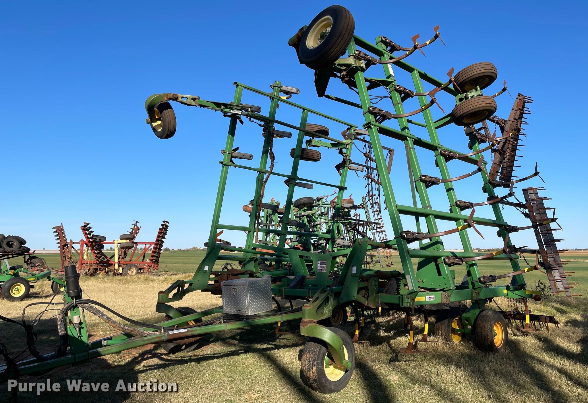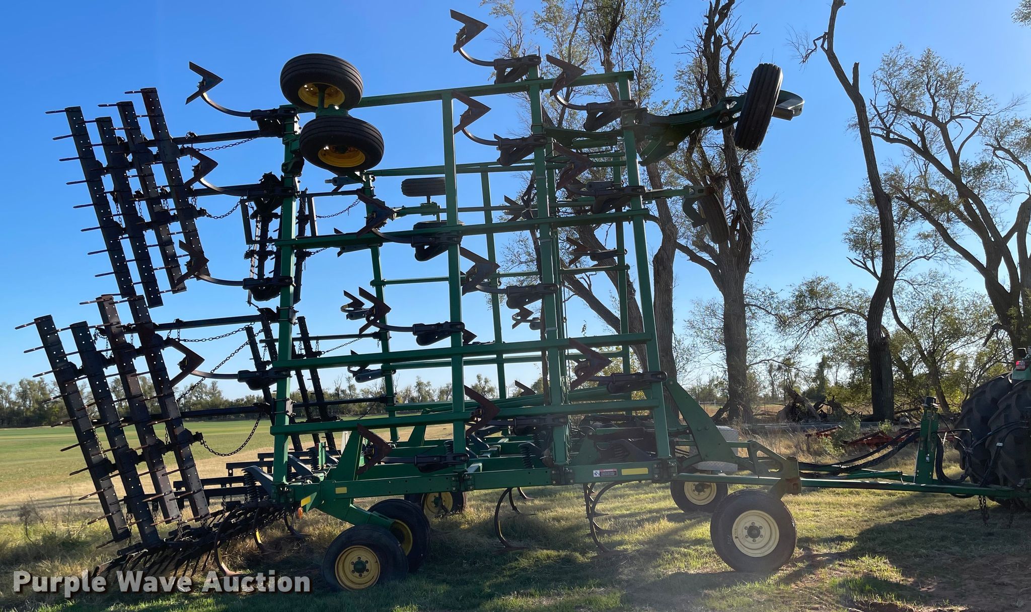 Purple Wave is selling a used Field Cultivator or Sweep Plow in Oklahoma. This item is a John Deere 2410 field cultivator with the following: Overall width: 44', Serial: N02410X00315