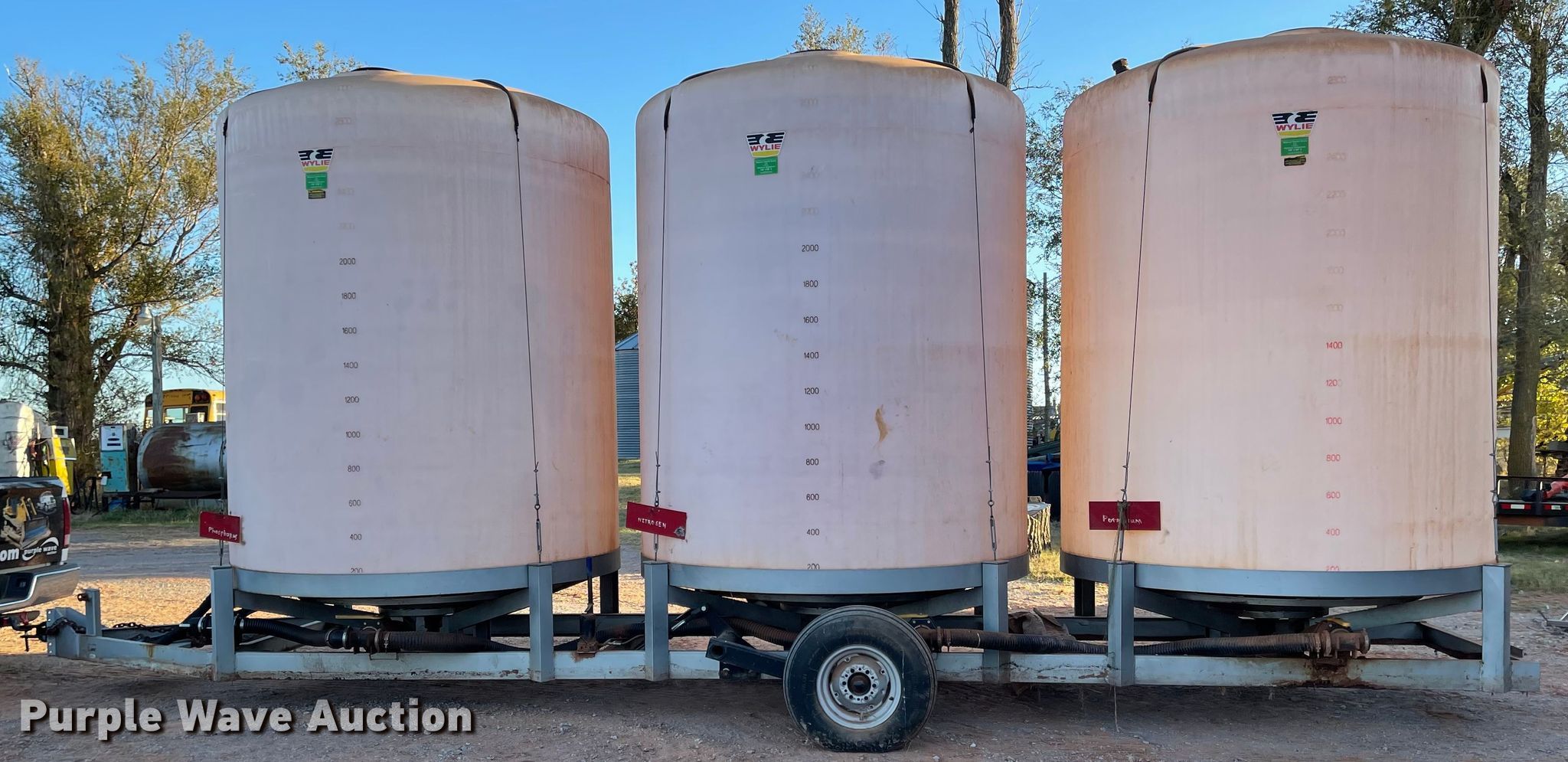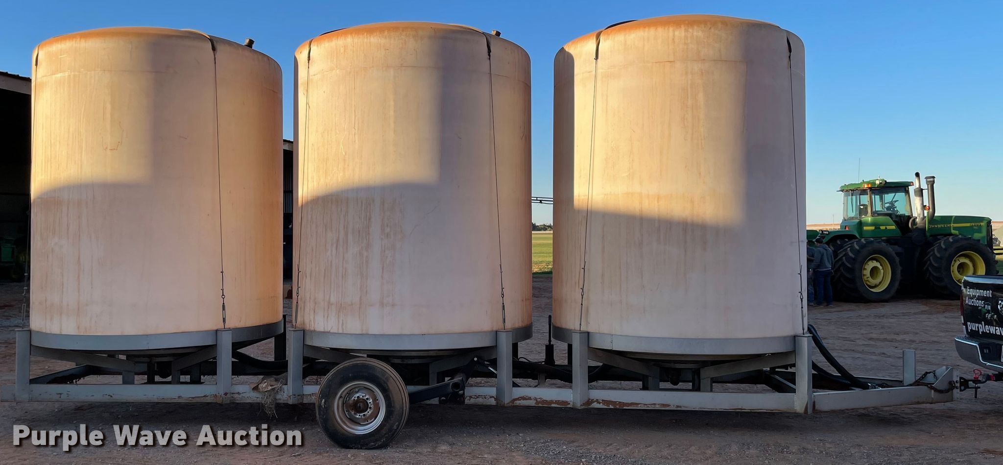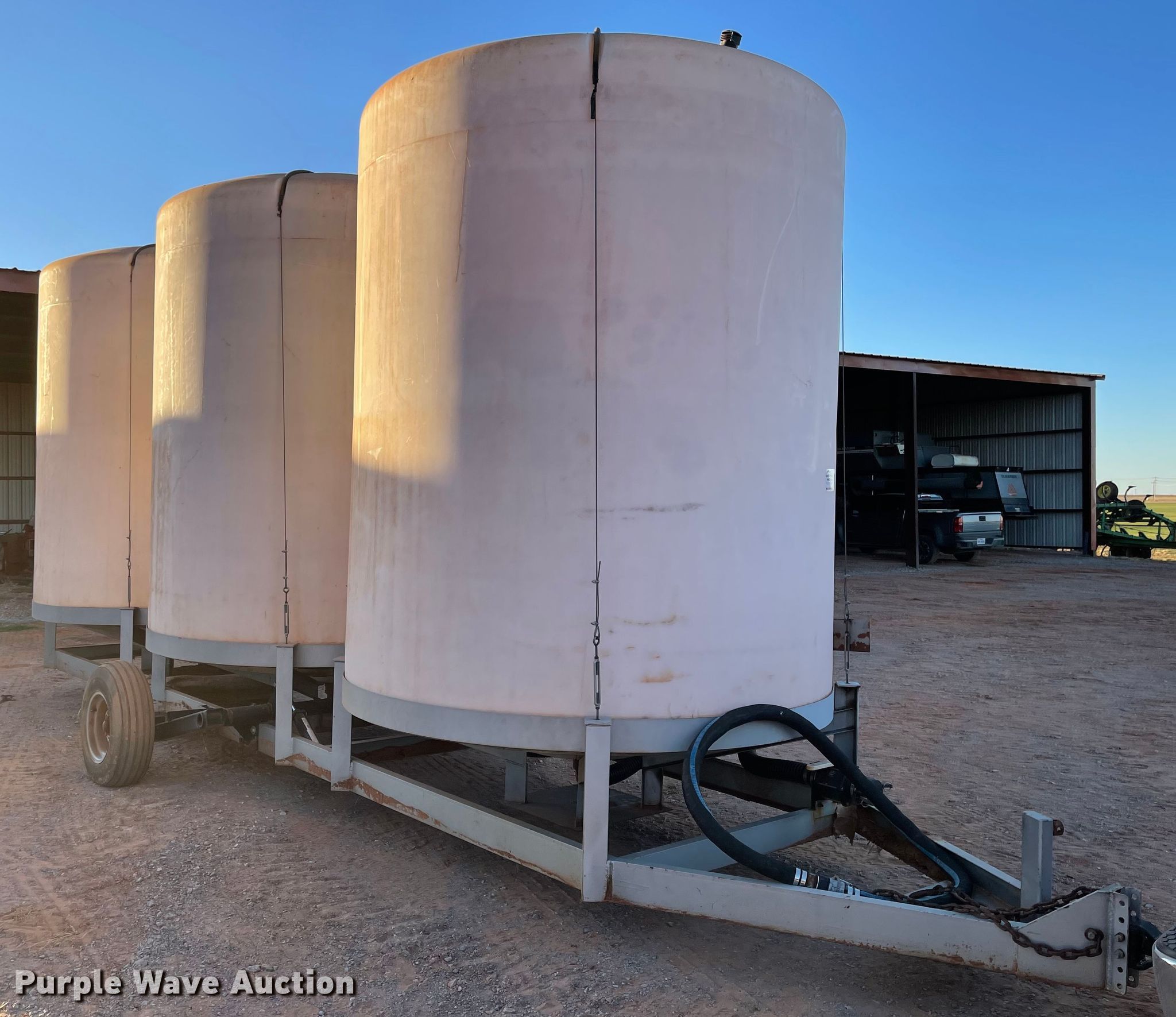 Cone bottom nurse tank trailer. Dimensions. Overall: 28' L x 112" W. Operational Tanks: 3 Tank type: Poly, Capacity: 3,000 gallons each. Chassis Landing gear: Single. Tires Size: 11L-15SL. 11487 N 2110 Rd. Foss, OK 73647