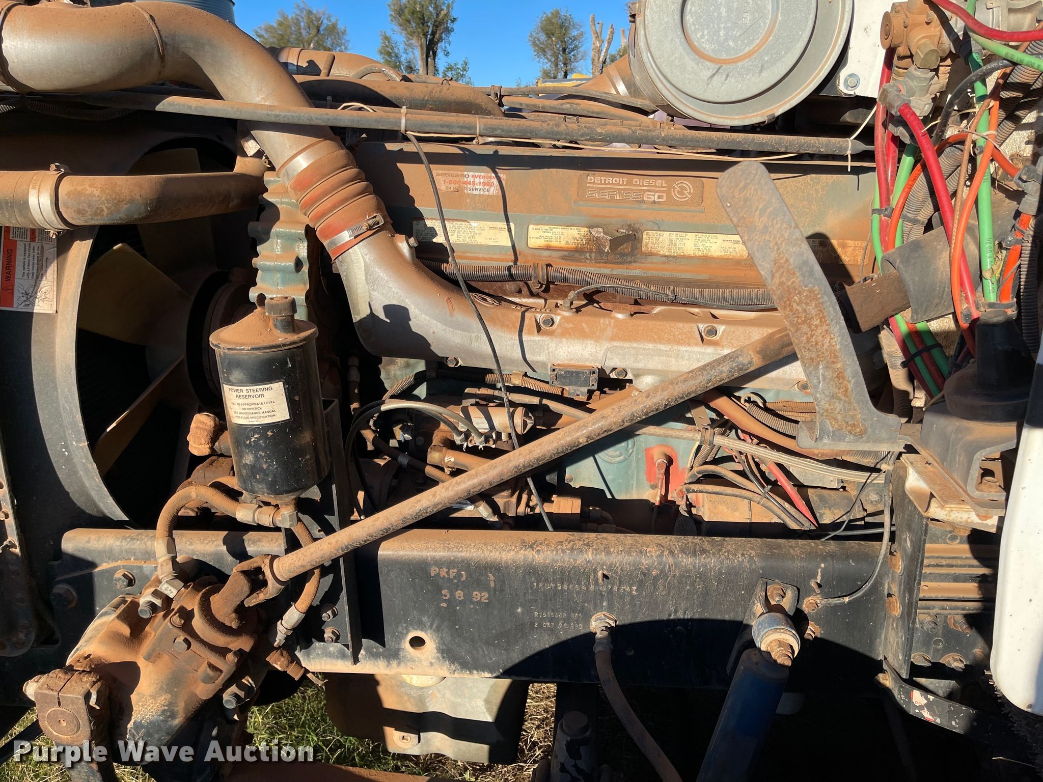 1992 Freightliner FLD120 semi truck. Miles: 617,475 on odometer, VIN: 1FUYDSED4NP478247. Engine Detroit Diesel Series 60, Cylinders: 6, Fuel type: Diesel. Transmission Eaton Fuller, Manual, Speed: 9. Chassis Axles: Tandem, Differential lock: Inter-axle, Suspension: Air Dump valves, Brakes: Air, PTO, GVWR: 52,000 lbs FAWR: 12,000 lbs, RAWR: 20,000 lbs. Interior AC, Heat, Cruise control, Sleeper Sleeper length: 60". Operational Fifth wheel type: Sliding, Fuel tank: Dual. Tires Size: 11R24.5. Notes Missing oil cooler, Non-operational unit. Oklahoma title. Title distribution may be delayed up to 14 days from verification of funds. 11487 N 2110 Rd. Foss, OK 73647