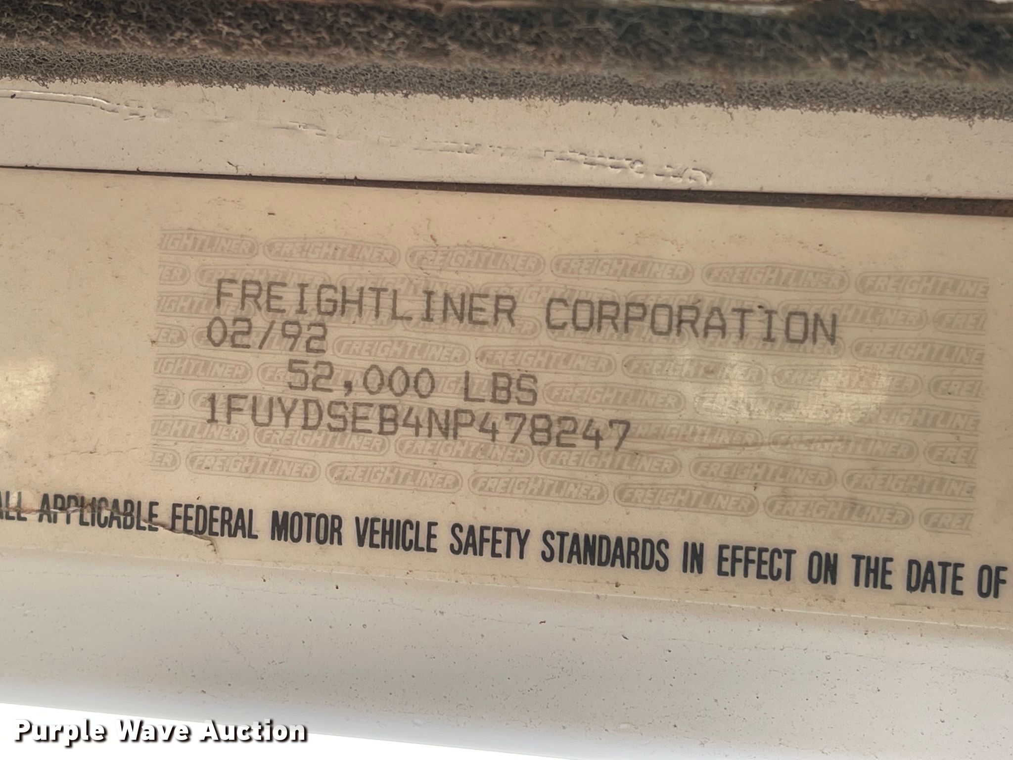 Purple Wave is selling a used Truck Tractor in Oklahoma. This item is a 1992 Freightliner FLD120 semi truck with the following: Miles: 617,475 on odometer, VIN: 1FUYDSED4NP478247