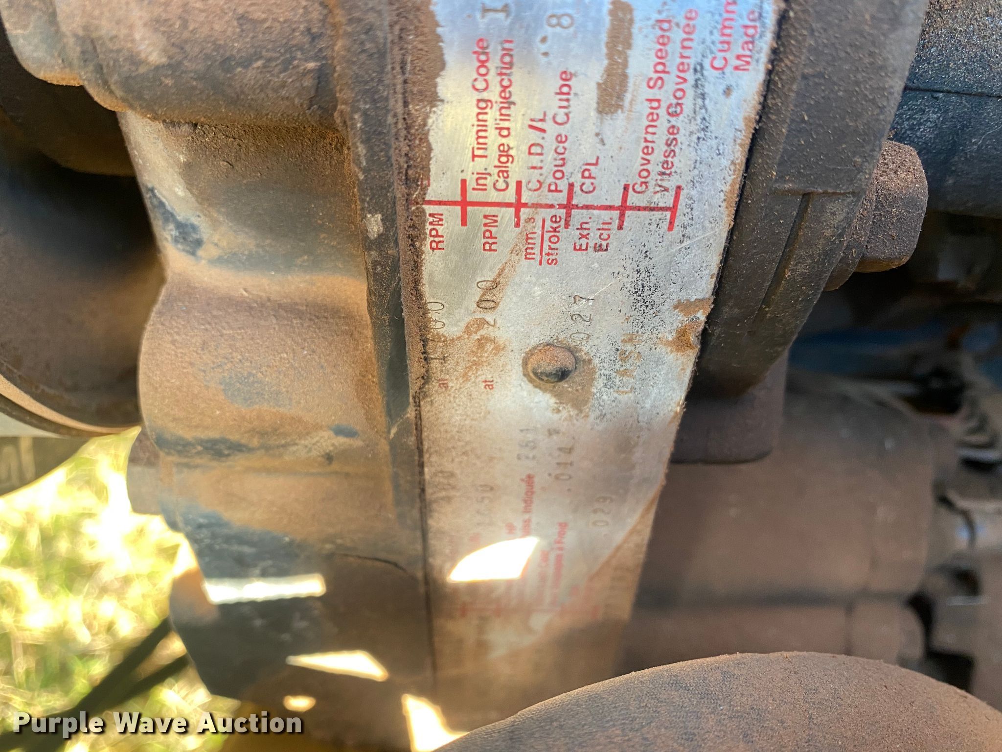 1995 International 9400 semi truck. Miles: 29,384 on odometer, Hours: 23,265 on meter, VIN: 2HSFHAER4SC027446. Engine Cummins, Cylinders: 6, Fuel type: Diesel, Engine brake. Transmission Manual, Speed: 13. Chassis Axles: Tandem, Differential lock: Inter-axle, Suspension: Air, Brakes: Air, GVWR: 52,000 lbs FAWR: 12,000 lbs, IAWR: 20,000 lbs, RAWR: 20,000 lbs. Interior AC, Heat, Heated mirrors, Cruise control, Air ride cab, Sleeper Sleeper length: 64", Beds: Single, Rear climate control. Operational Fifth wheel type: Air operated, Sliding, Fuel tank: Dual. Tires Size: 11R24.5. Notes Windshield chipped or cracked, Will not stay running, Unknown operating condition. Oklahoma title. Title distribution may be delayed up to 14 days from verification of funds. 11487 N 2110 Rd. Foss, OK 73647