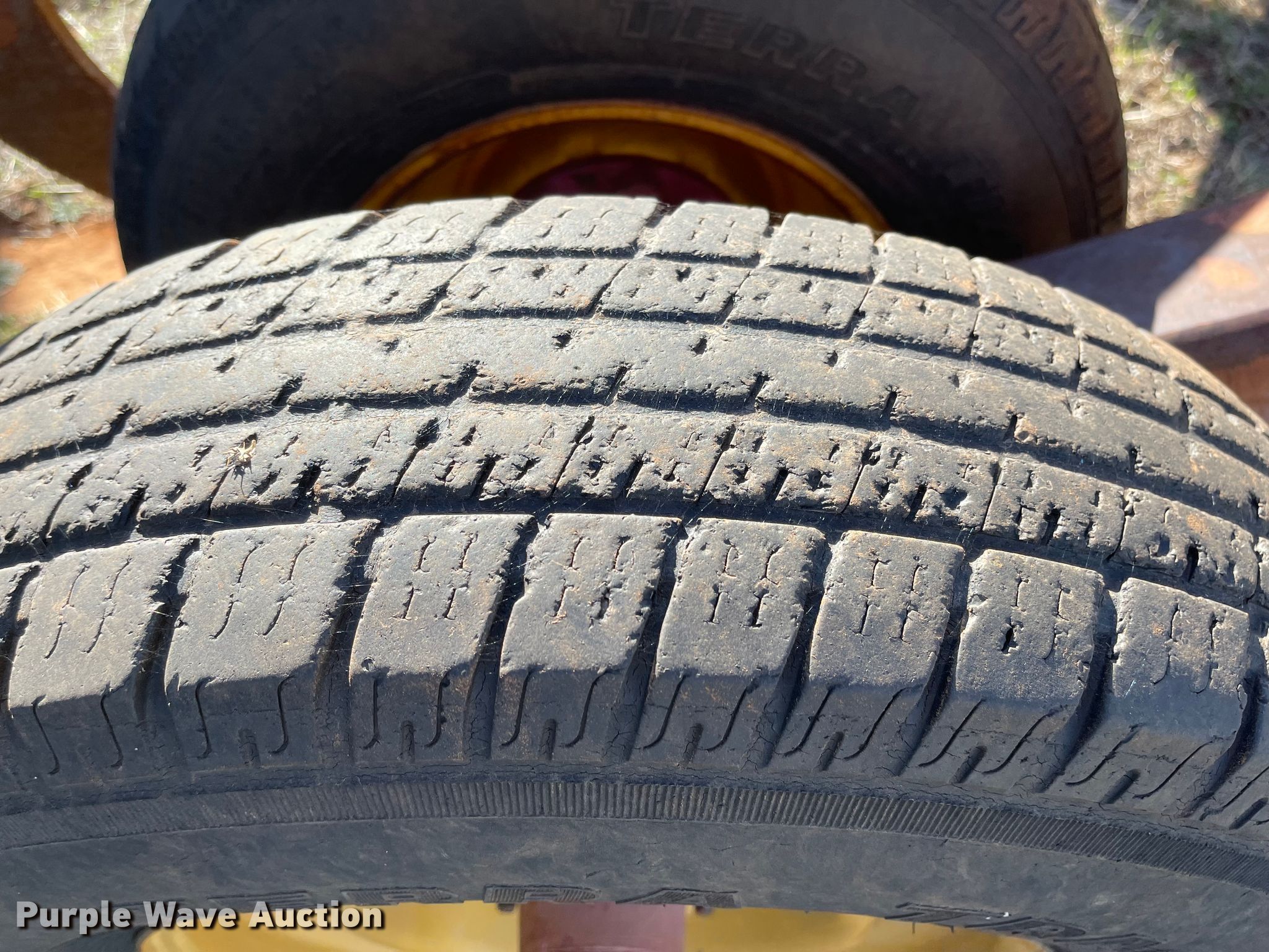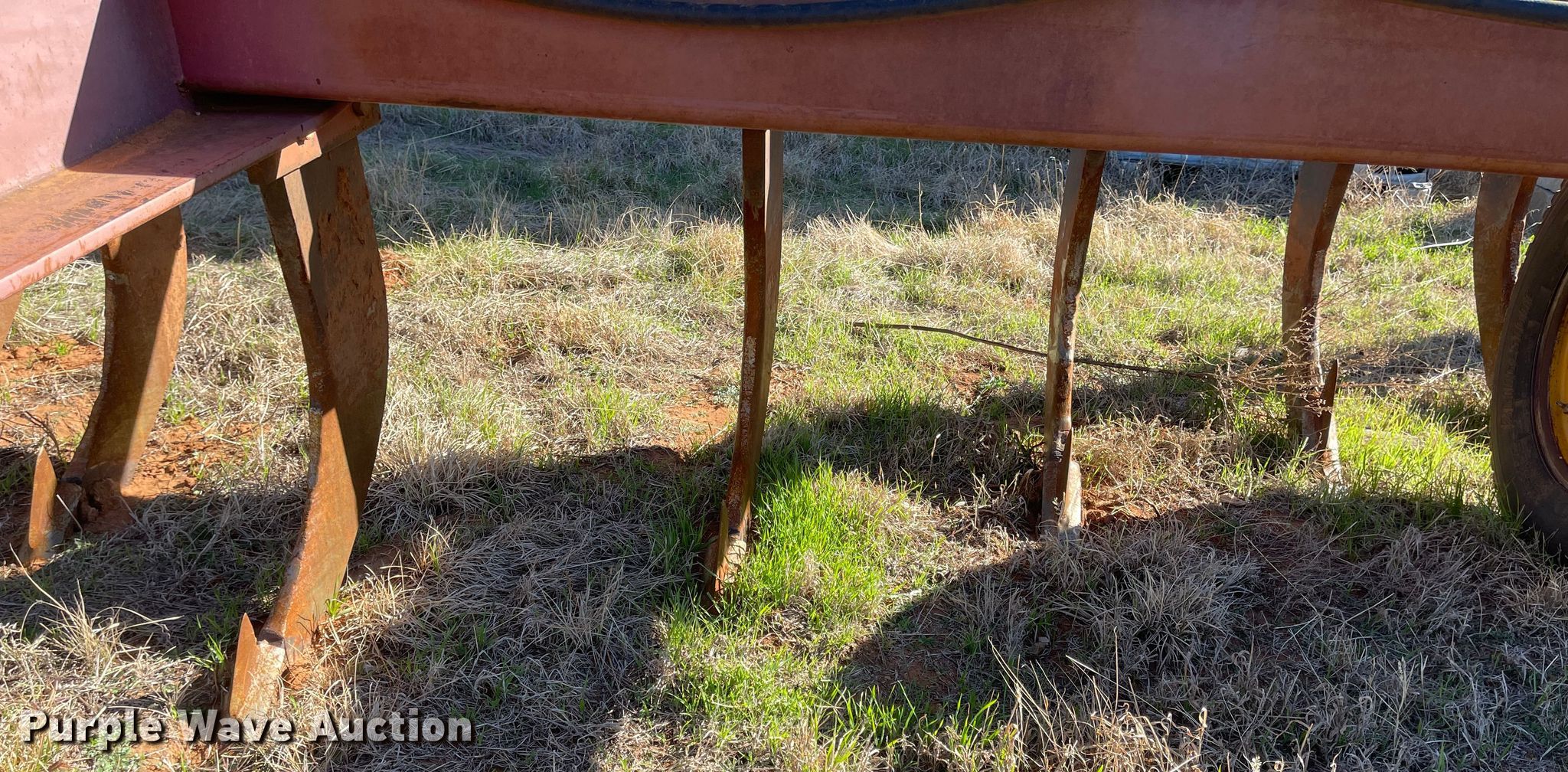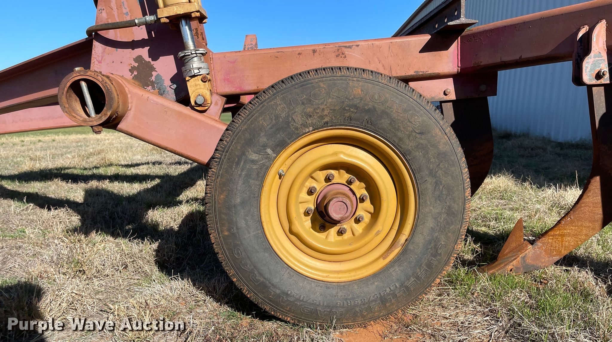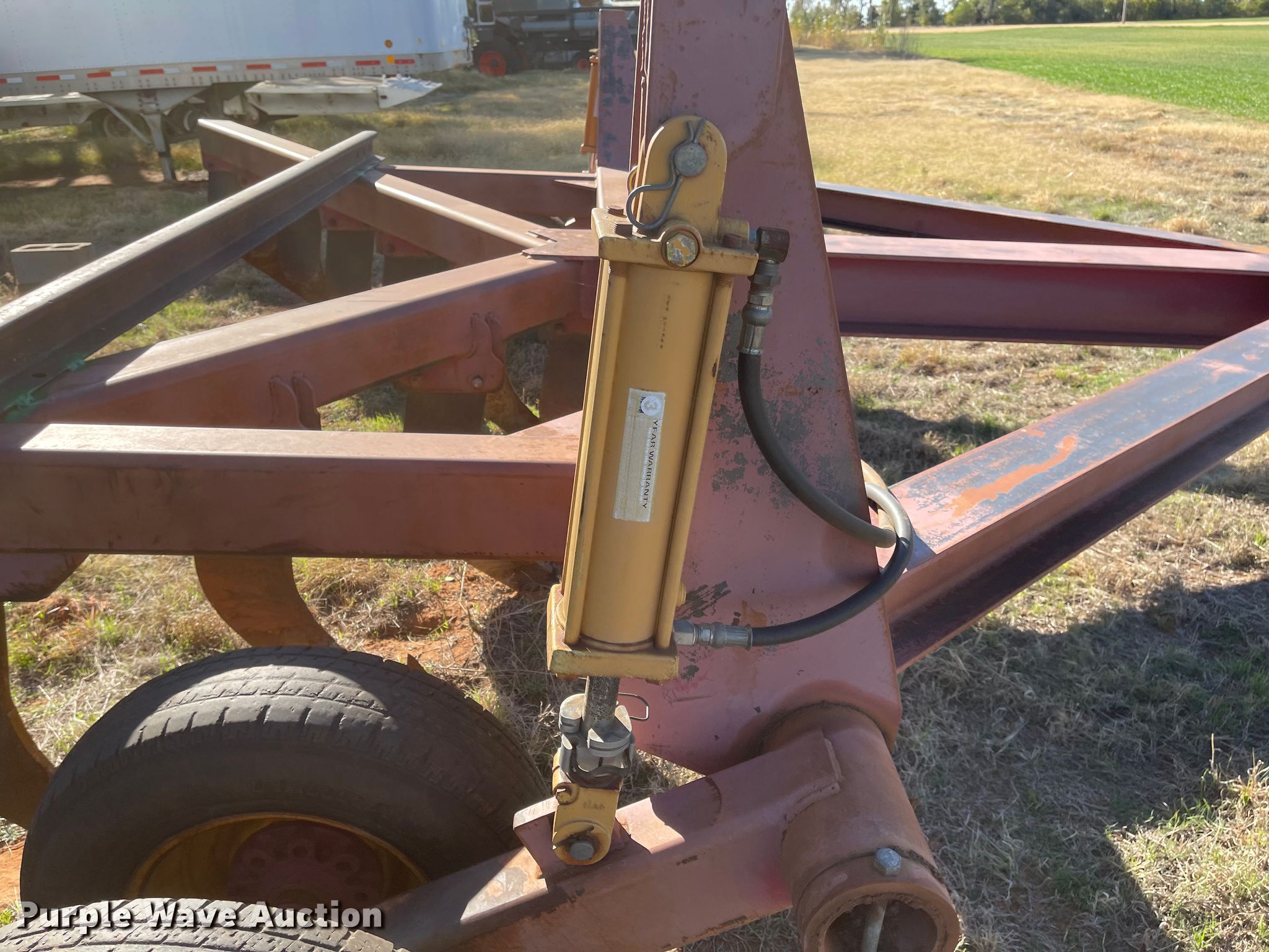 Laney V-ripper. Overall width: 20' 3". Operational Rippers: 13 Length: 30", Spacing: 20", Operation Hydraulic lift. Tires Tire size: 215/85R16. 11487 N 2110 Rd. Foss, OK 73647