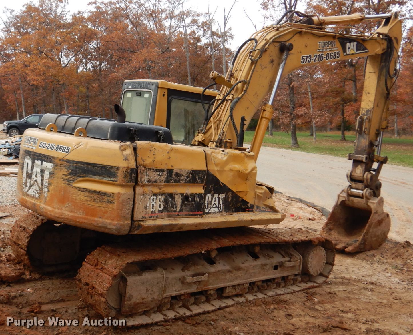 2000 Caterpillar 318BLN excavator. Hours: 15,098 on meter, Miles or hours may vary, unit still in use, Serial: 7KZ00421. Engine Caterpillar, Cylinders: 6, Fuel type: Diesel. Transmission Hydrostatic, Two speed travel. Operators station Enclosed cab, Heat. Operational Auxiliary hydraulics Standard, Boom Standard, Stick Stick length: 8' 10", Quick coupler: Hydraulic. Tracks Width: 23", Steel, Grouser pads: Triple. Notes Bucket will be replaced with an alternate 24"W bucket prior to auction, Tools in cab not included, Front glass missing, Non-operational engine bay door latch. Pat Turpin Excavating. Russellville, MO 65074