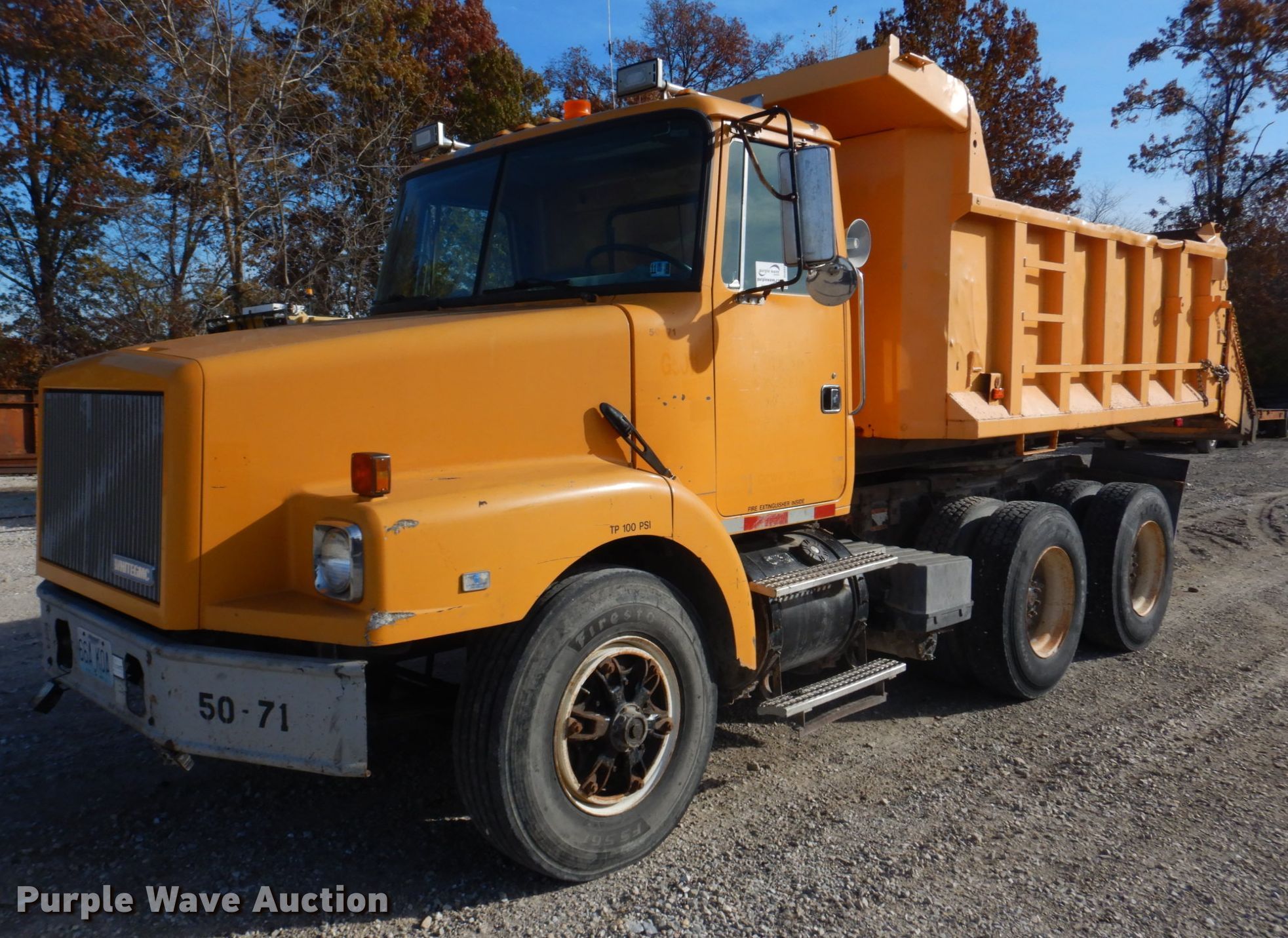 Purple Wave is selling a used Construction Dump Truck in Missouri. This item is a 1994 White GMC WG dump truck with the following: Miles: 247,732 on odometer, VIN: 4V2JCBME7RR829103, Unit #: 50-71