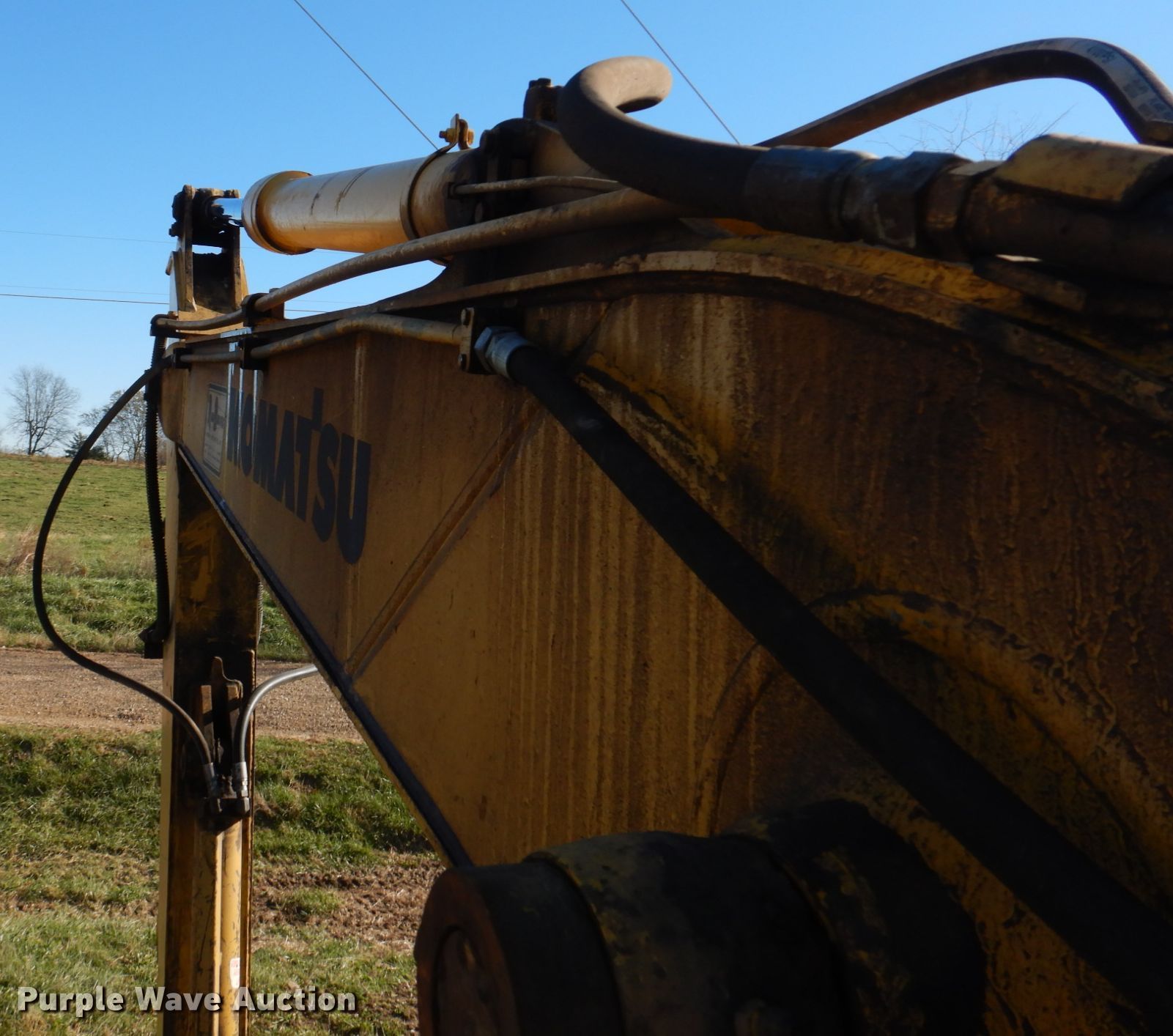 2000 Komatsu PC128US-2 excavator. Hours: 8,299 on meter, Serial: 5616. Engine Komatsu, Serial: 26257566, Cylinders: 4, Fuel type: Diesel. Transmission Hydrostatic. Operators station Enclosed cab, AC, Heat. Operational Boom Standard, Stick Stick length: 94", Thumb: Hydraulic AIM, Bucket Esco, Width: 31", Cutting edge: Weld on, Teeth: 4. Tracks Width: 20", Steel, Grouser pads: Triple. Notes Door missing, Front glass missing. Pat Turpin Excavating. Russellville, MO 65074