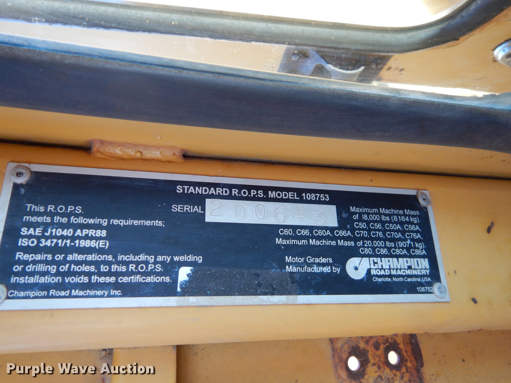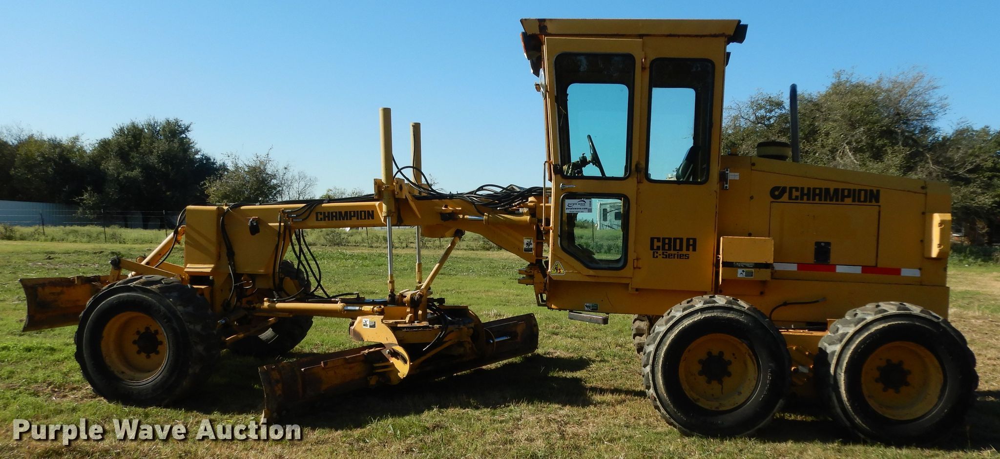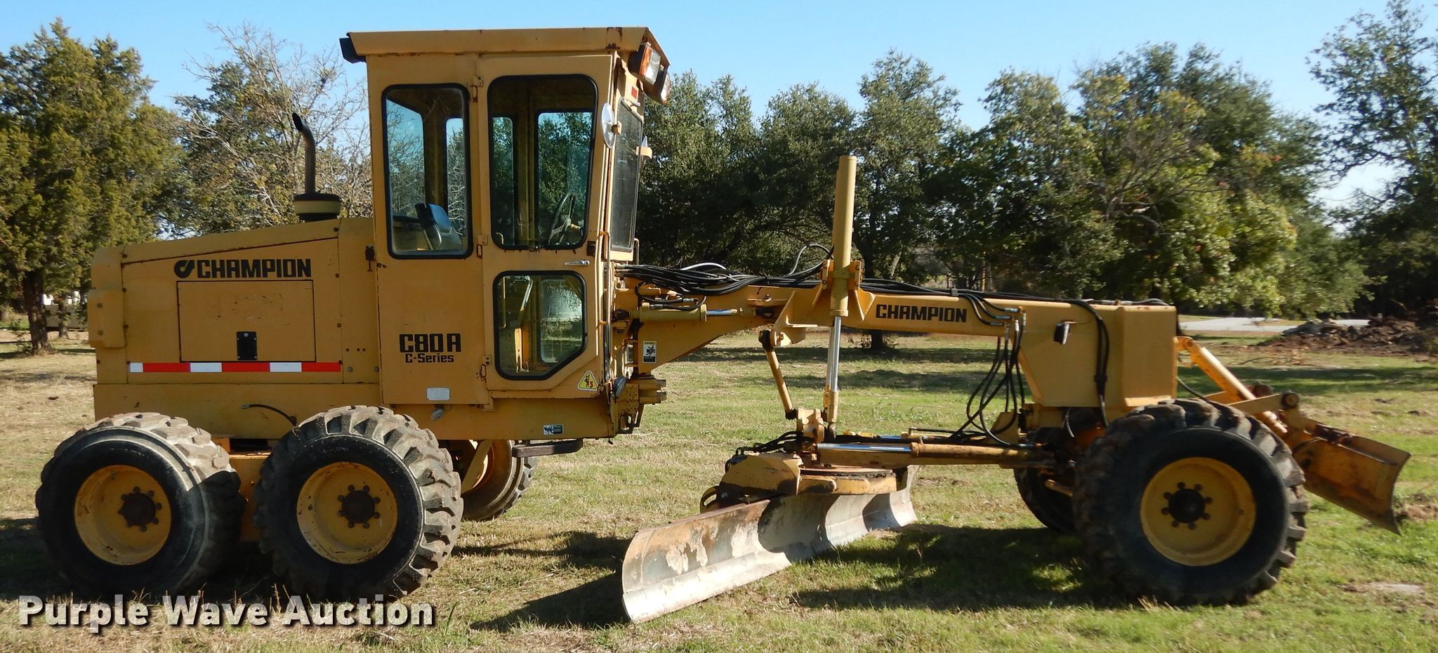 Purple Wave is selling a used Motor Grader in Texas. This item is a 1997 Champion C80A motor grader with the following: Hours: 620 on meter, Serial: 200643